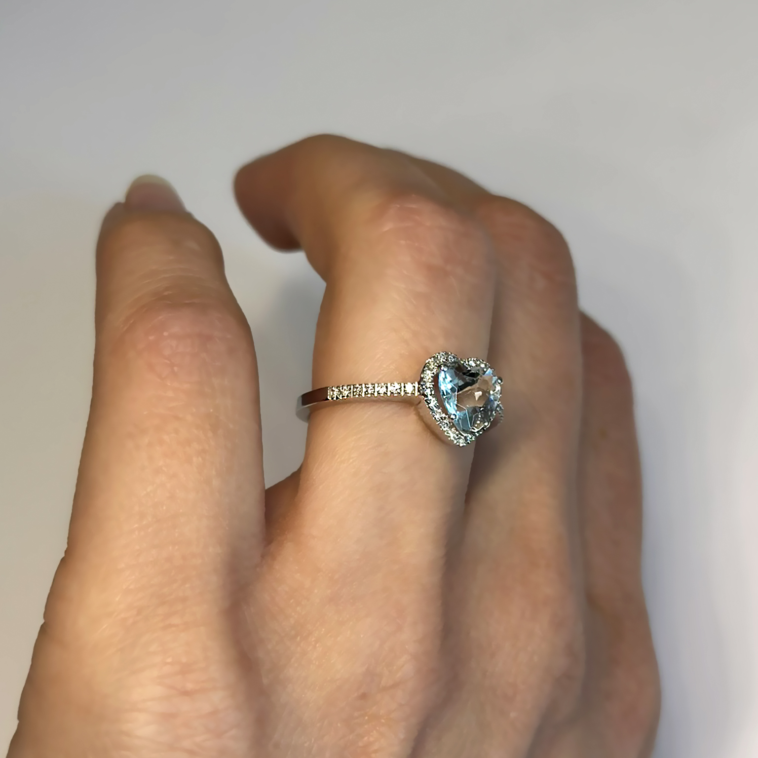 Anello Oro 18kt Cuore Acquamarina ct 0.96 e Diamanti ct 0.14