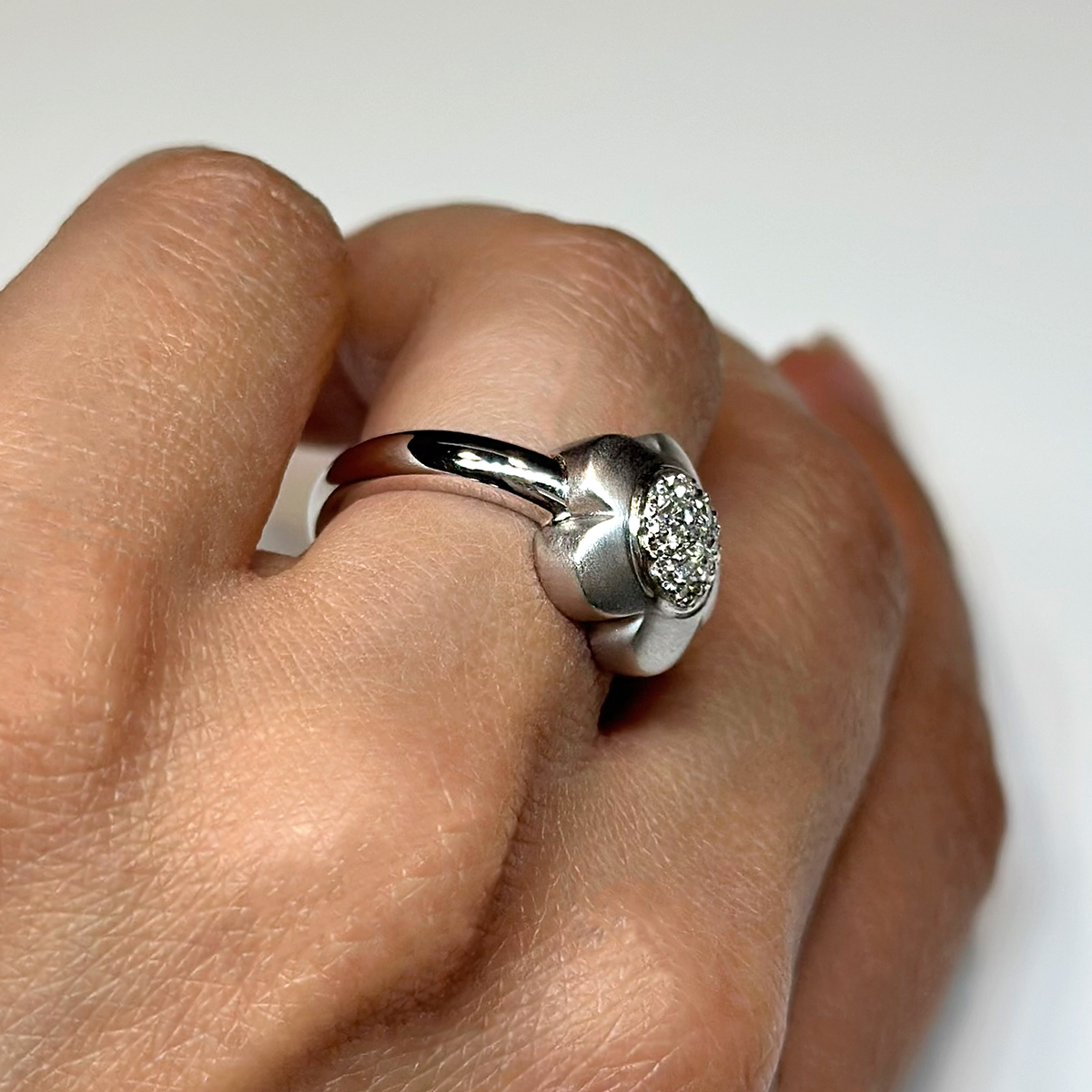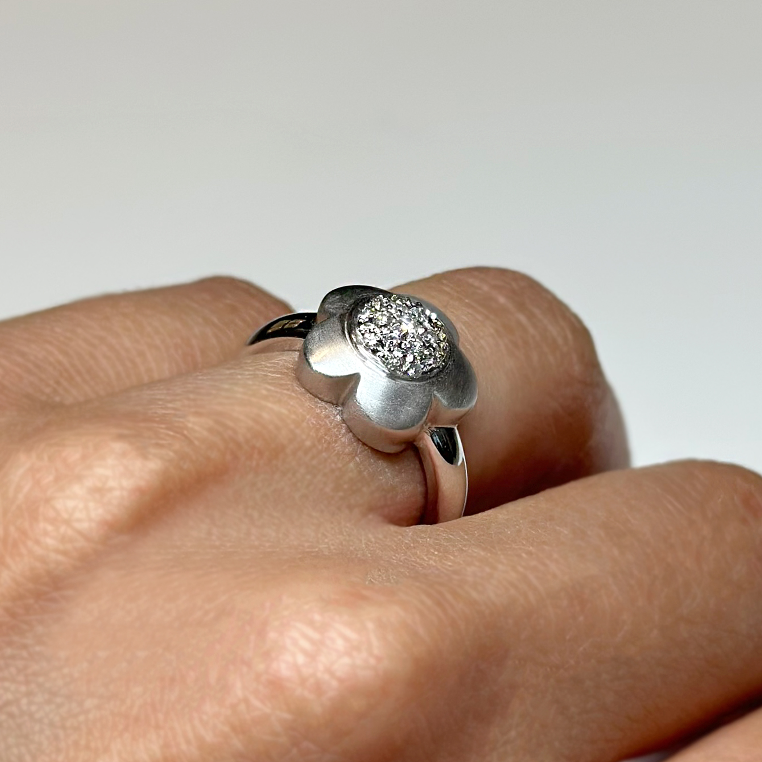 Anello Fiore Oro 18kt Diamanti ct 0.15