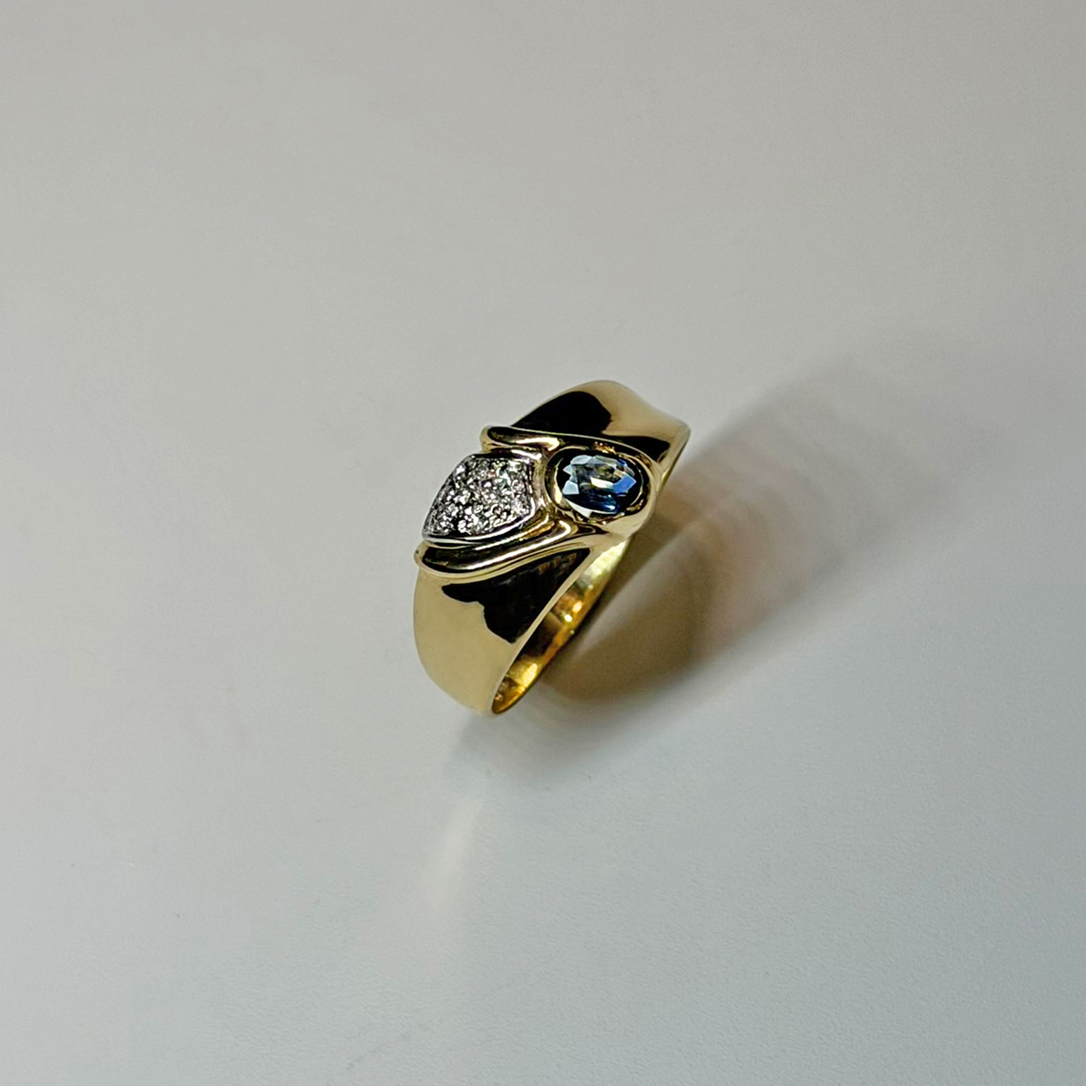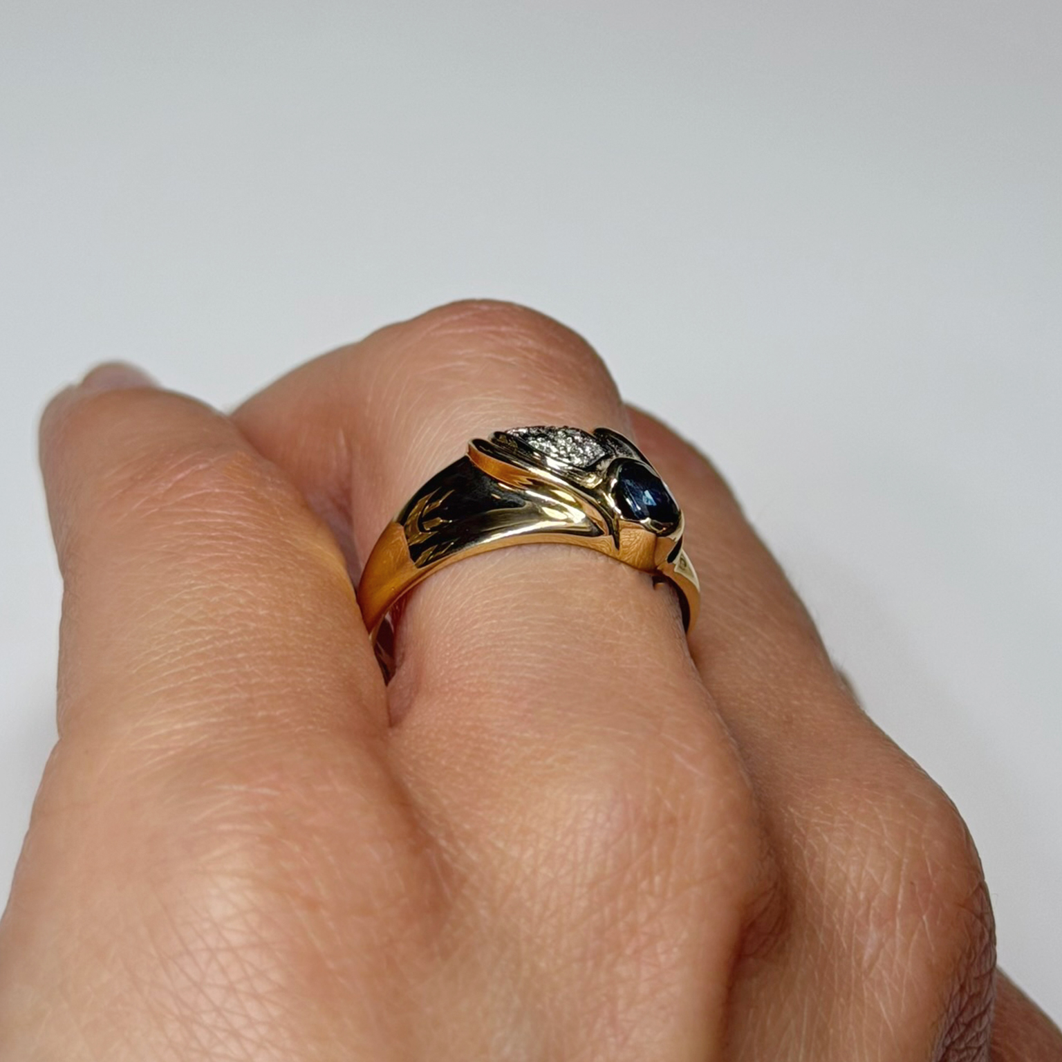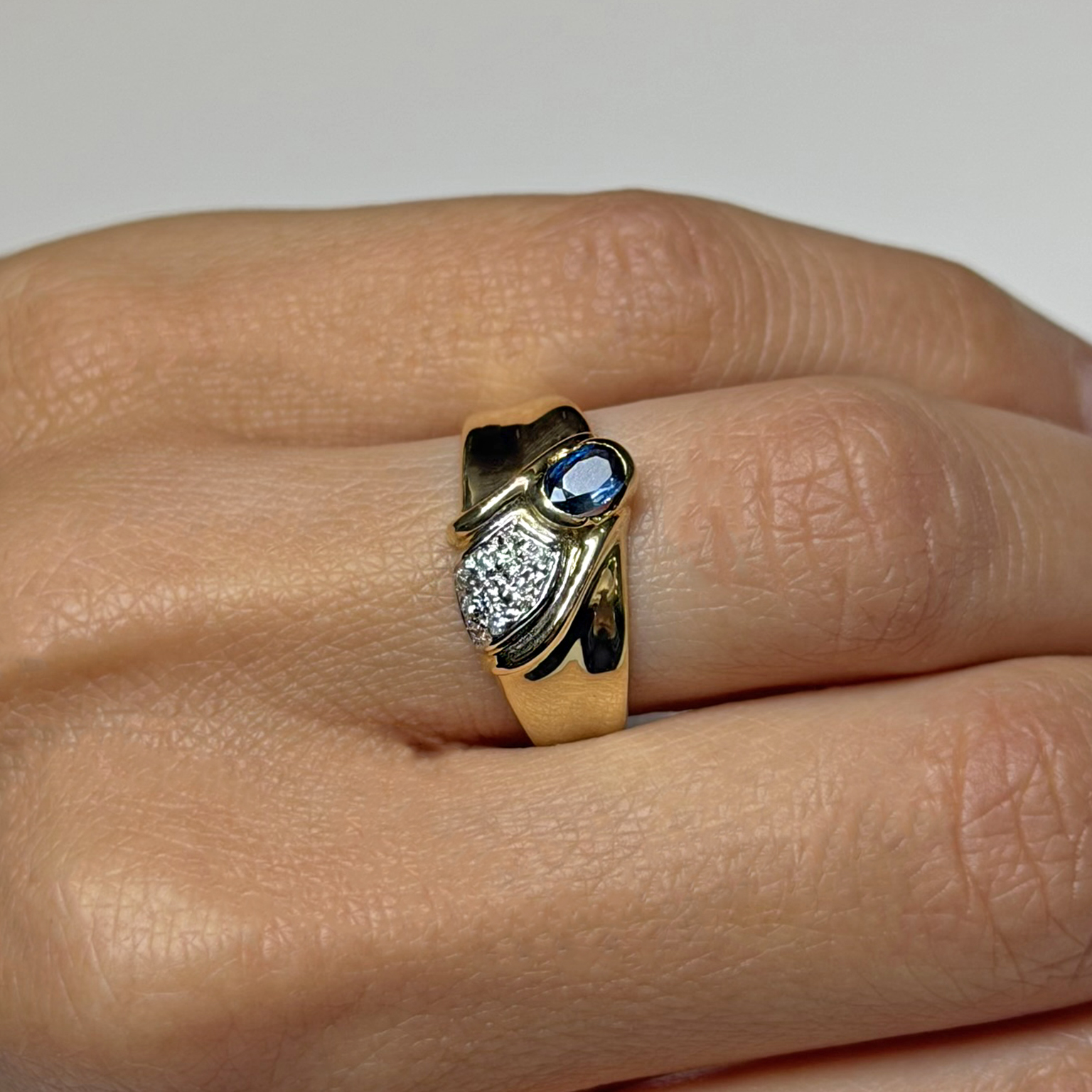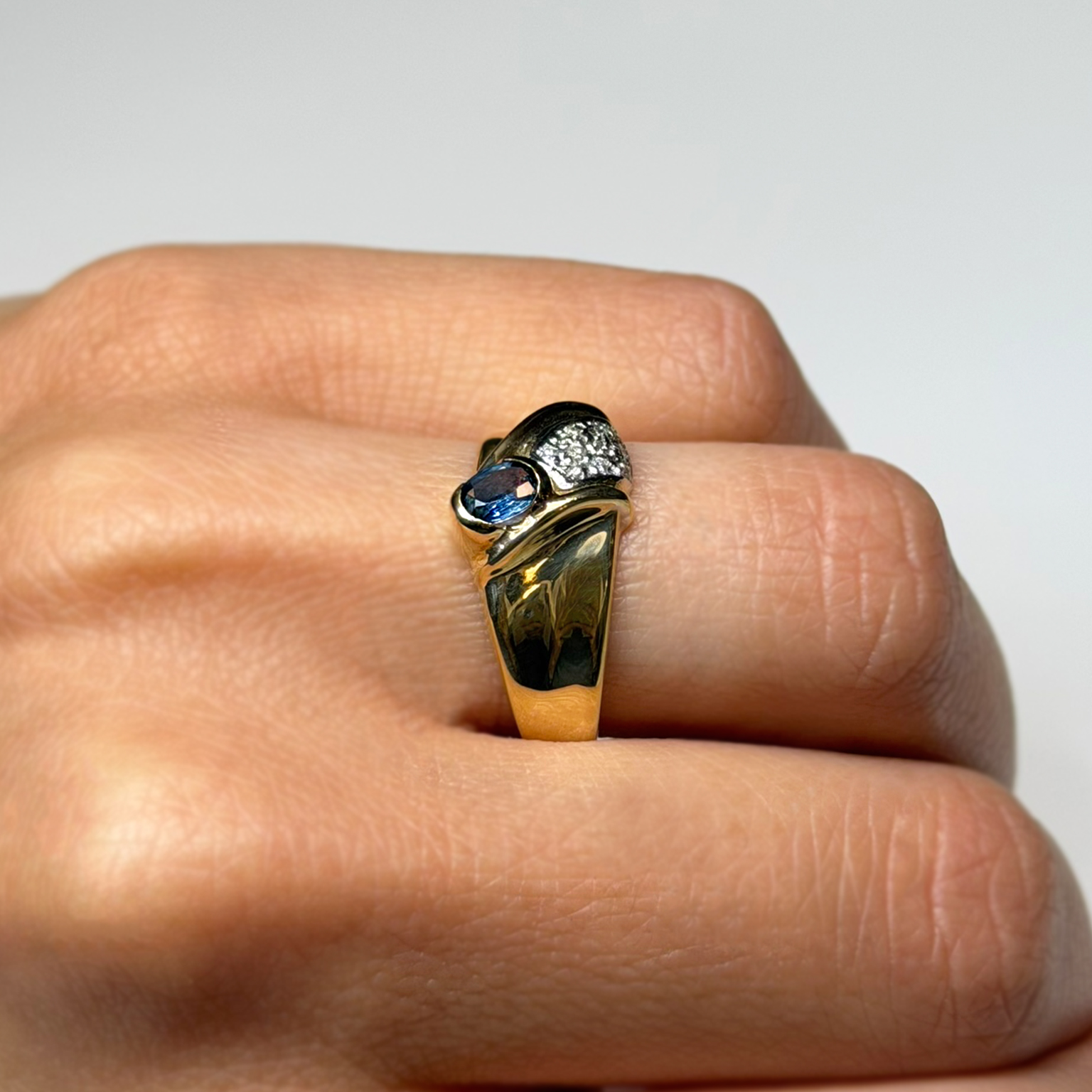 Anello in oro giallo e bianco 18kt con zaffiro ct 0.40 e diamanti ct 0.05
