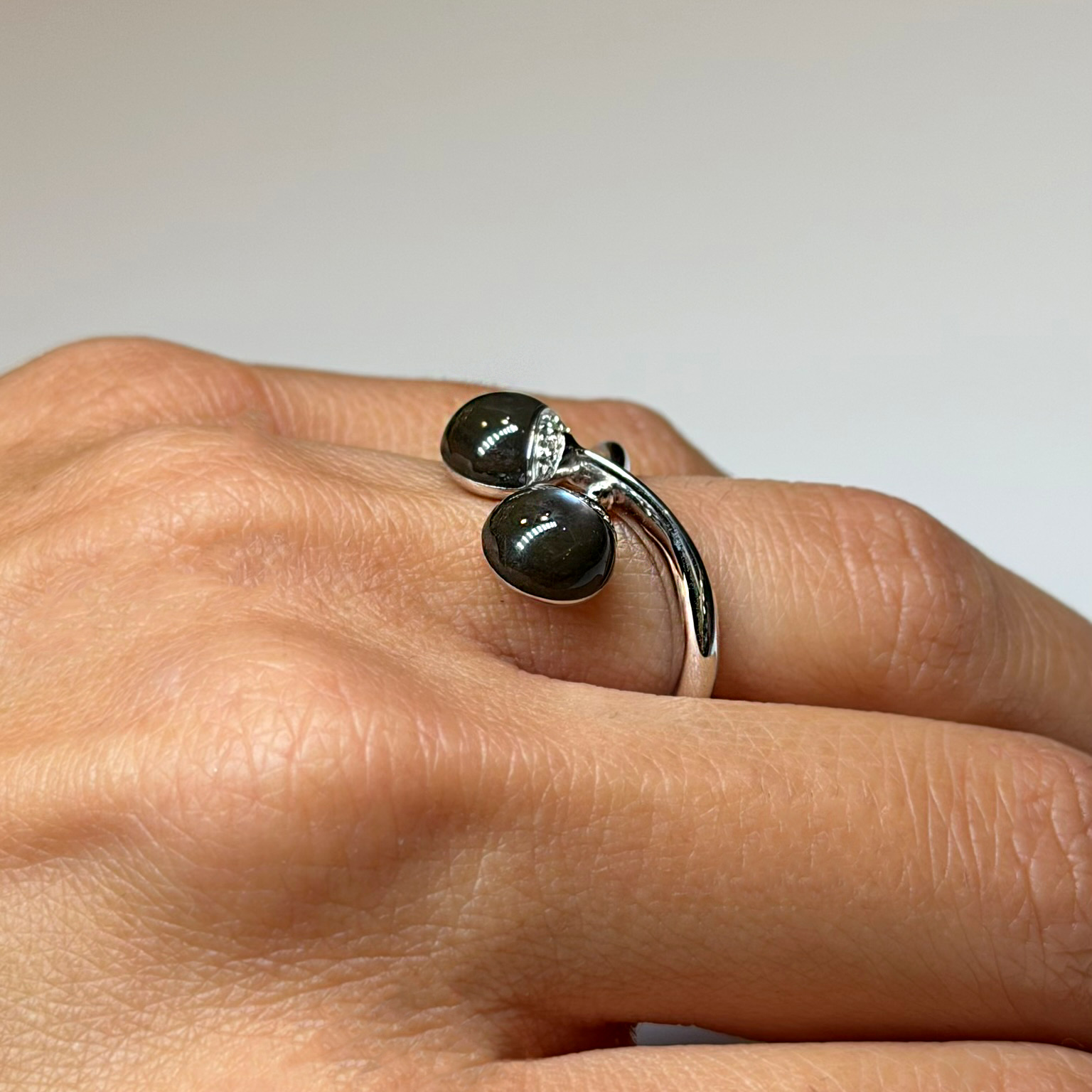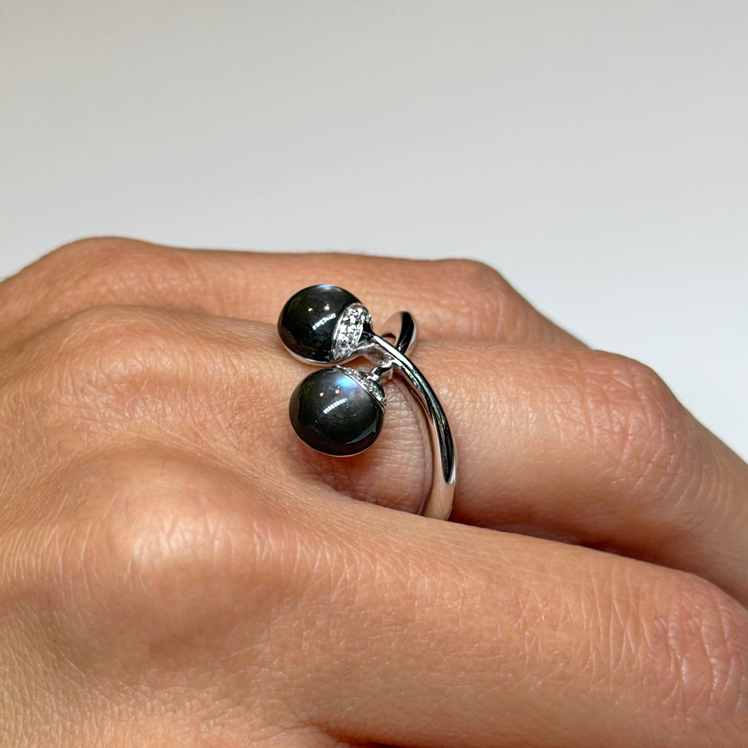 Anello in oro bianco 18kt con madreperla e diamanti taglio brillante