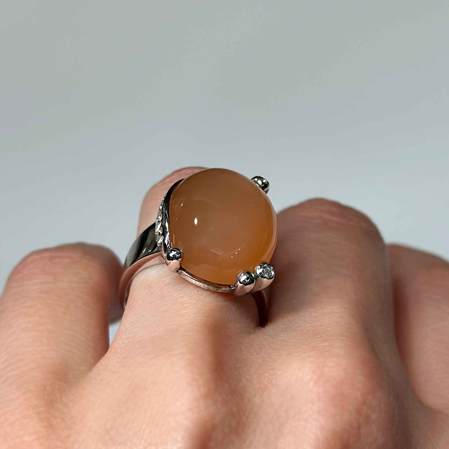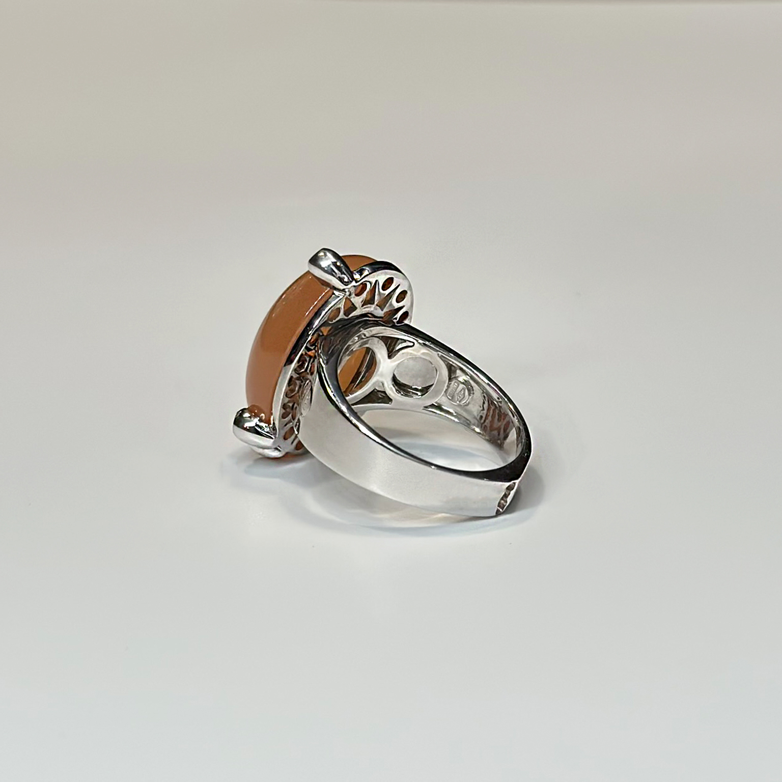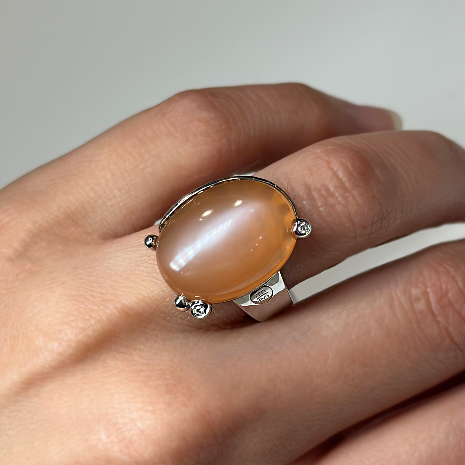 Anello Ponte Vecchio Gioielli in oro bianco 18kt con adularia e diamanti taglio brillante totale ct 0.03
