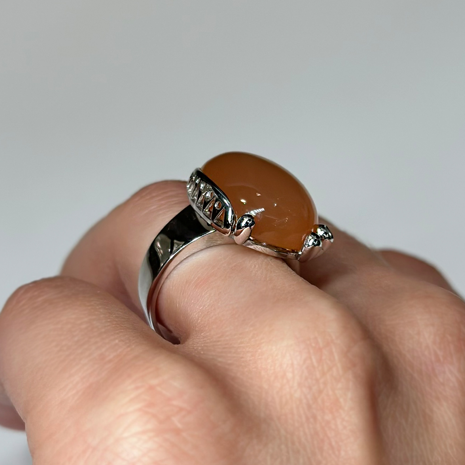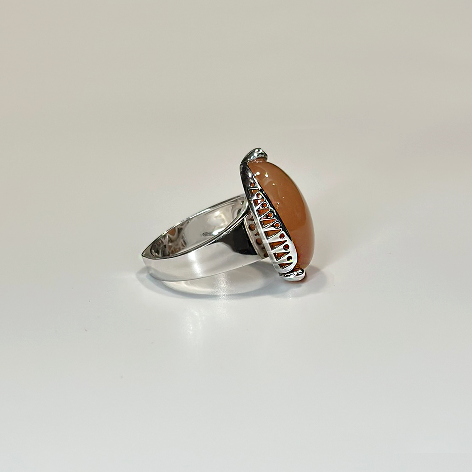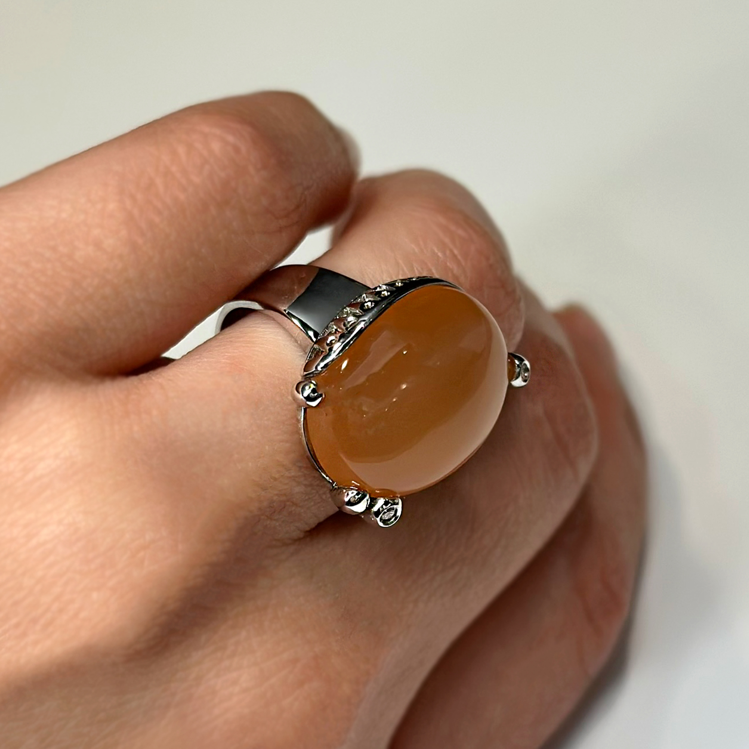 Anello Ponte Vecchio Gioielli in oro bianco 18kt con adularia e diamanti taglio brillante totale ct 0.03