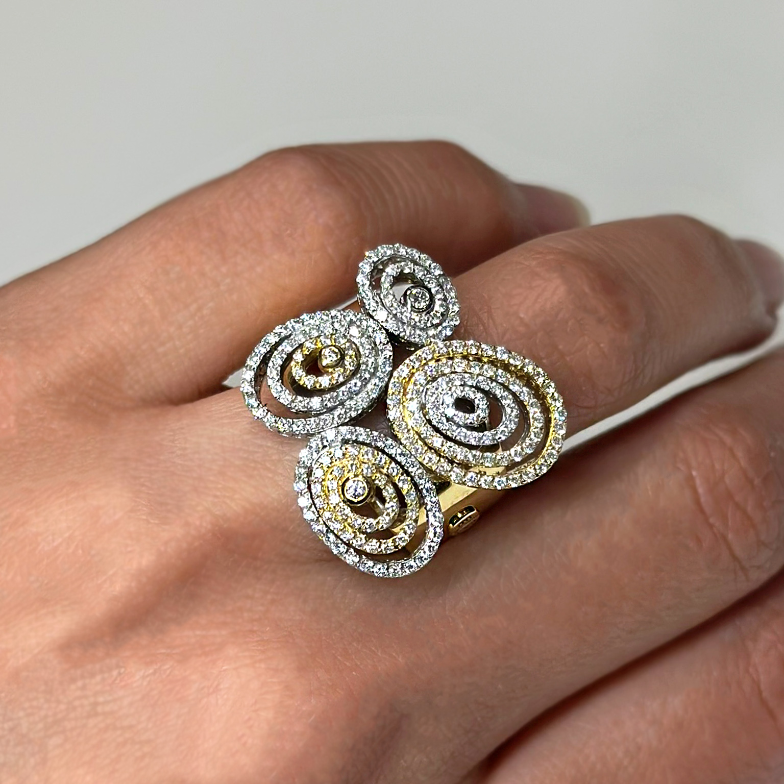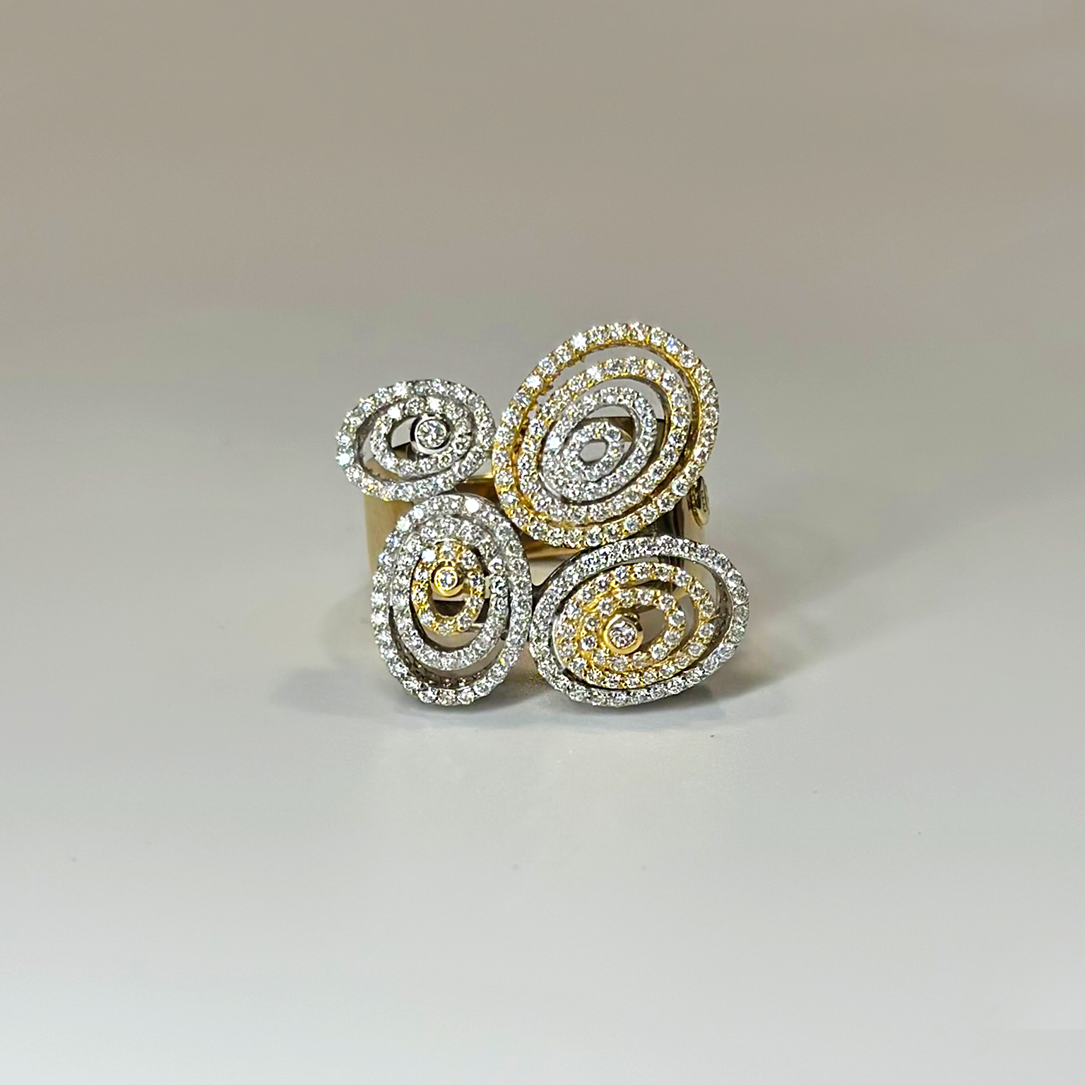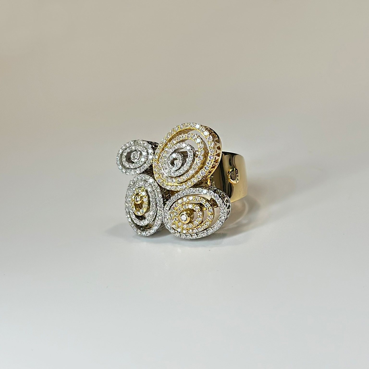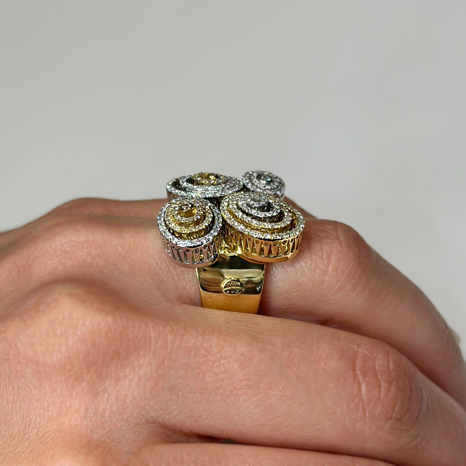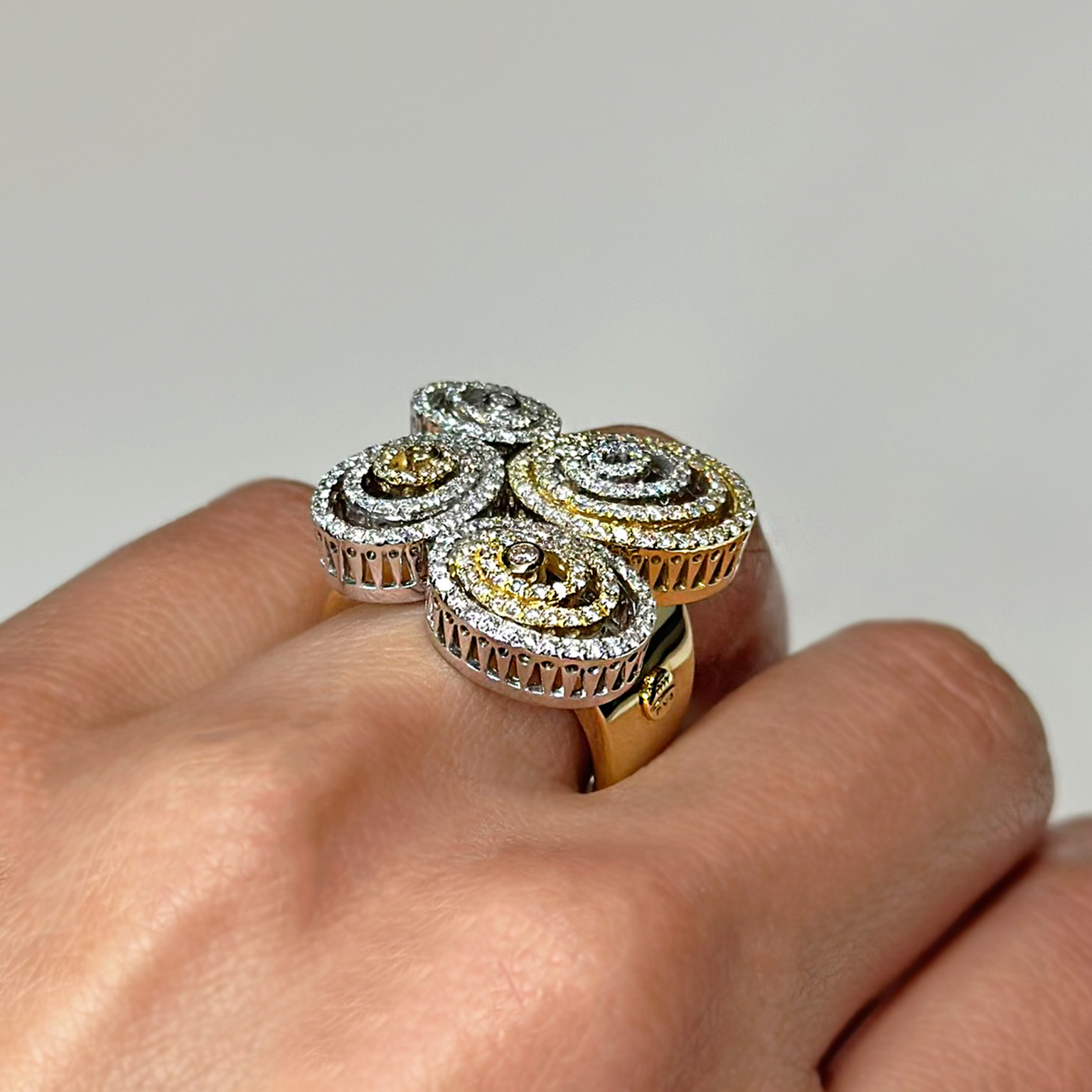 Anello in oro giallo e bianco 18kt con diamanti taglio brillante totale ct 1.14