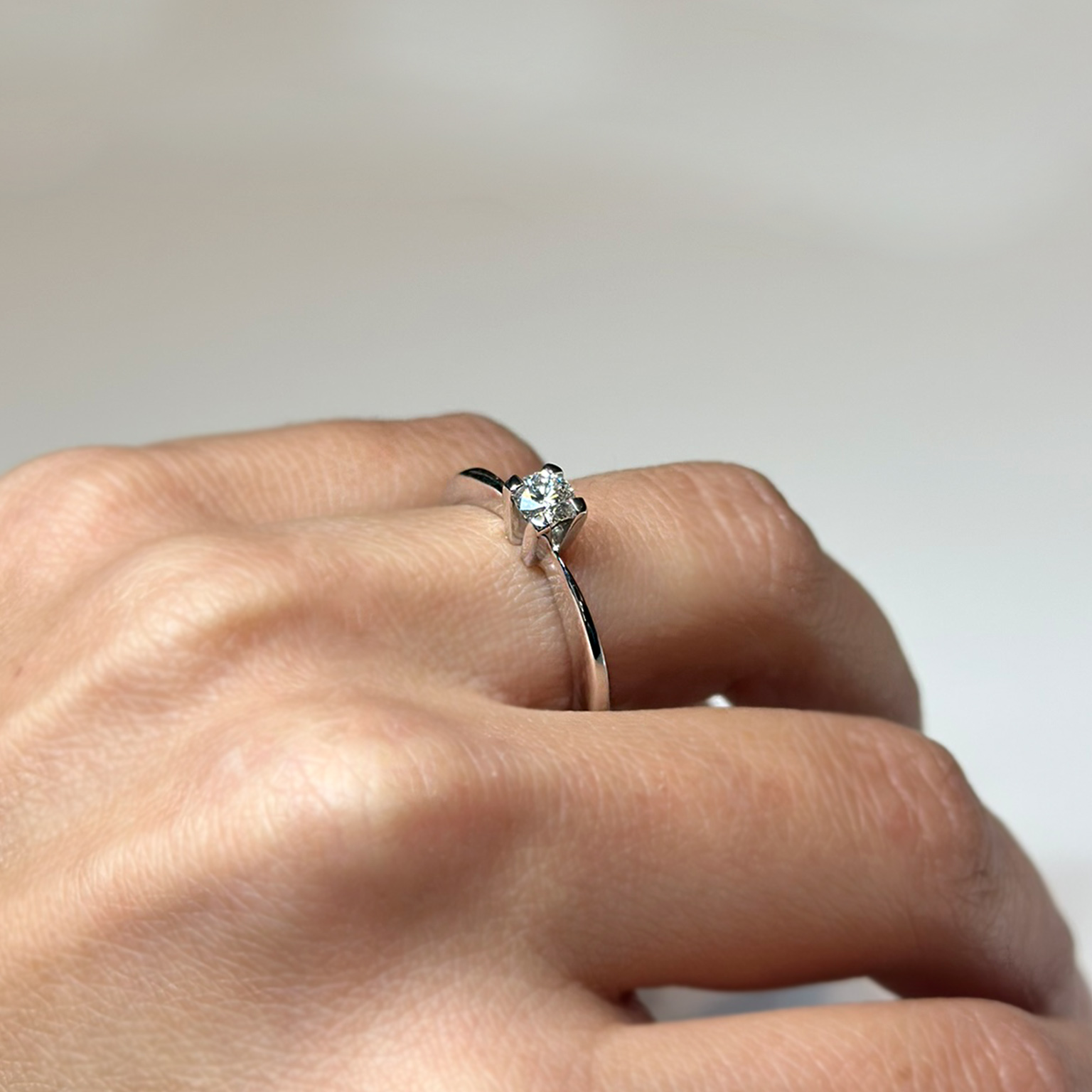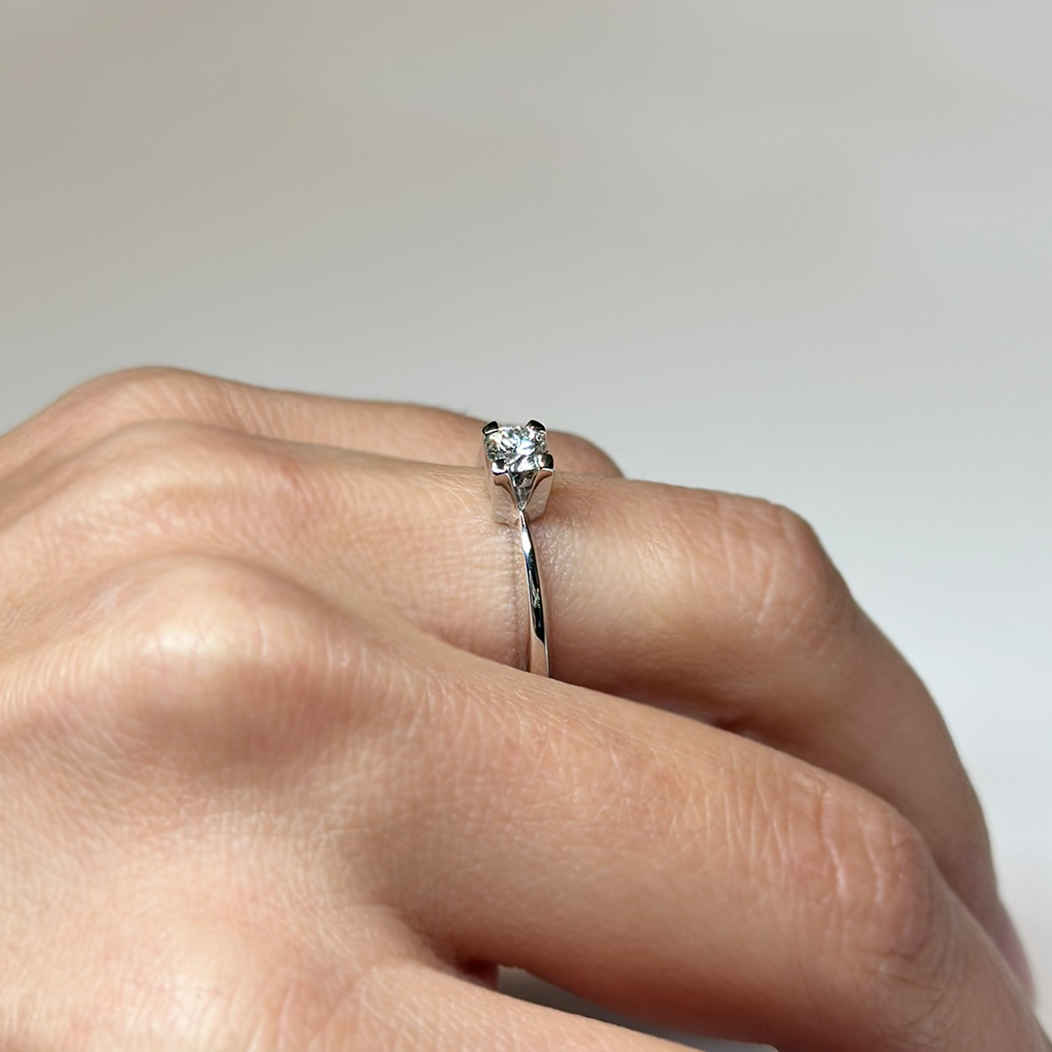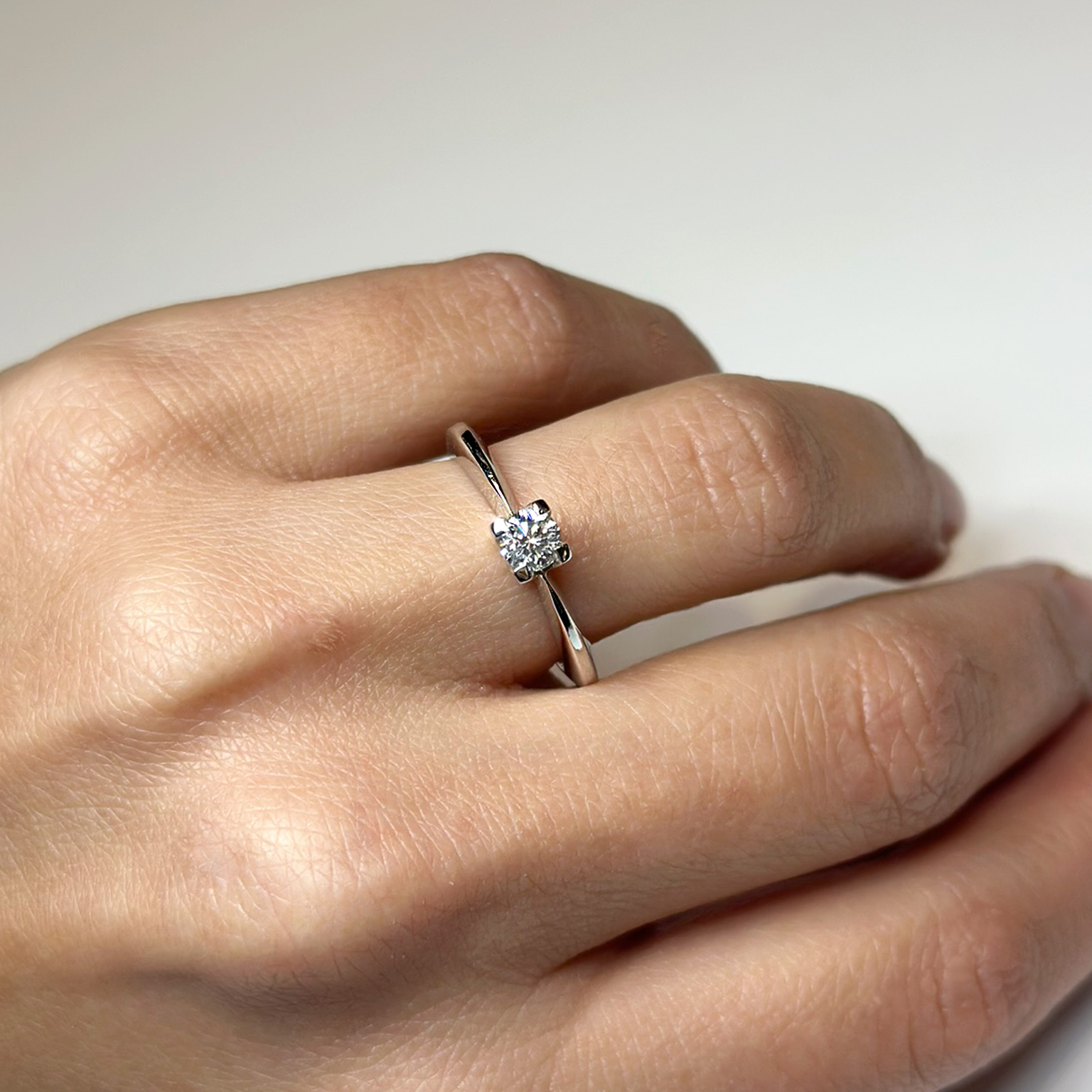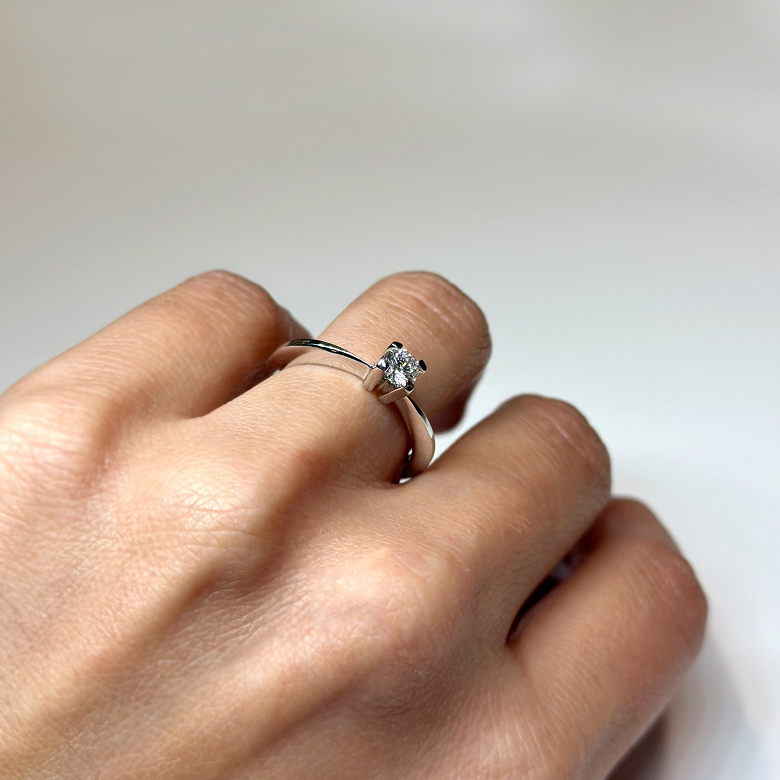 Anello in oro bianco 18kt con diamante taglio brillante ct 0.31 G VS