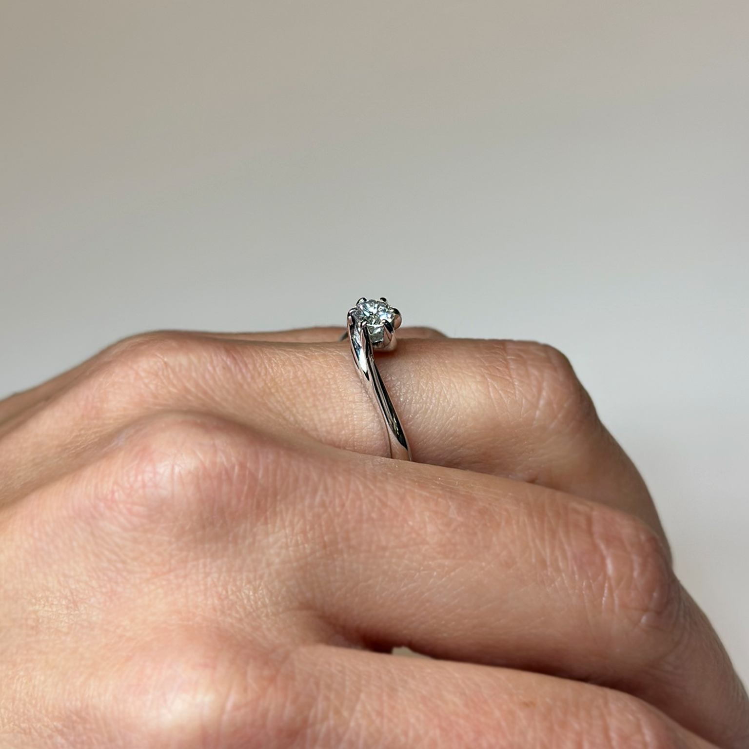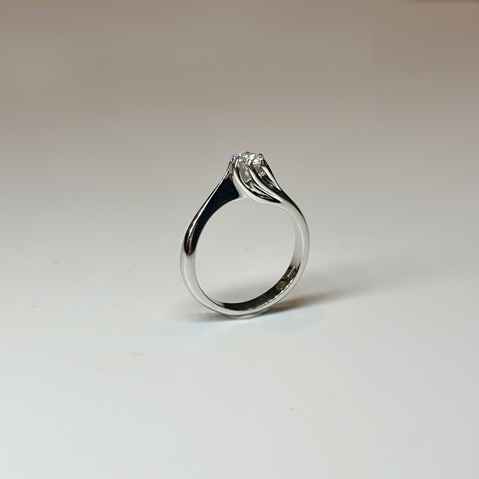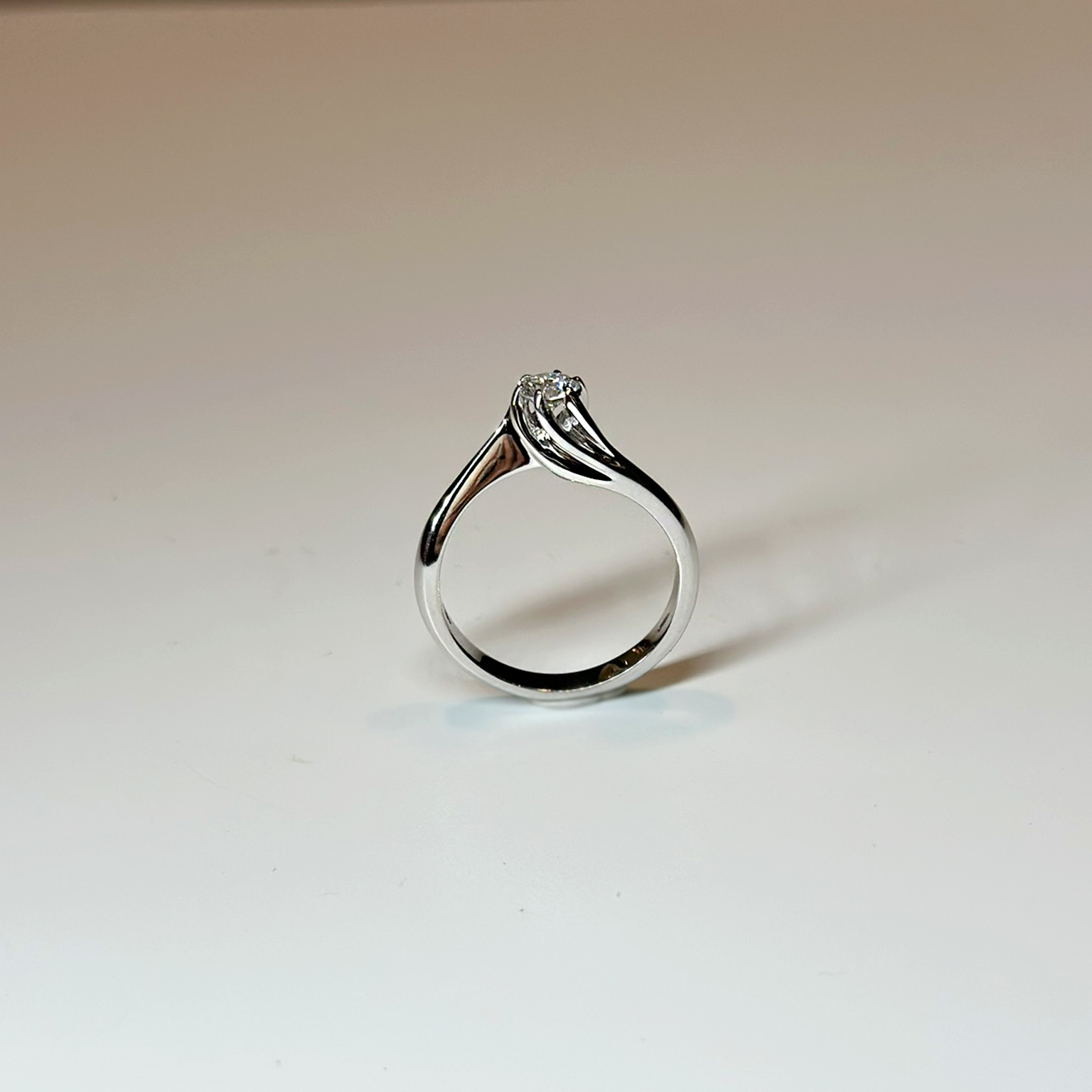 Anello oro bianco 18kt con diamante taglio brillante ct 0.34 Colore G Purezza VS