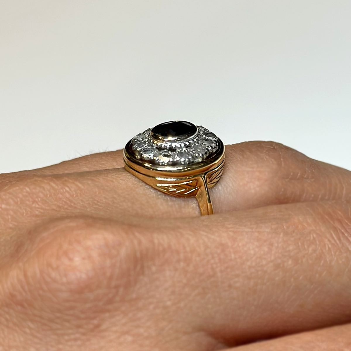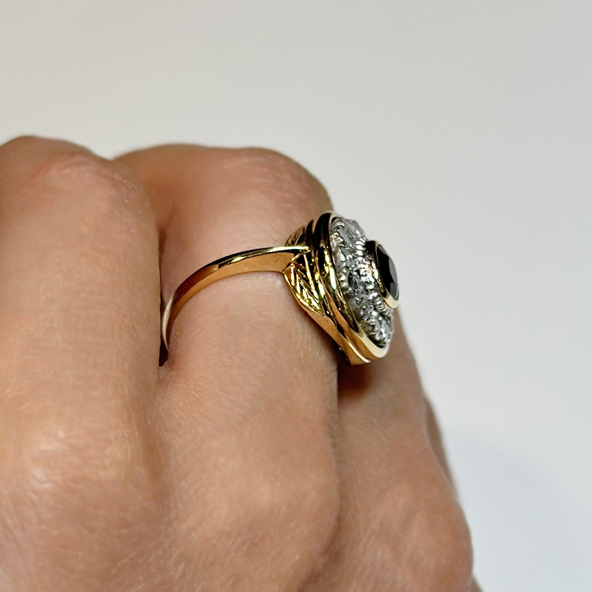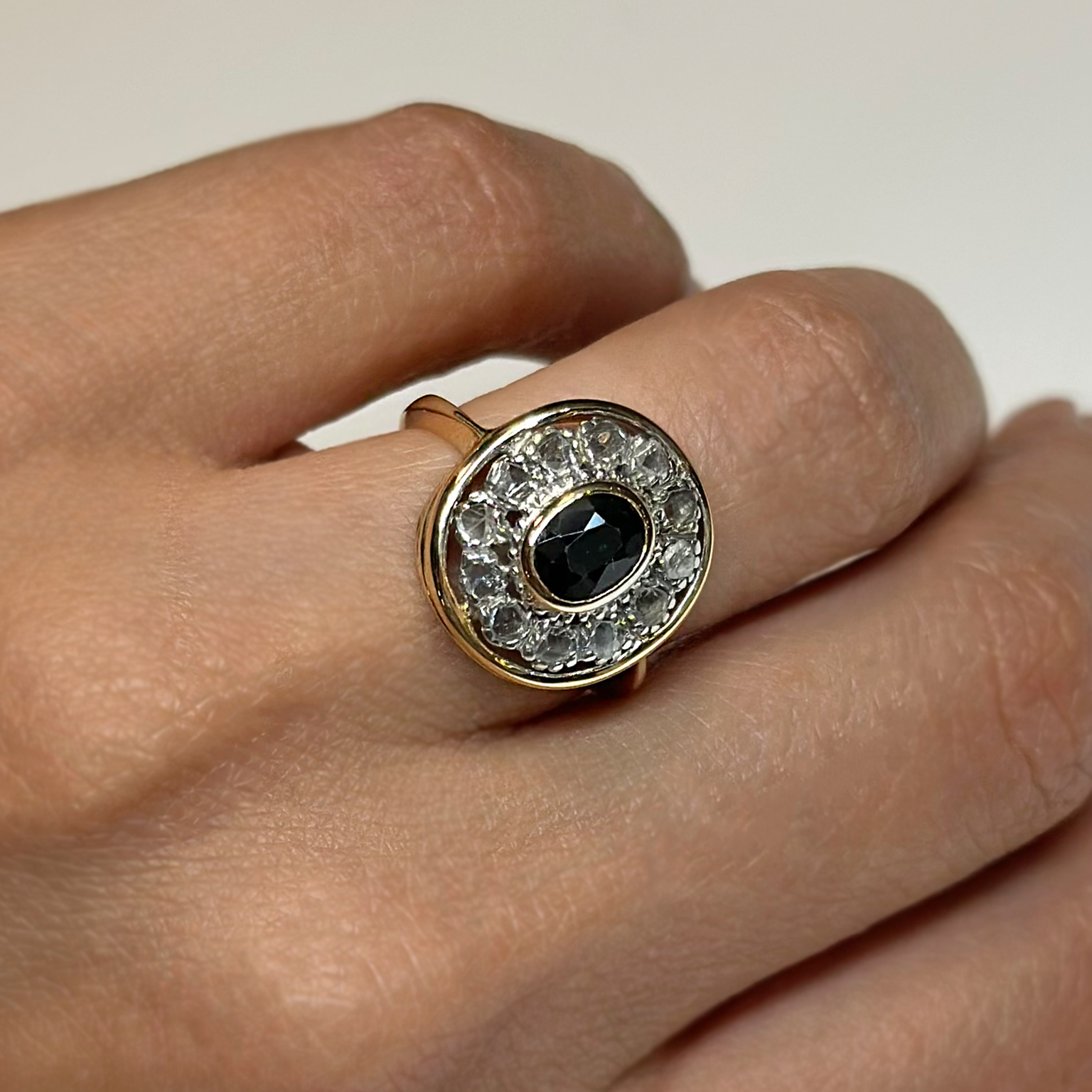 Anello Vintage Oro 18kt Zaffiro e Diamanti Rosetta