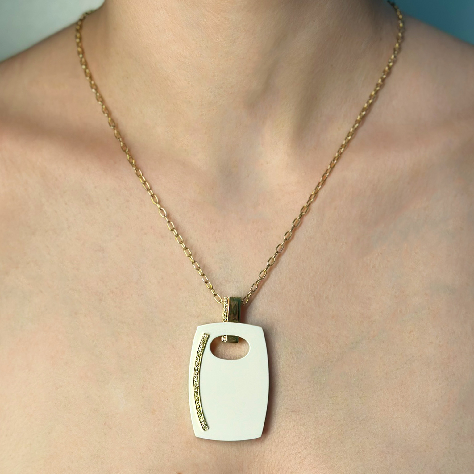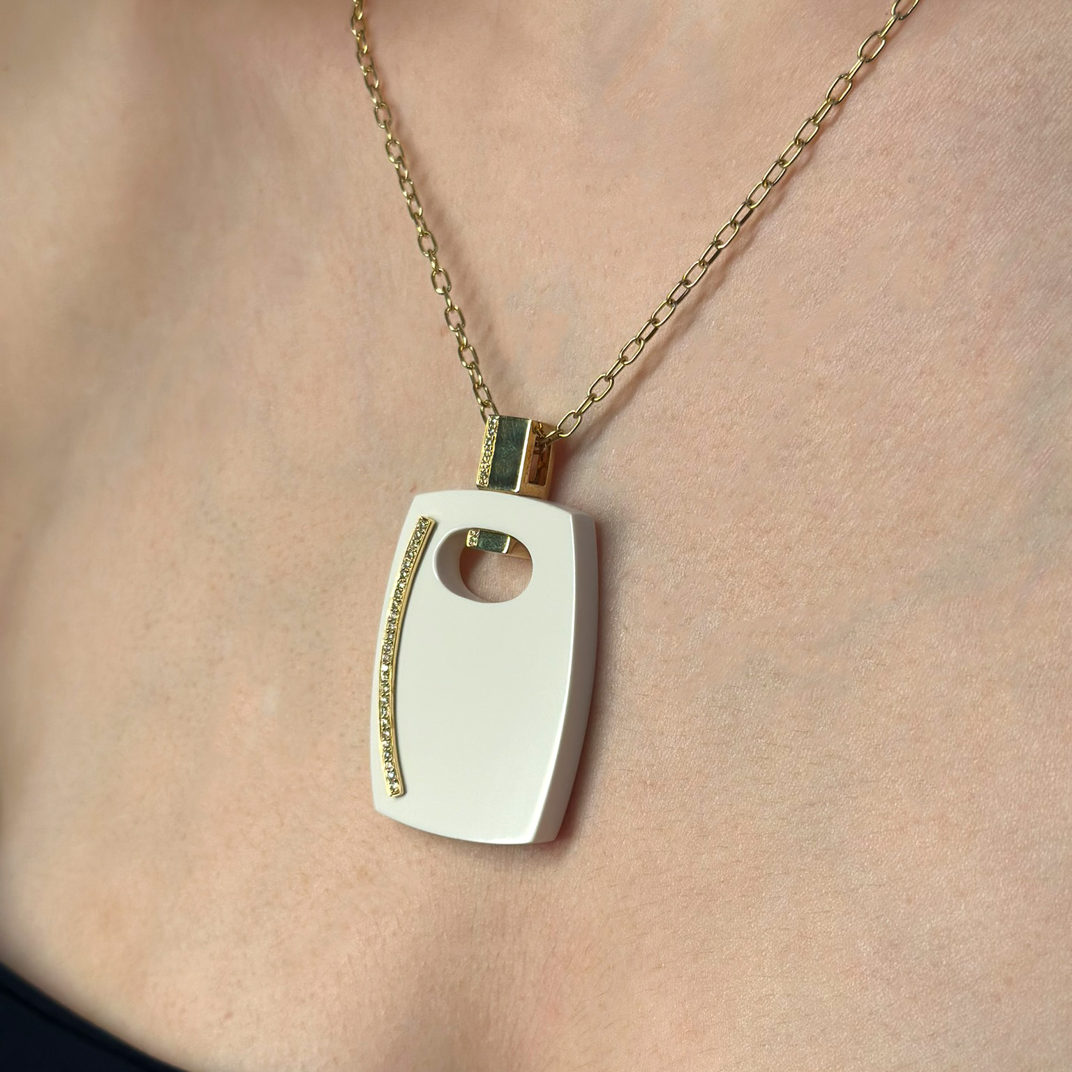 Ciondolo in oro giallo 18kt con agata bianca e diamanti taglio brillante totale ct 0.20 G VS