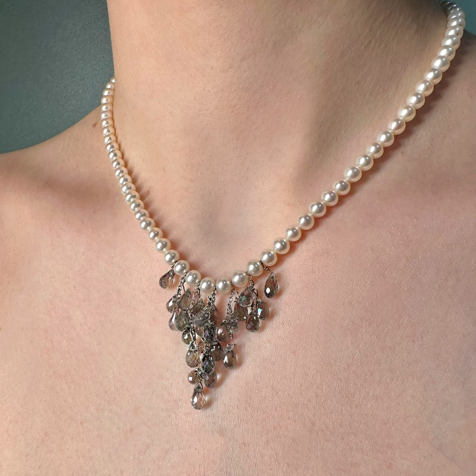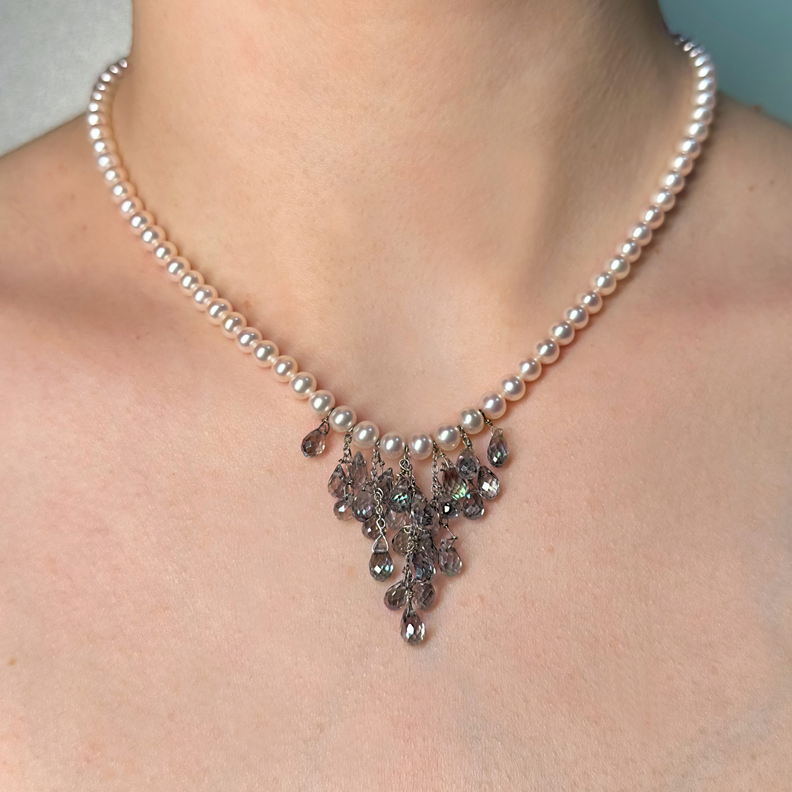 Collana di perle di acqua dolce e cristalli