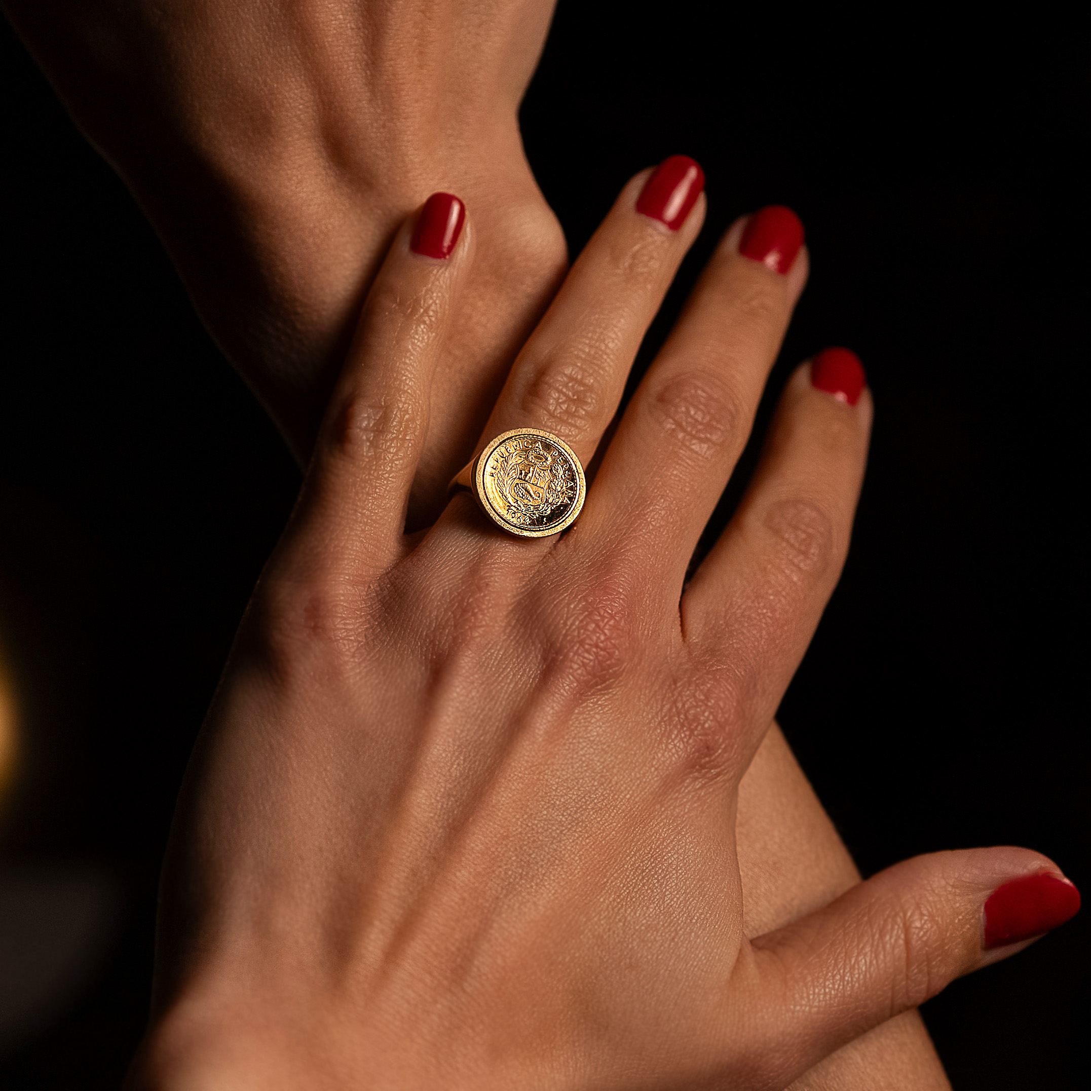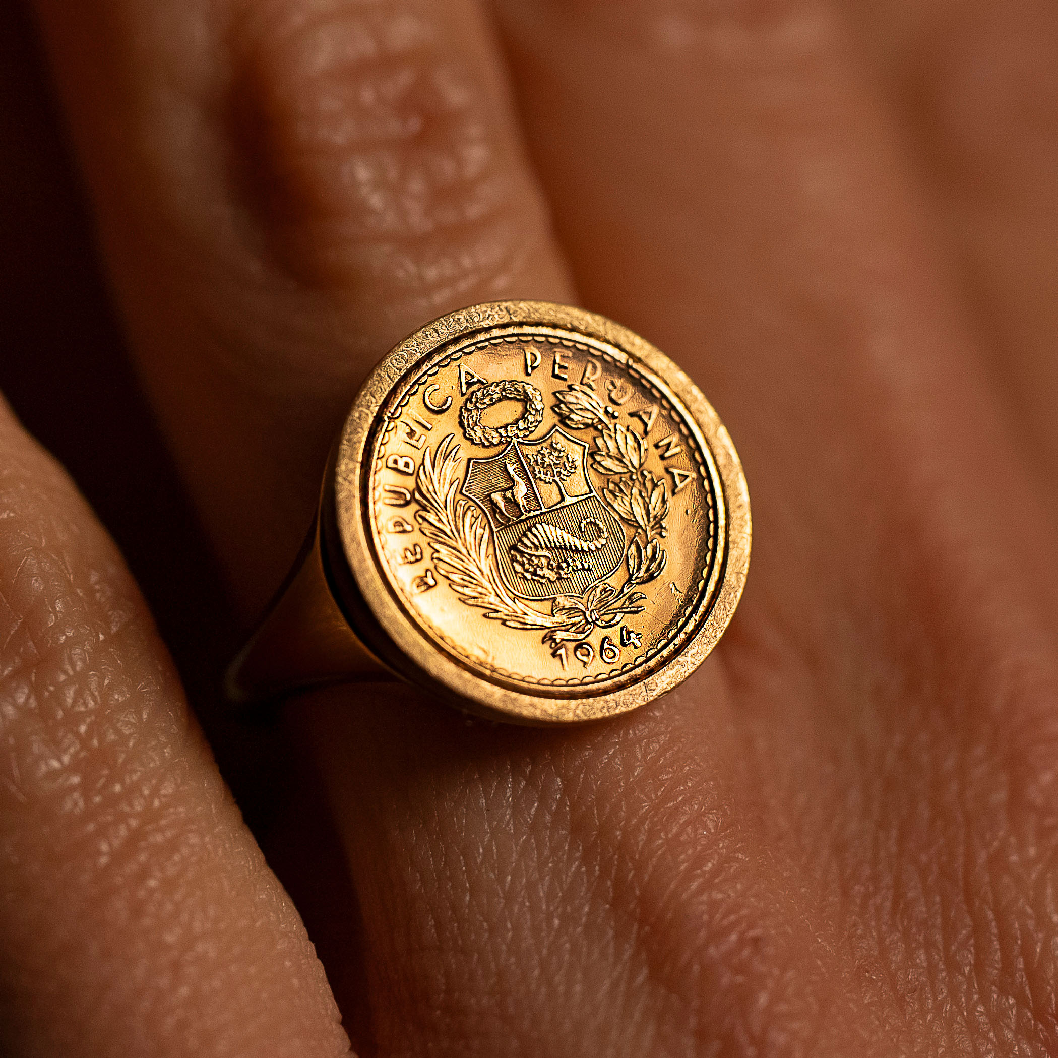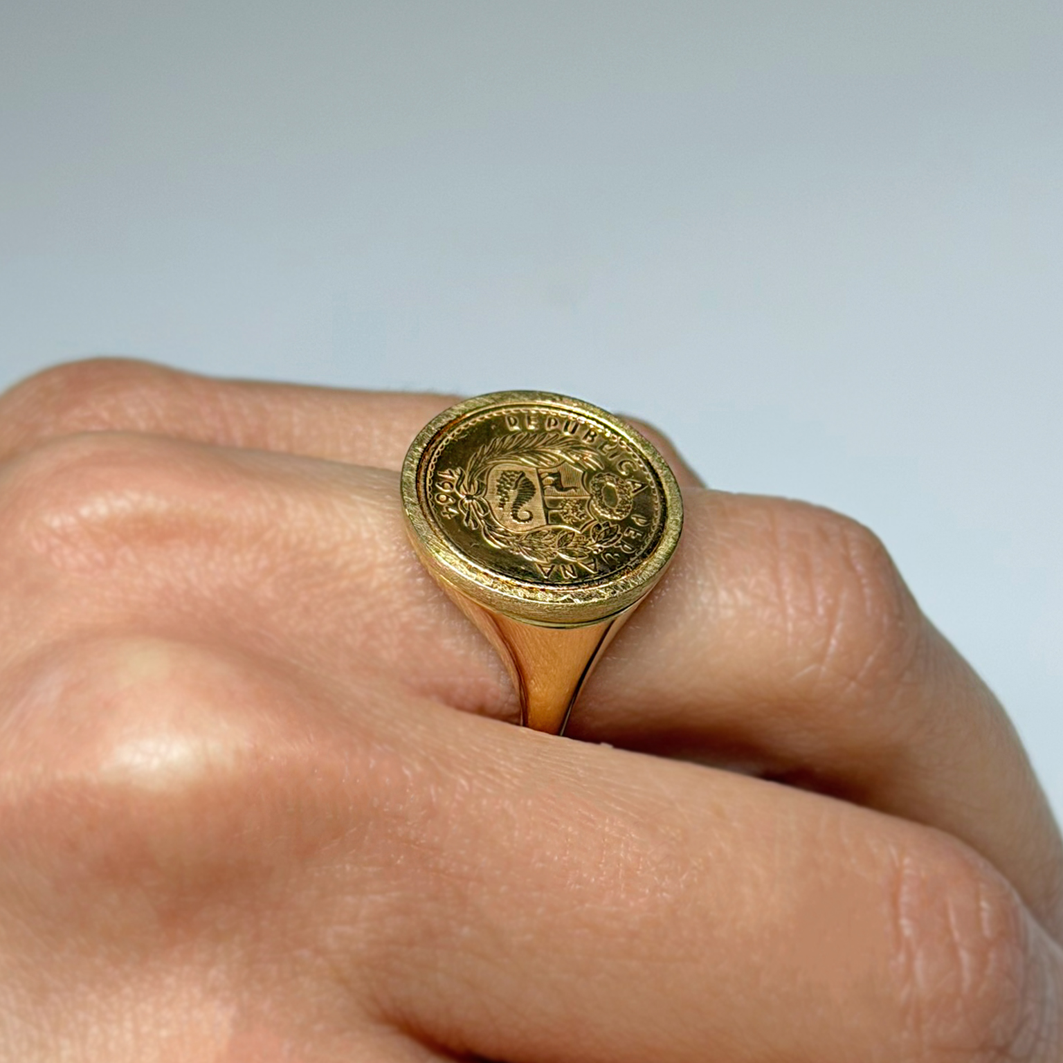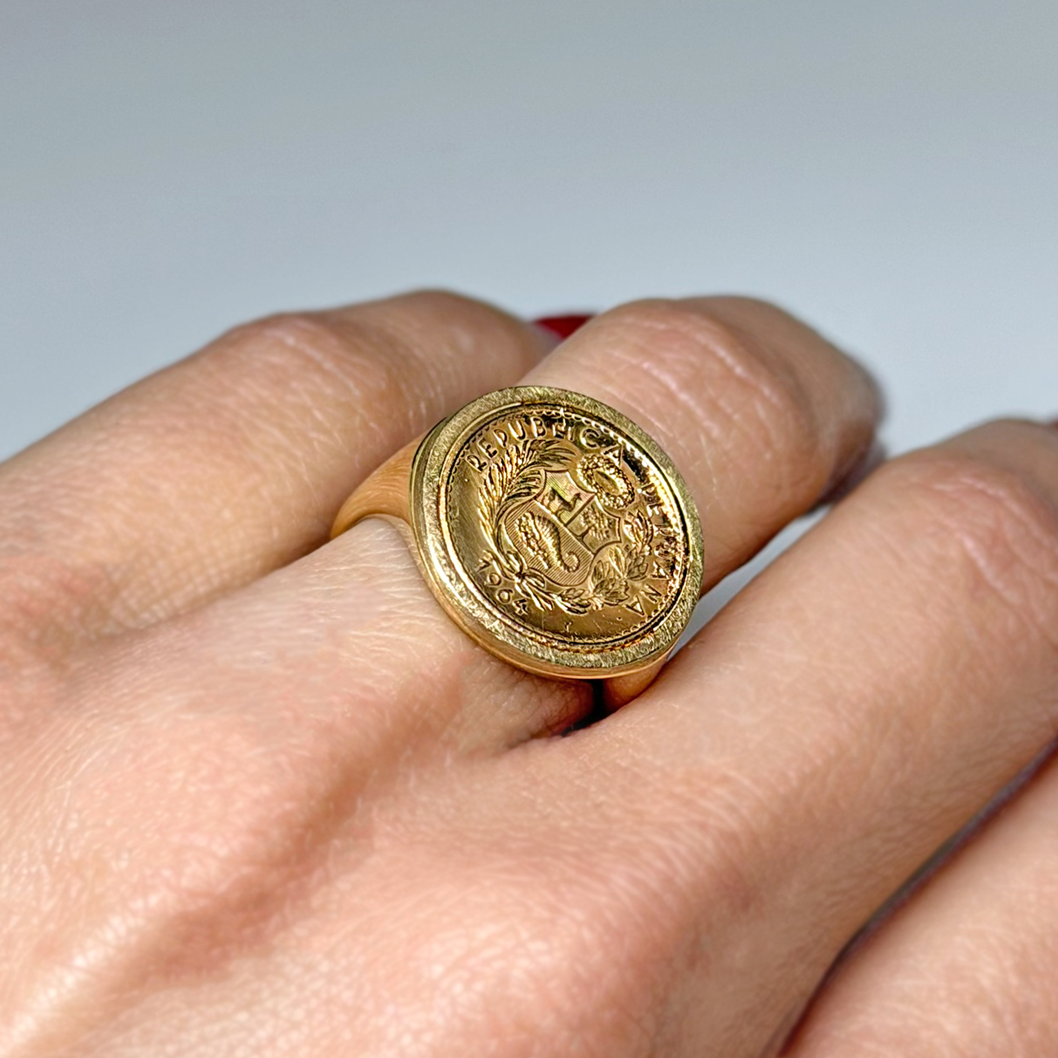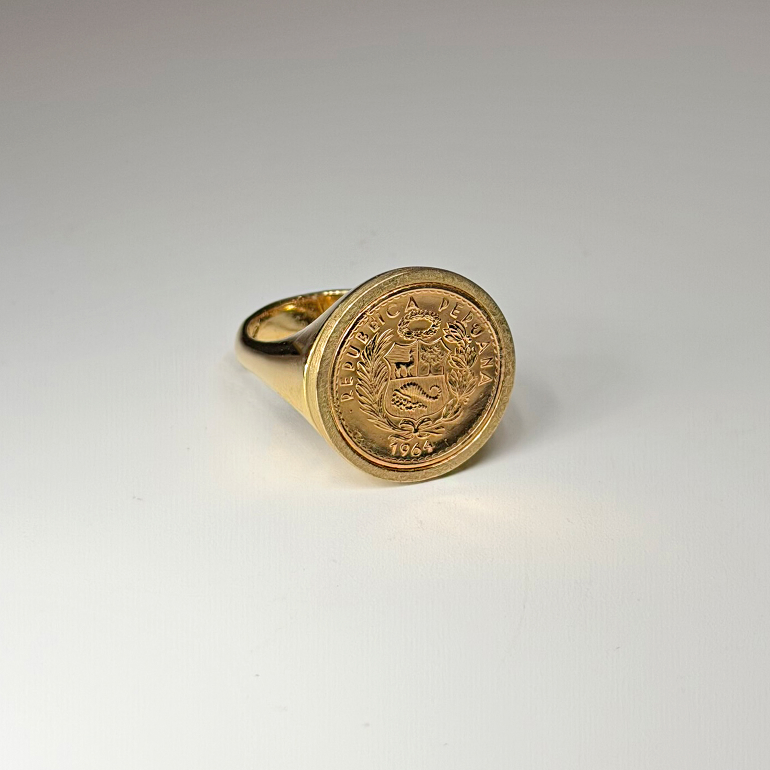 Anello Chevalier Flavioro con moneta Sol d’Oro Repubblica Peruviana 1964 titolo 900/1000