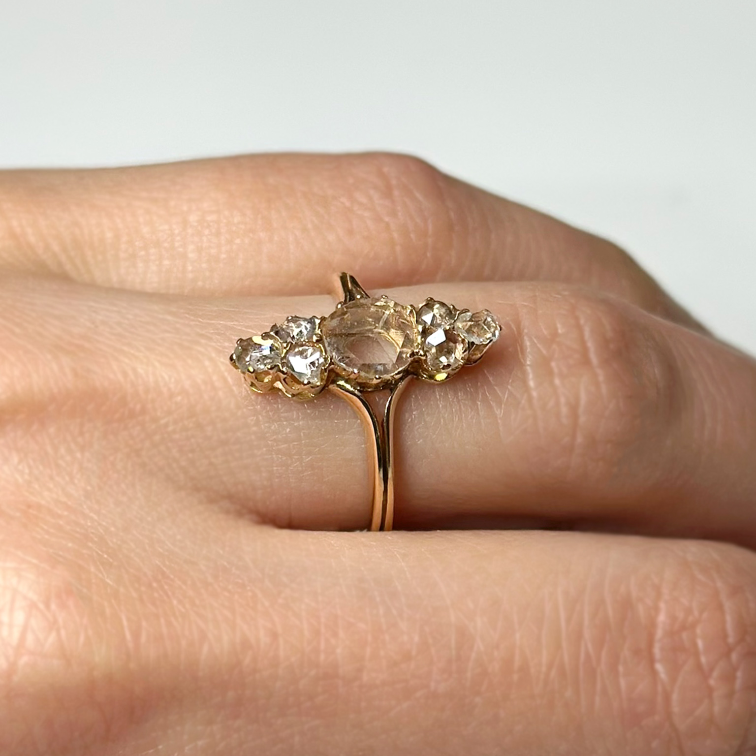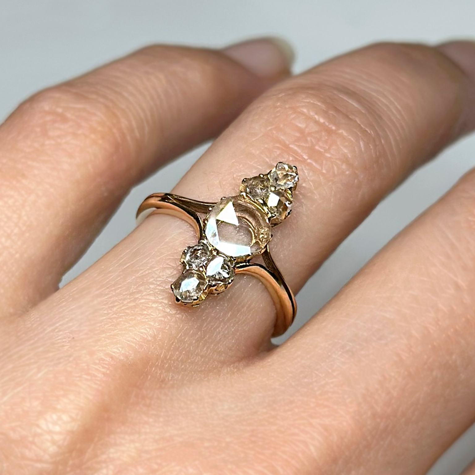 Anello in oro rosa 18kt con diamante taglio rosetta ct 0.50 + ct 0.48