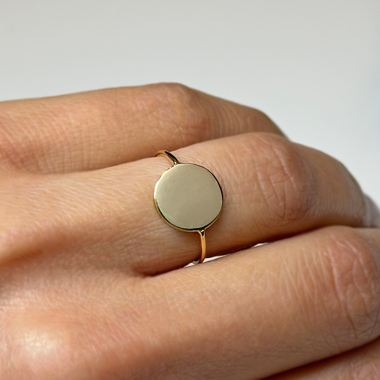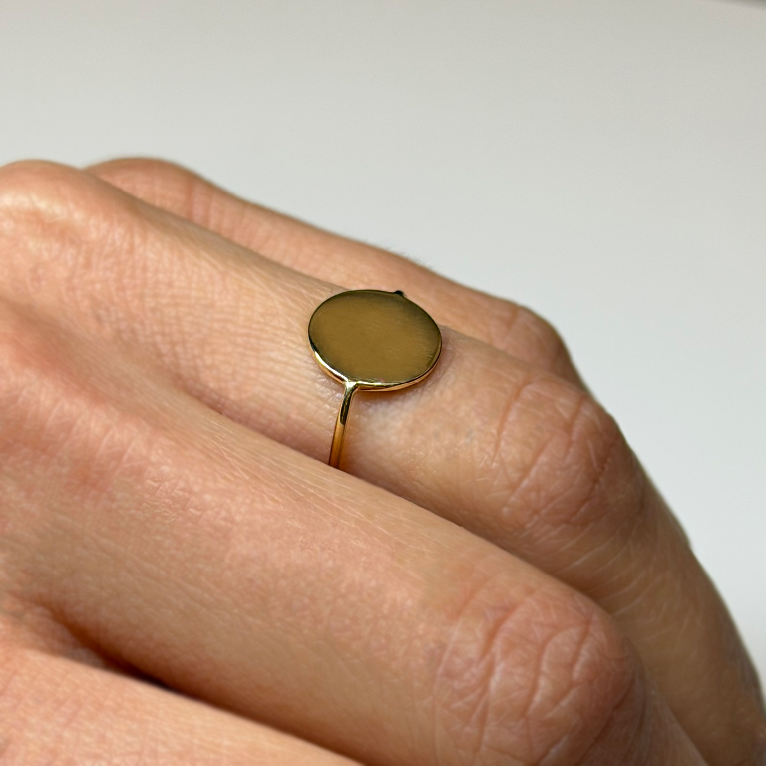 Anello Flavioro in oro giallo 18kt con disco centrale sul quale è possibile incidere.