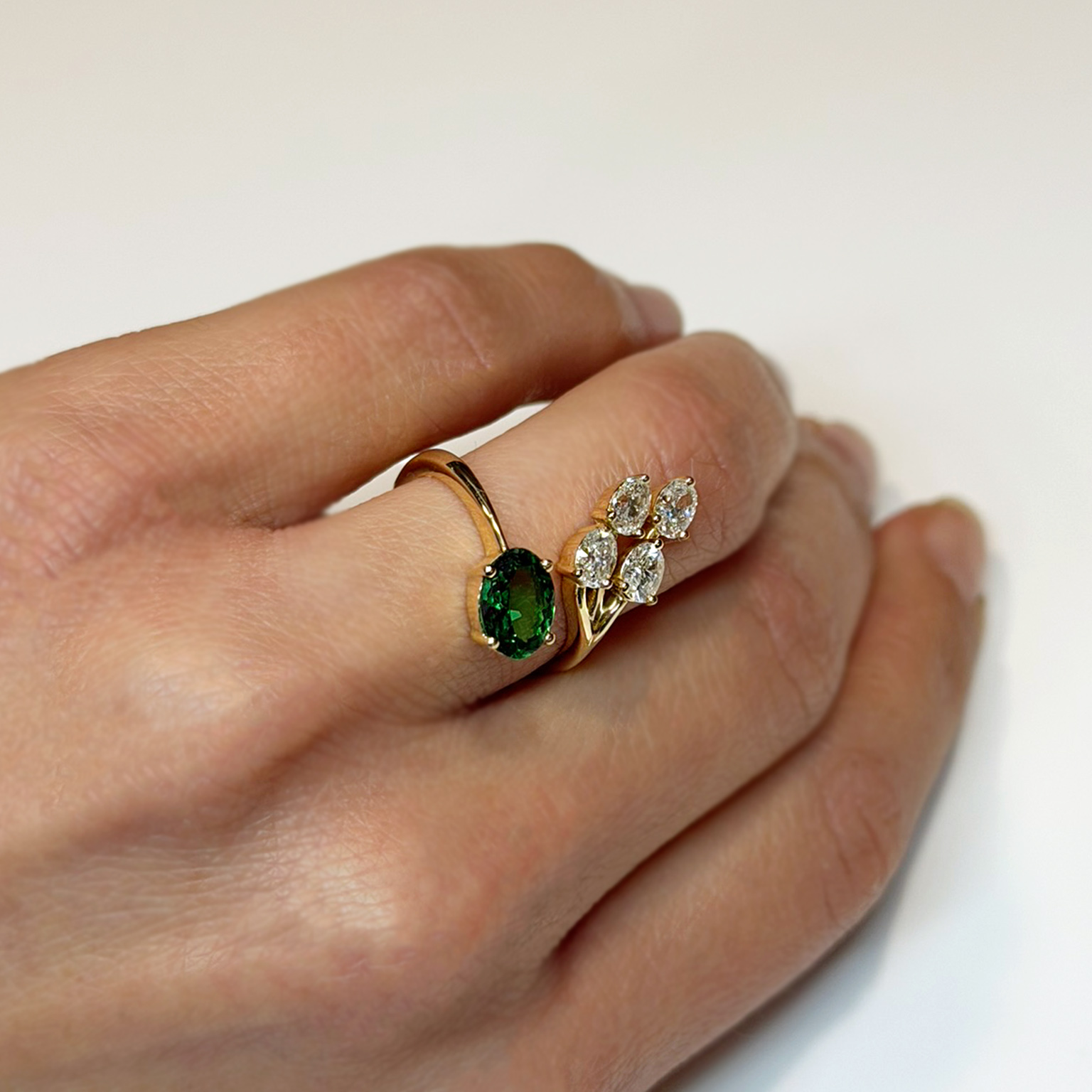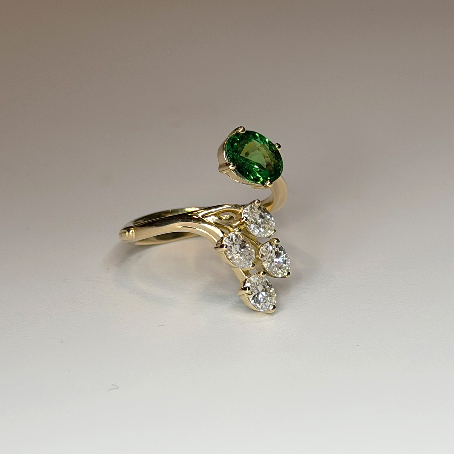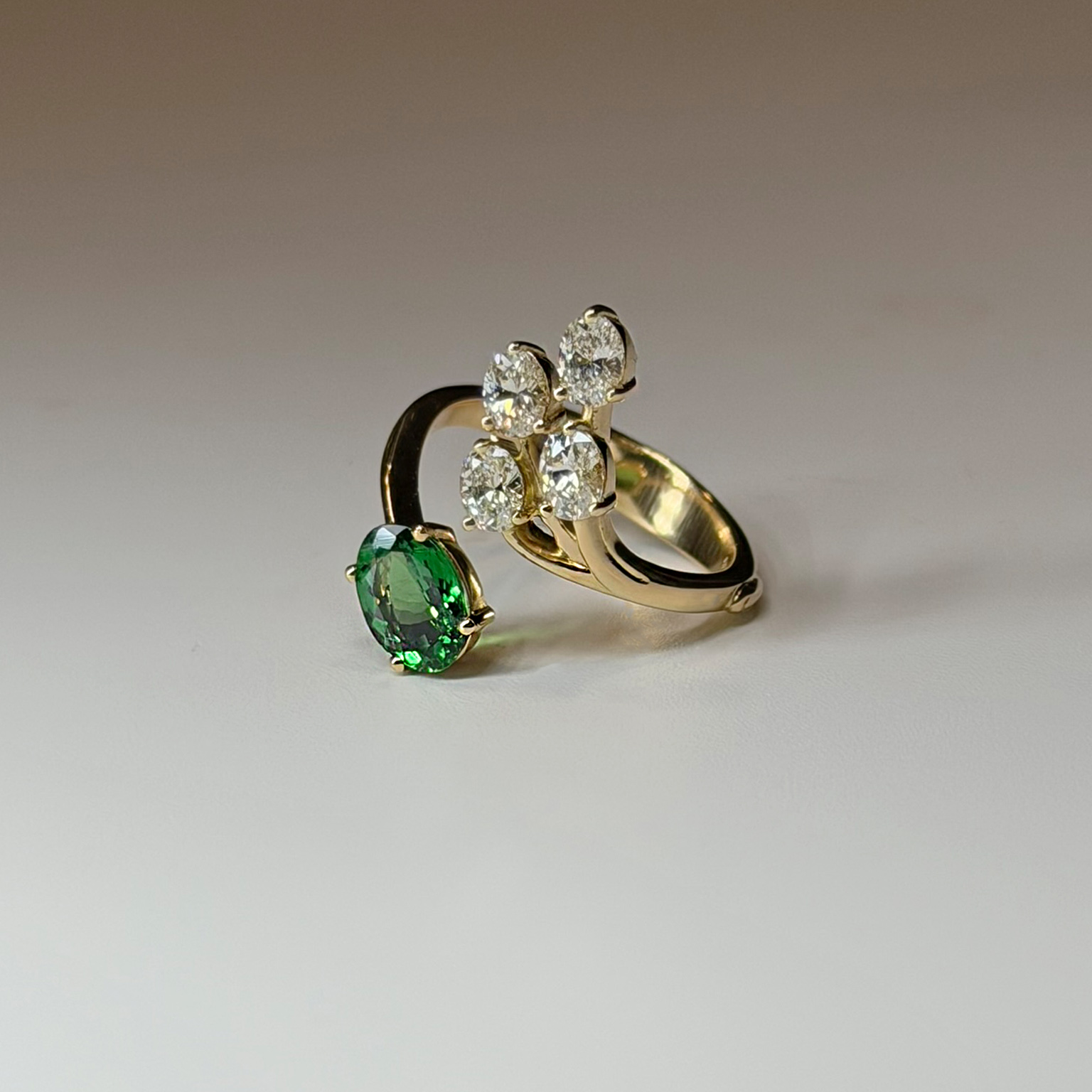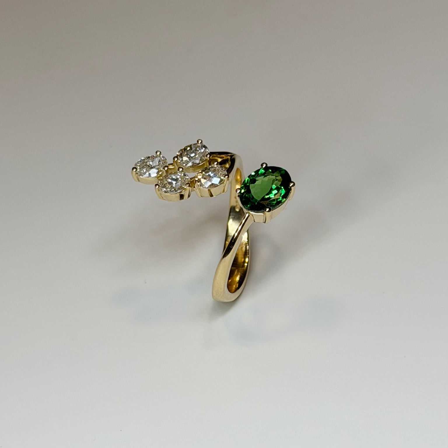 Anello Flavioro modello contrariè in oro giallo 18kt con tsavorite taglio ovale ct 1.11 e diamanti taglio ovale totale ct 0.82