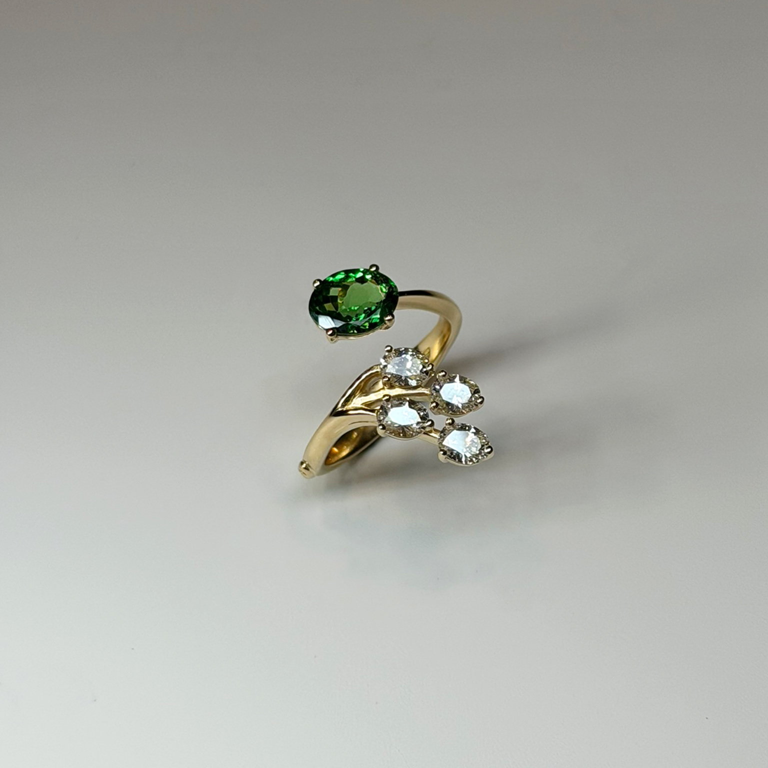 Flavioro Anello Edera Oro 18kt Tsavorite ct 1.11 e Diamanti ct 0.82