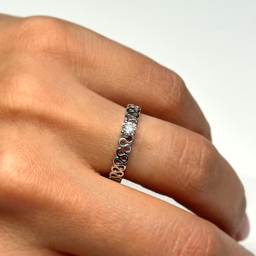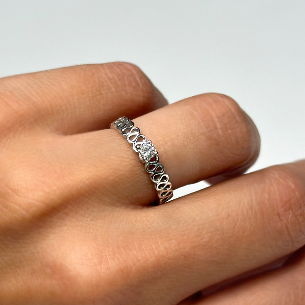Anello Flavioro in oro bianco 18kt con diamante taglio brillante ct 0.14 Colore G Purezza VS