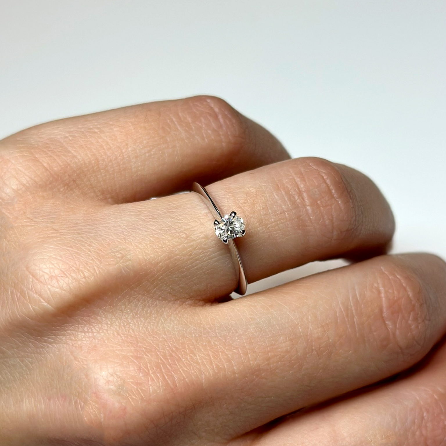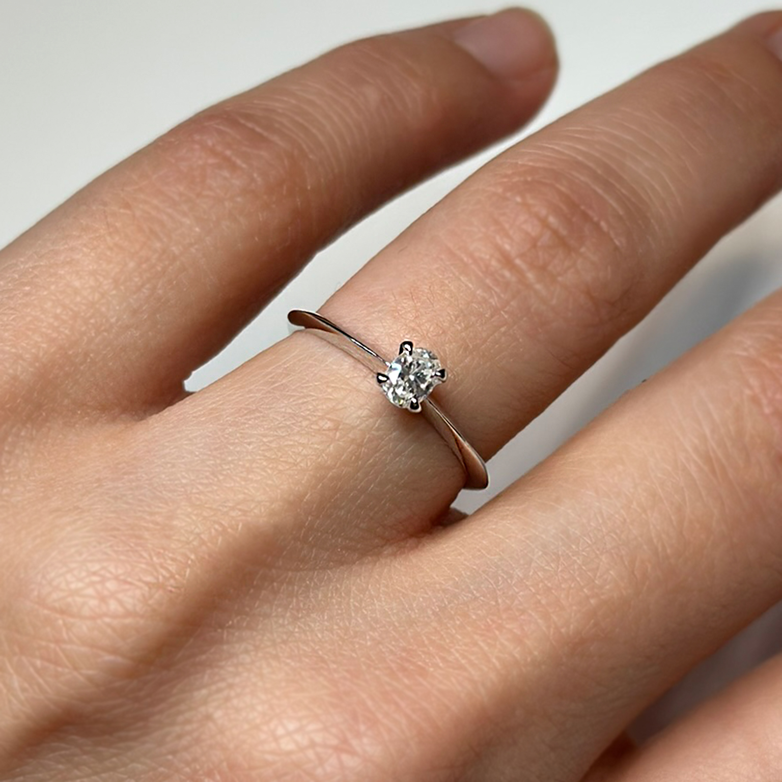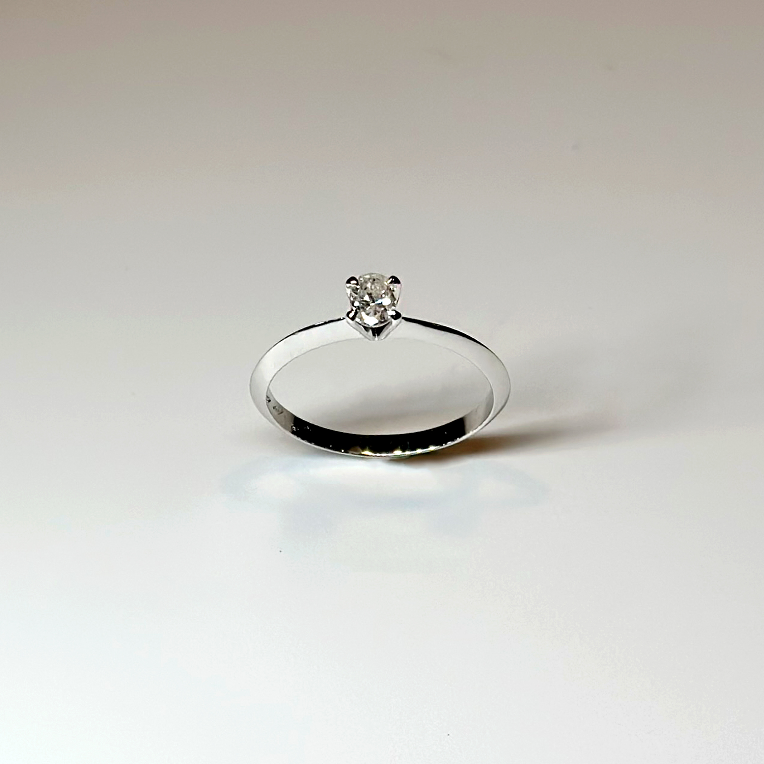 Anello modello solitario Flavioro in oro bianco 18kt con diamante taglio ovale ct 0.20 Colore G Purezza VS