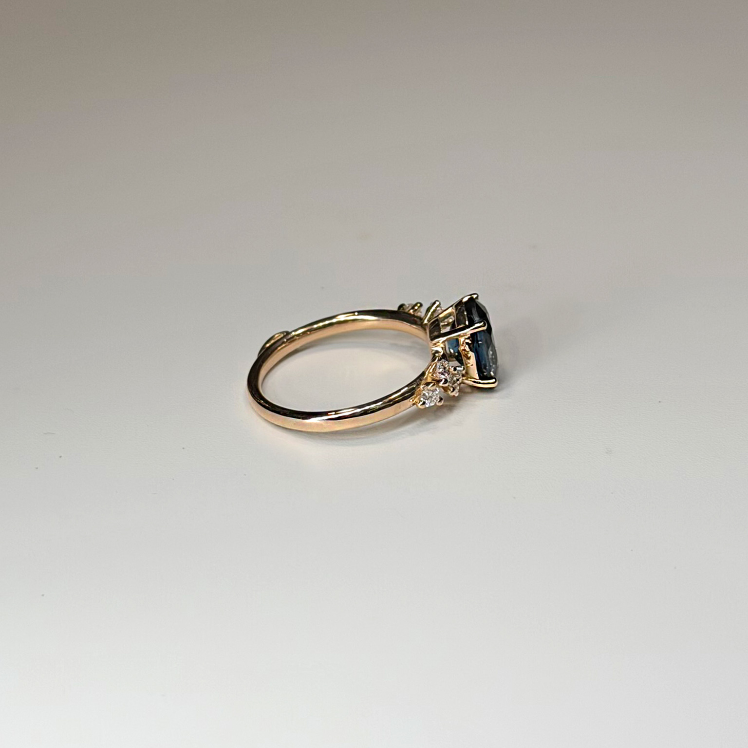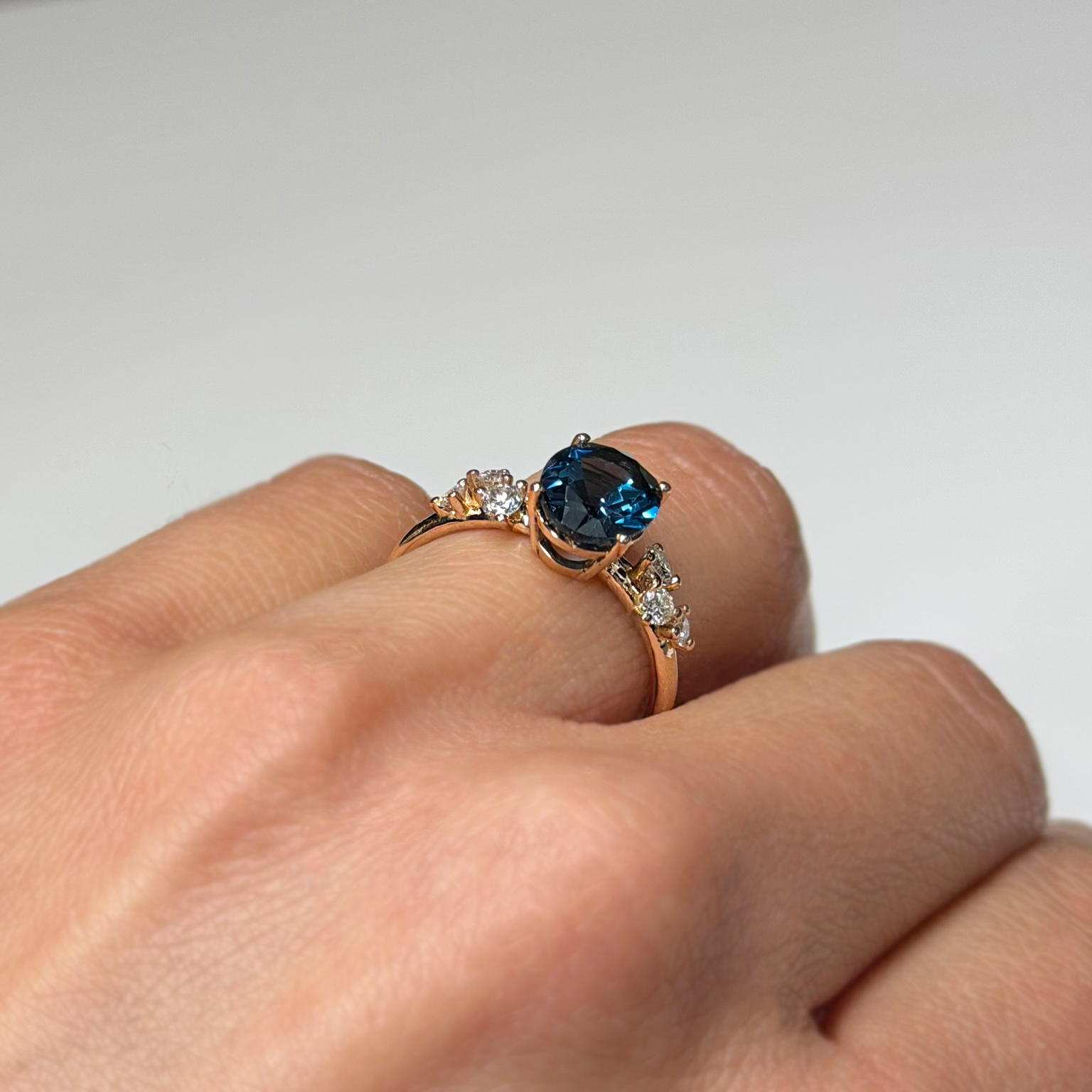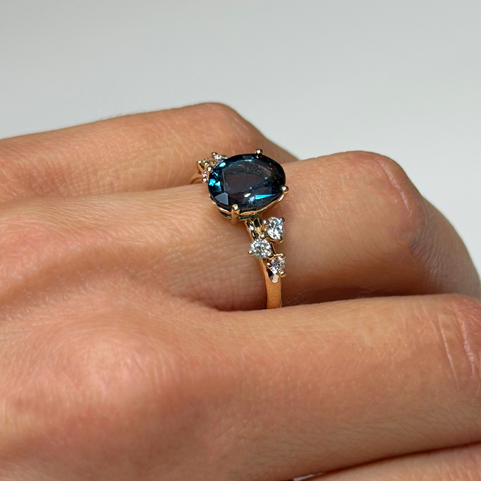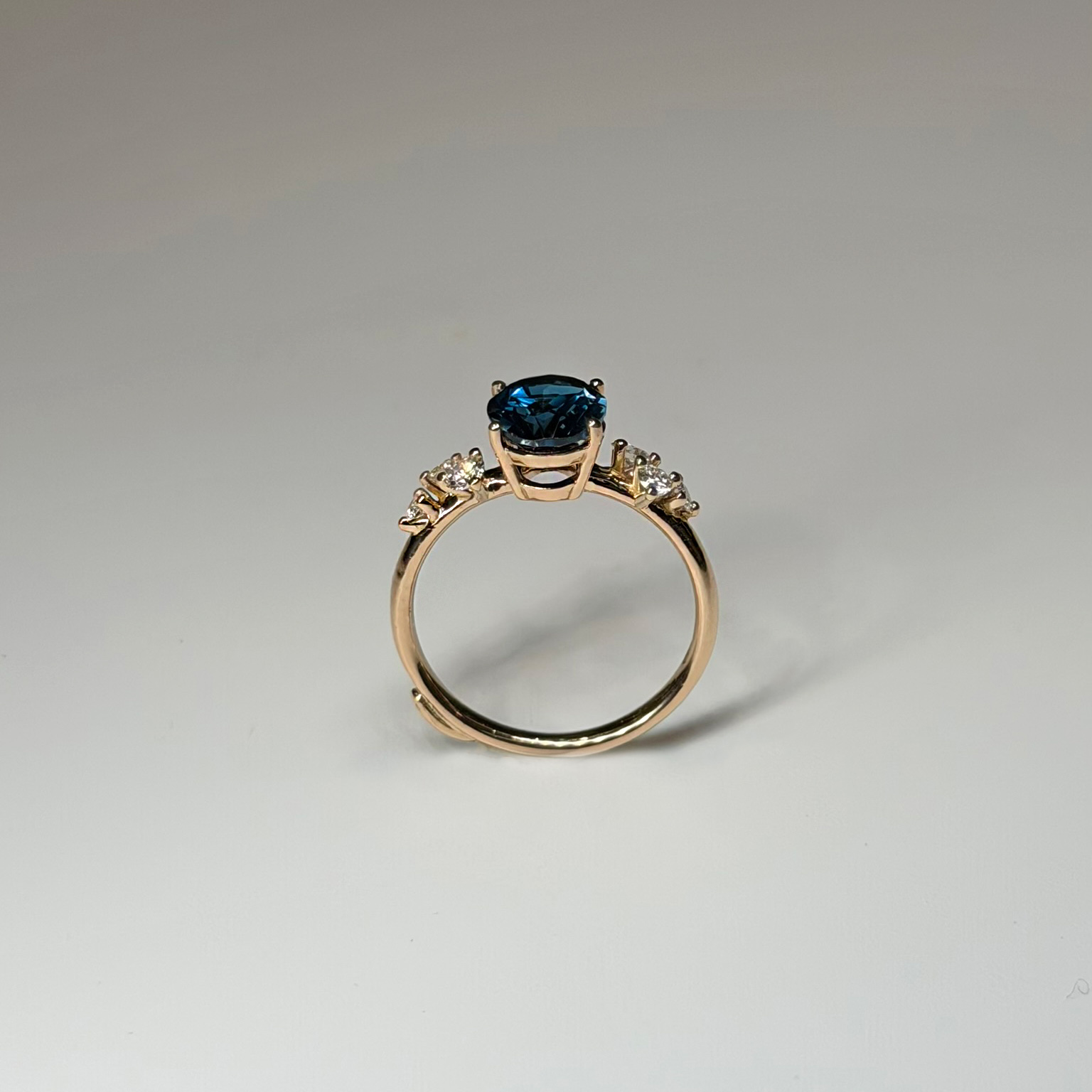 Anello in oro rosa 18kt con Topazio Blu London taglio ovale ct 2.13 e diamanti naturali laterali taglio brillante totale ct  0.26 G VS