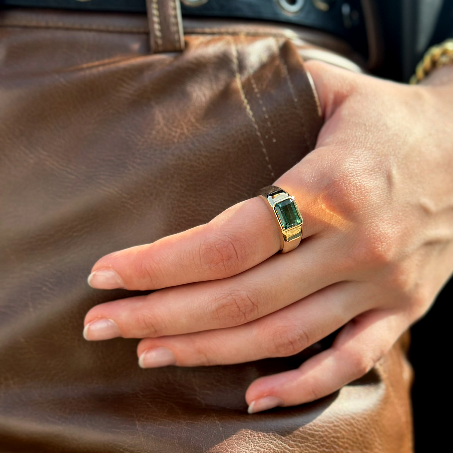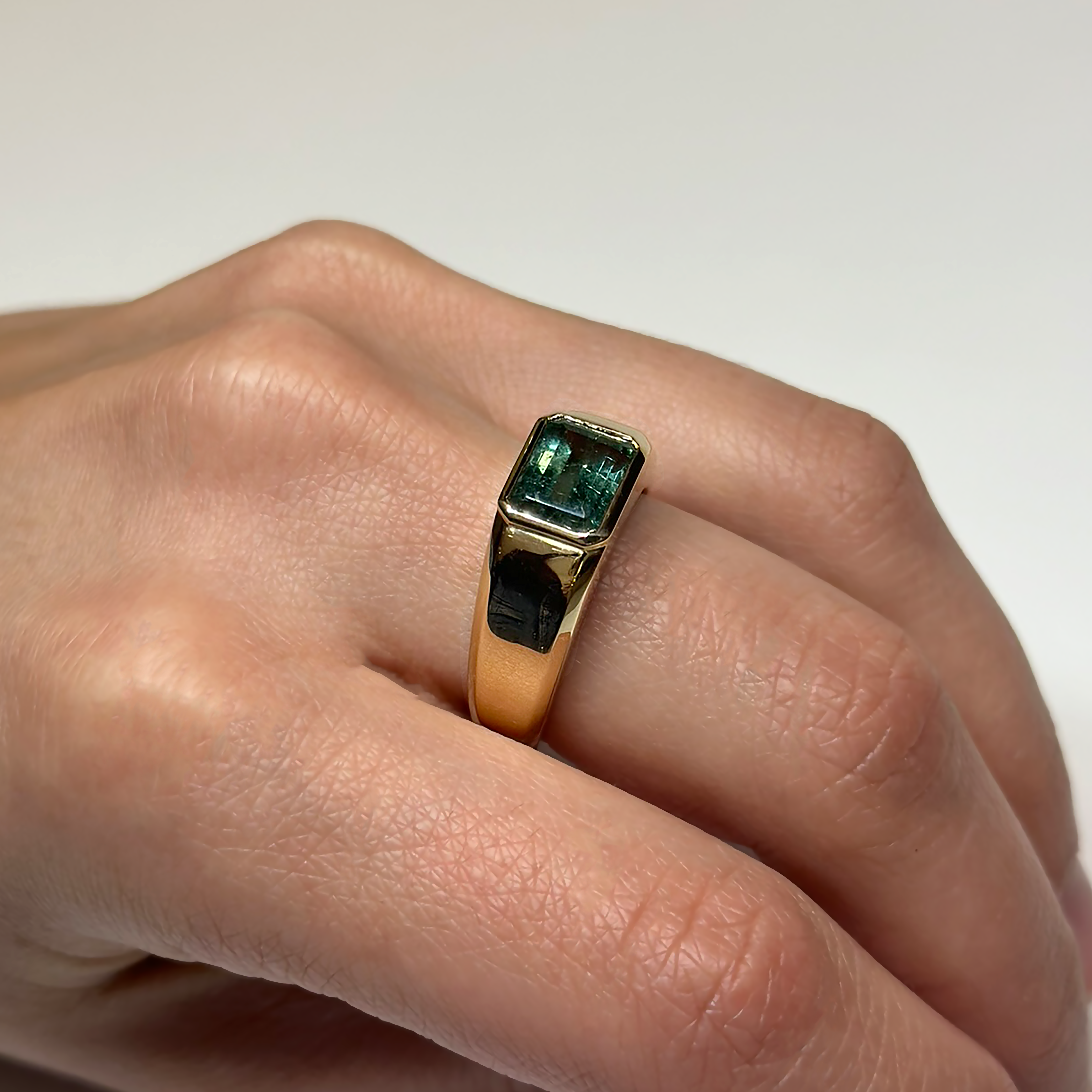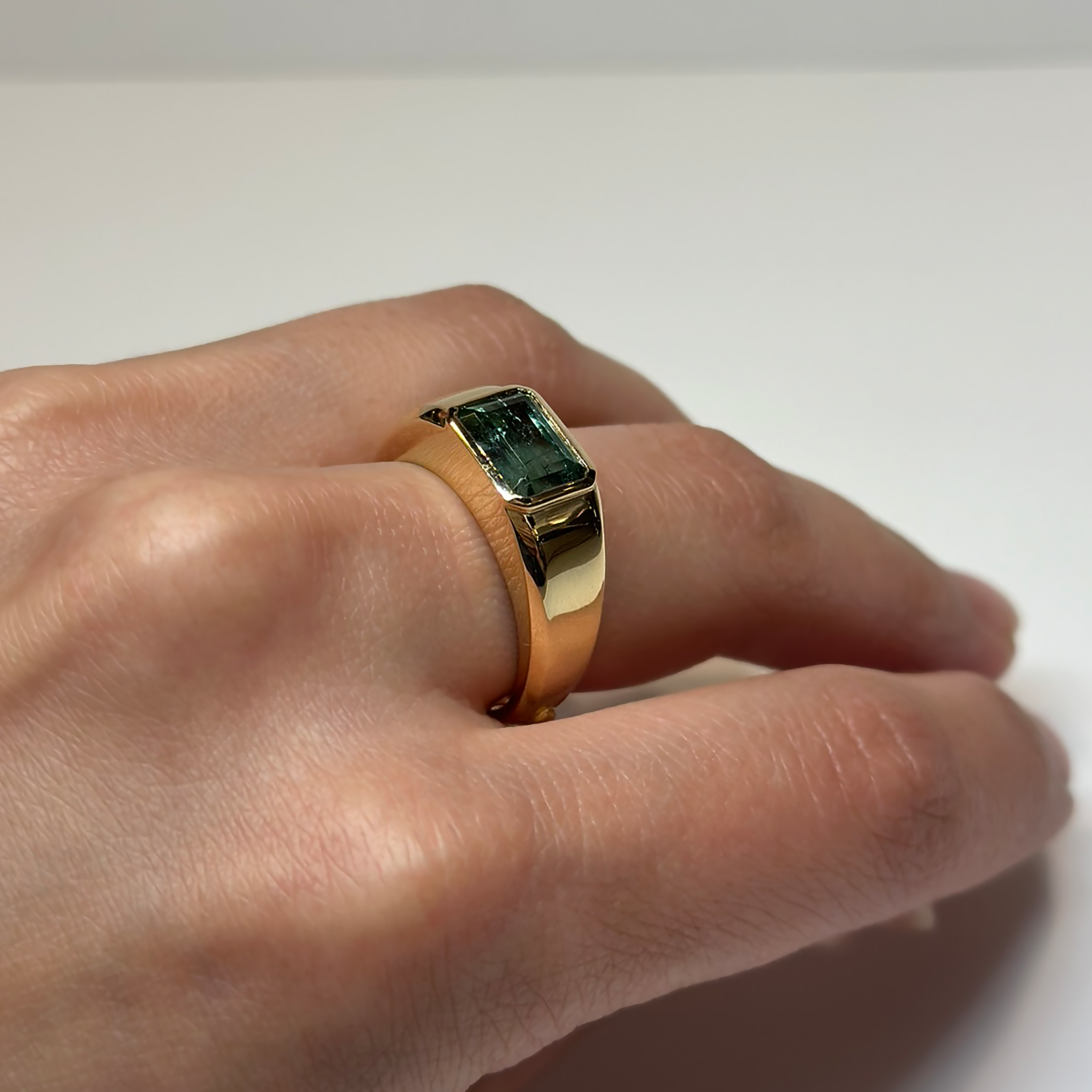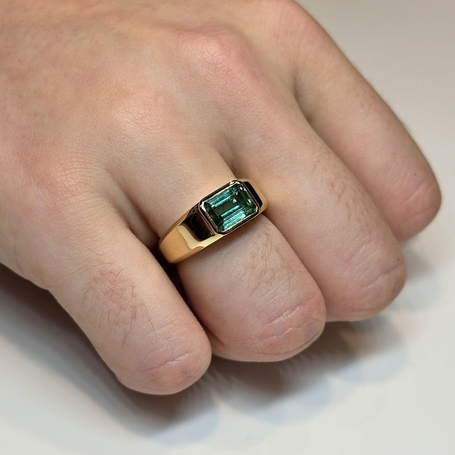 Anello unisex in oro giallo 18kt con Tormalina verde ct 3.00
