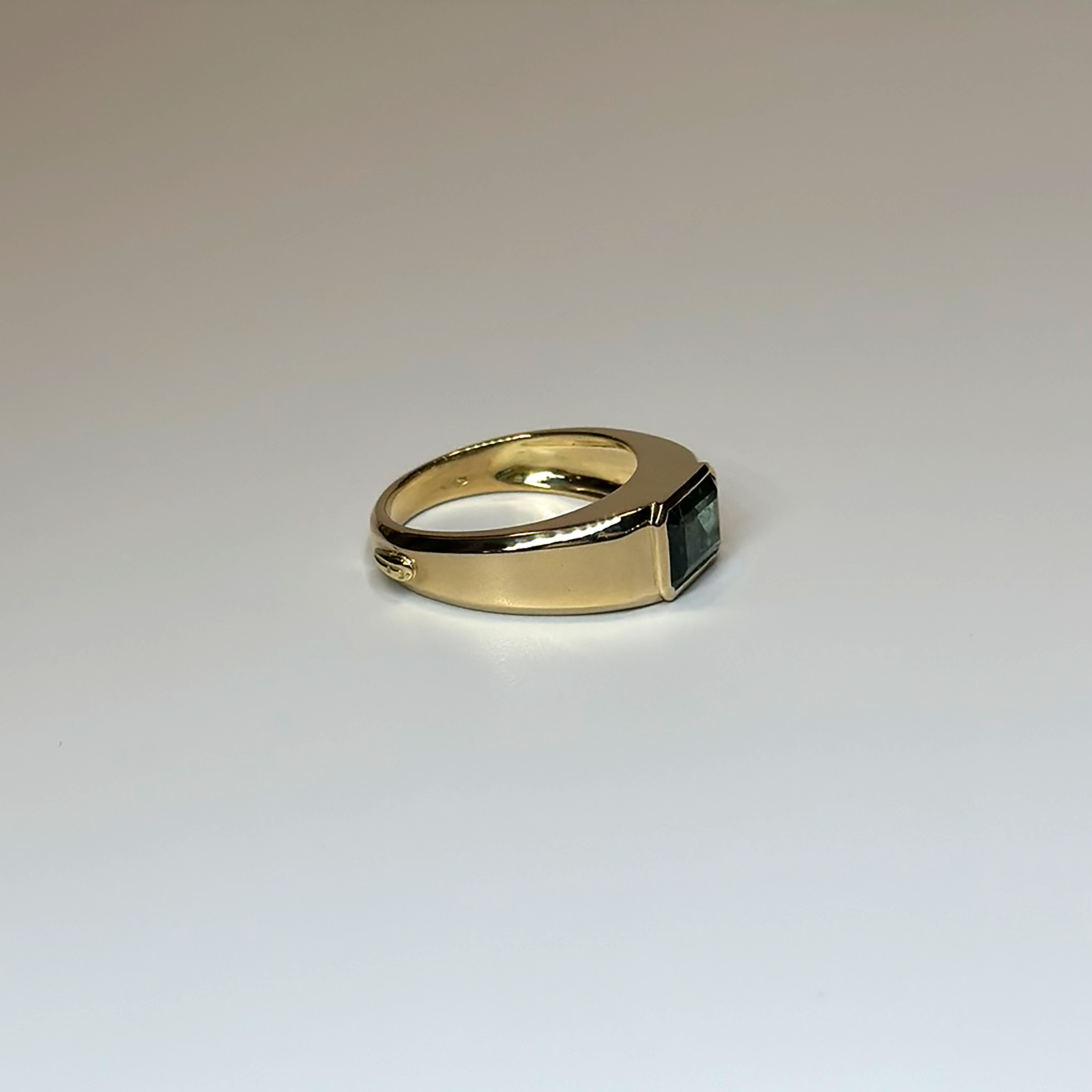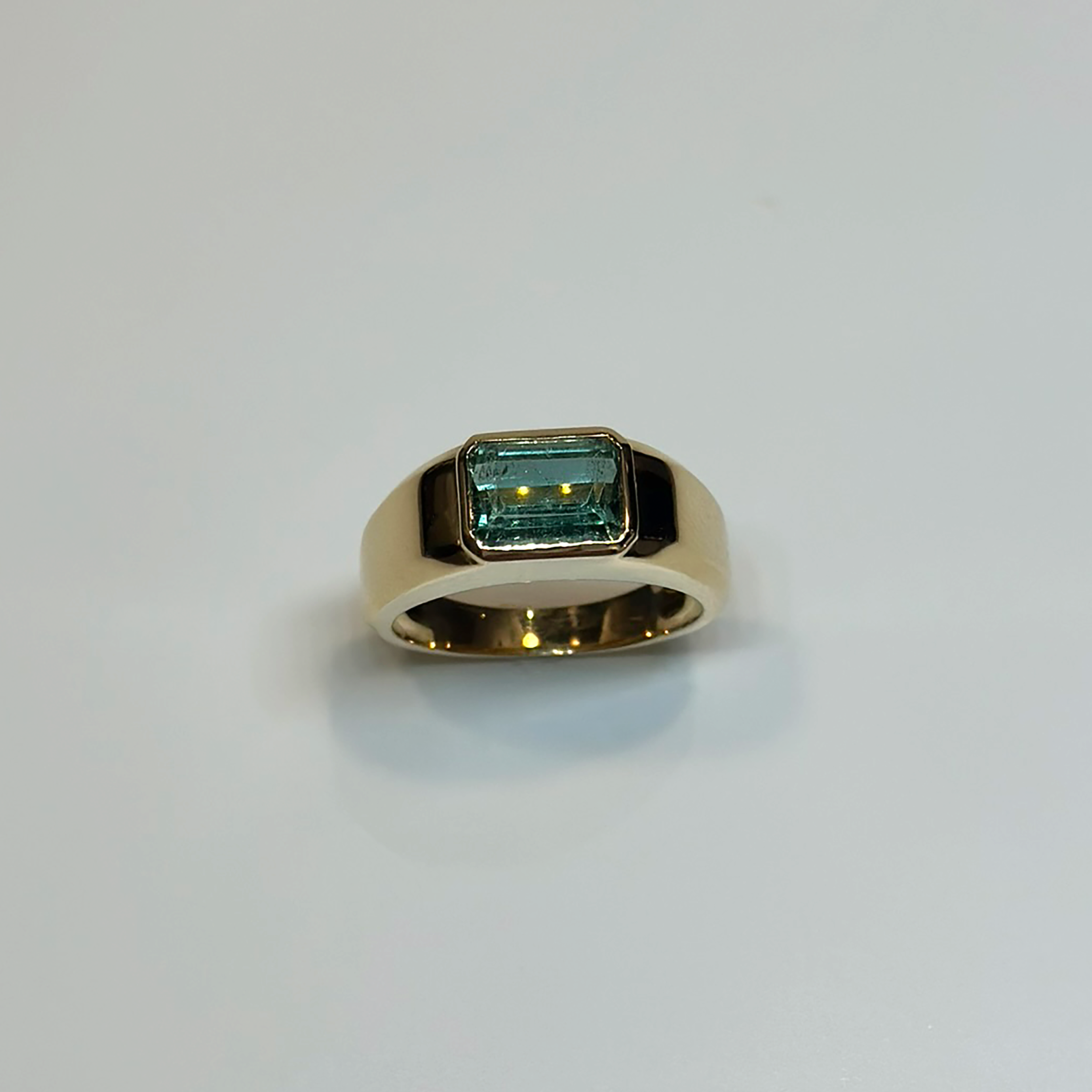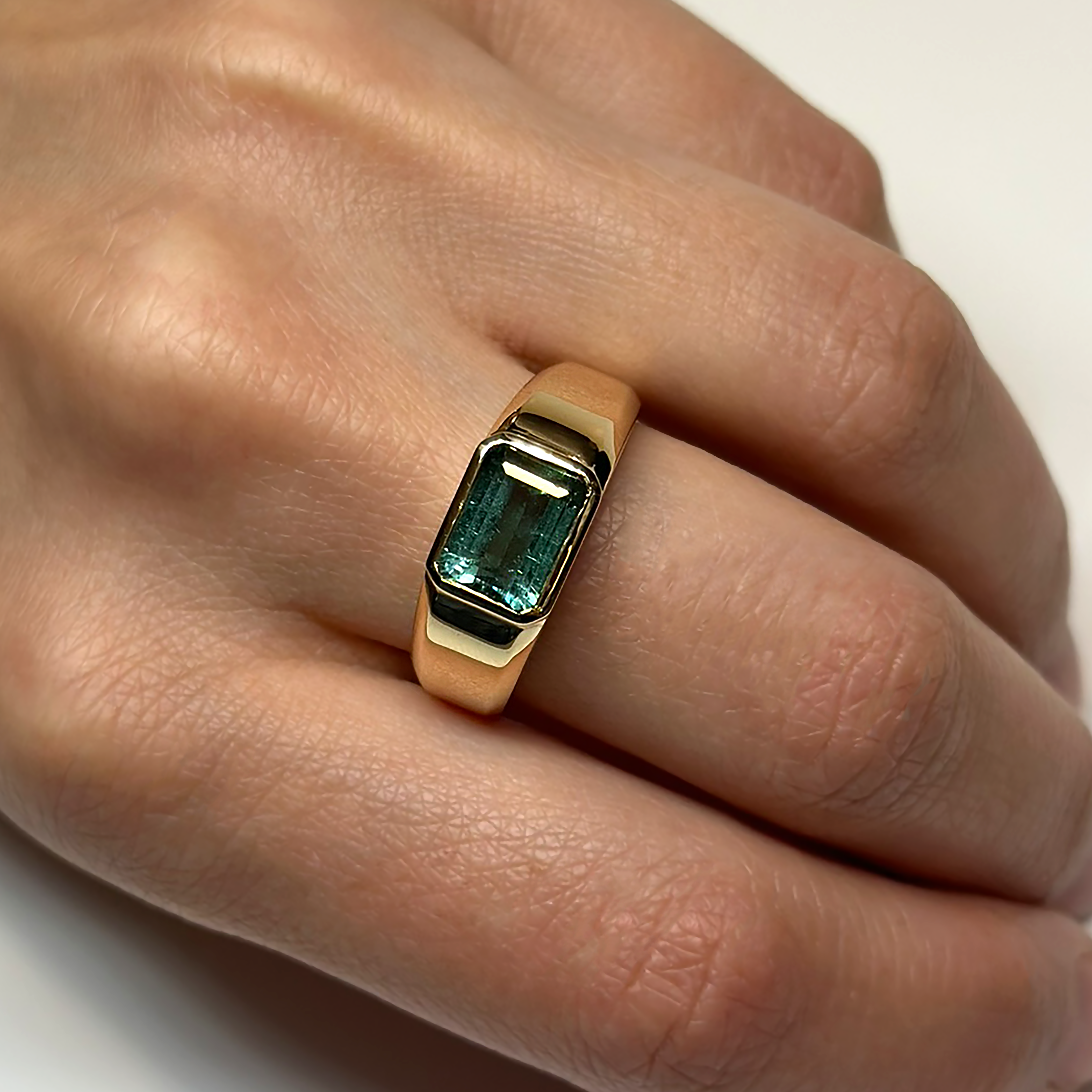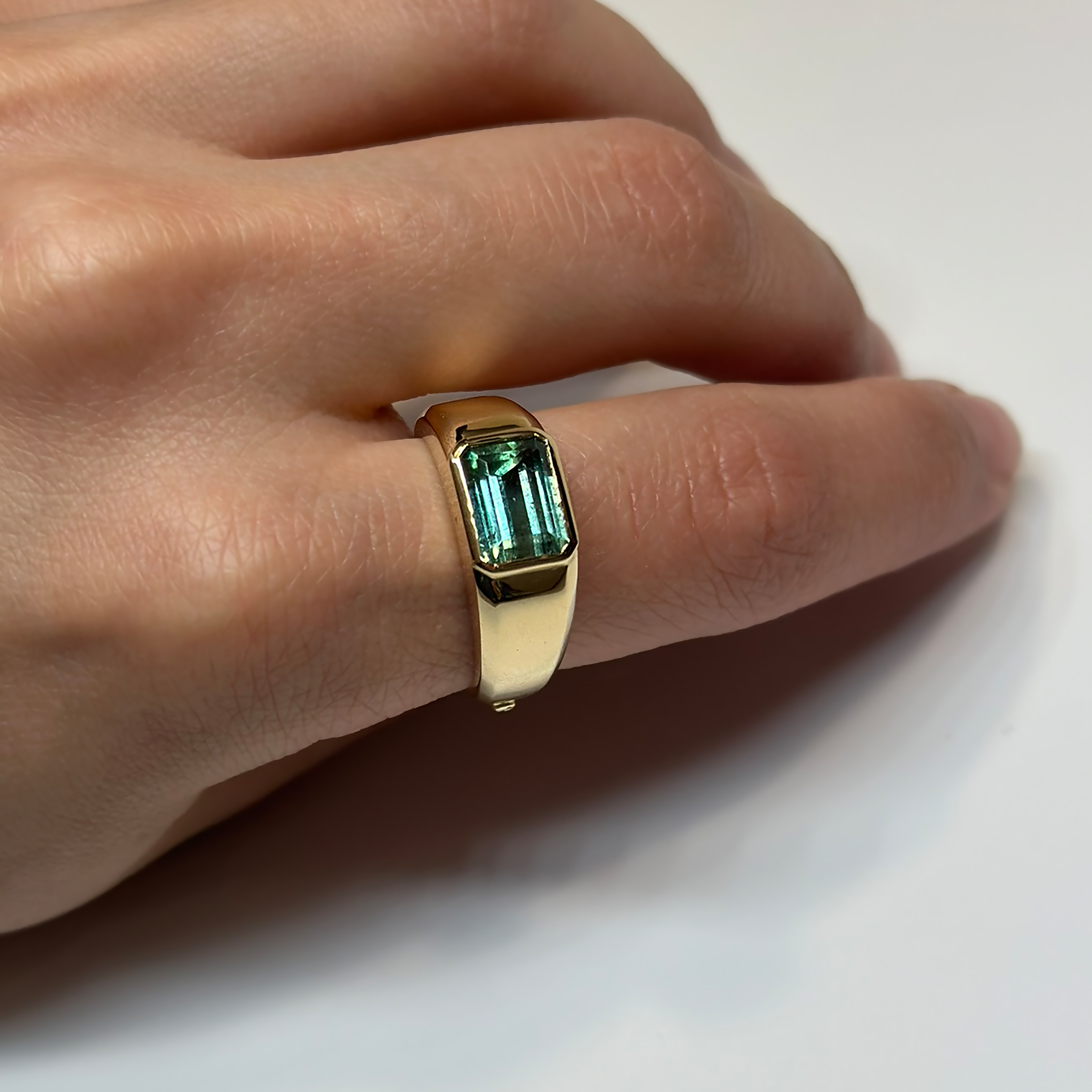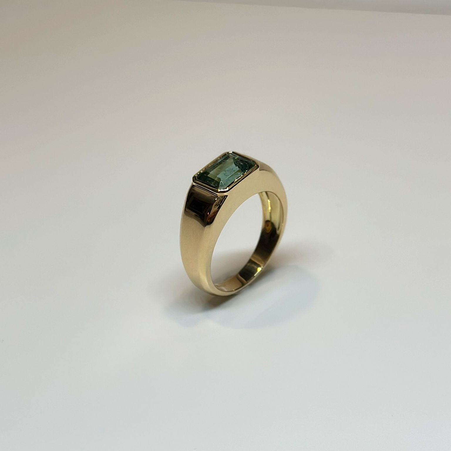 Anello unisex in oro giallo 18kt con Tormalina verde ct 3.00