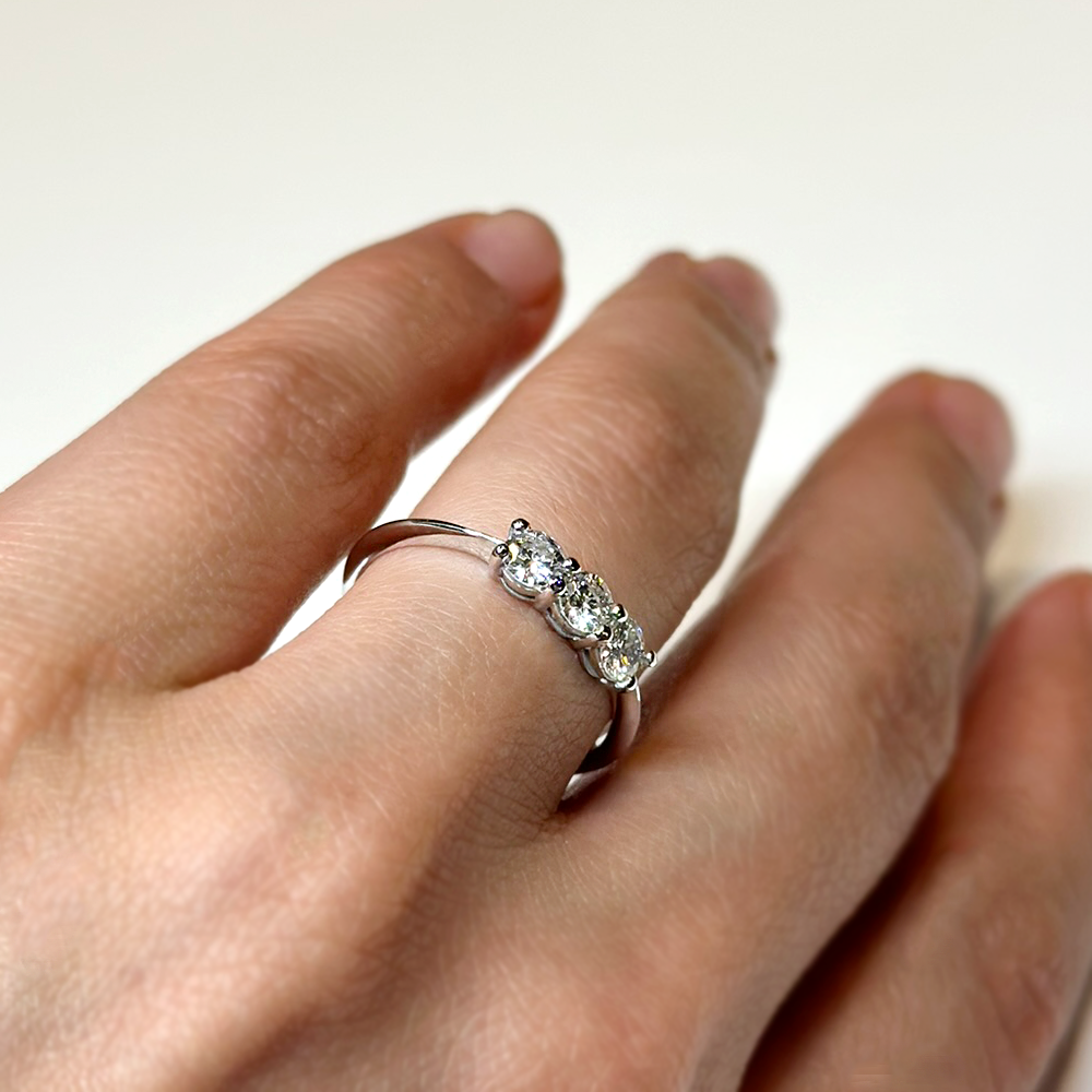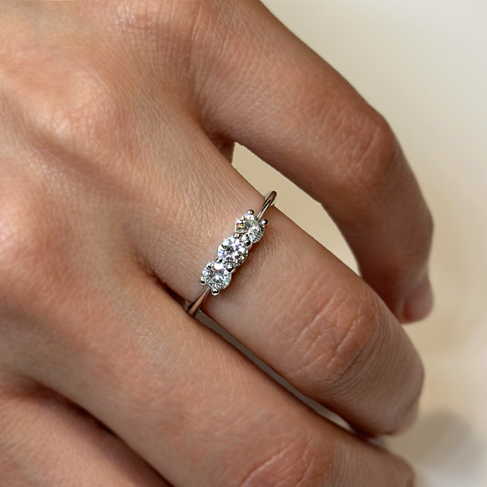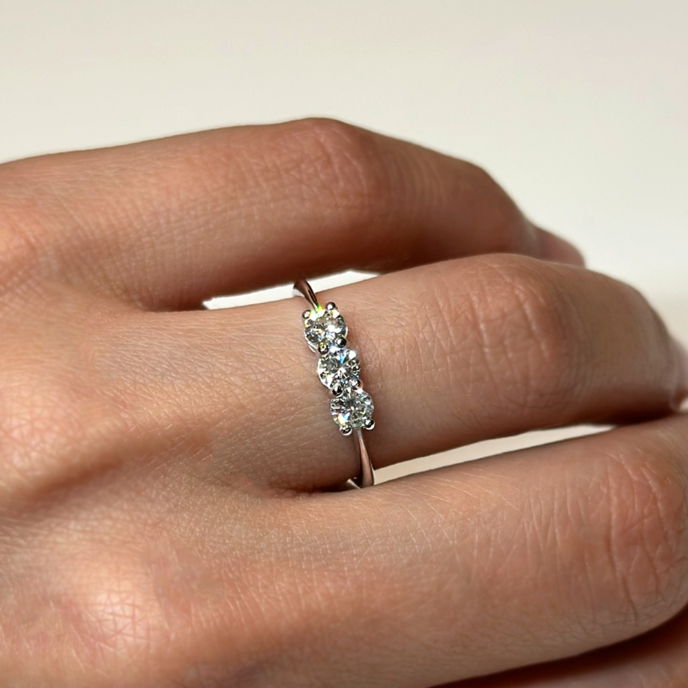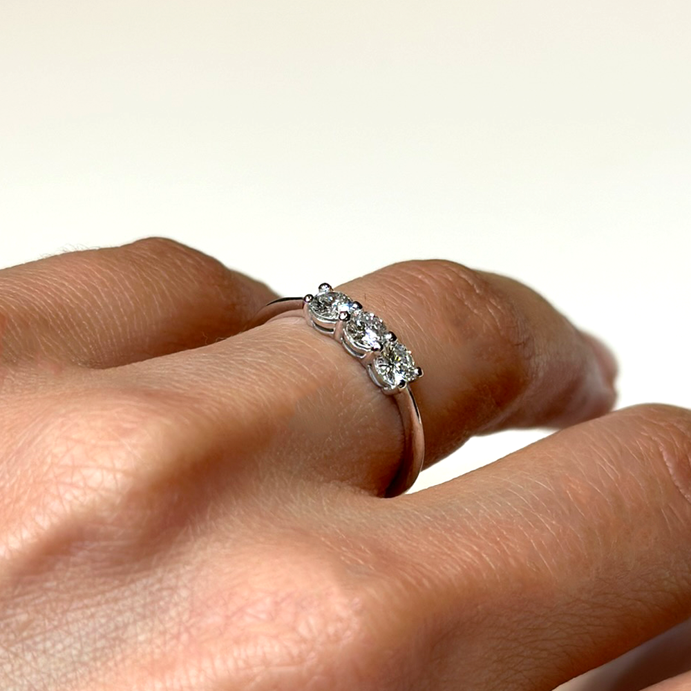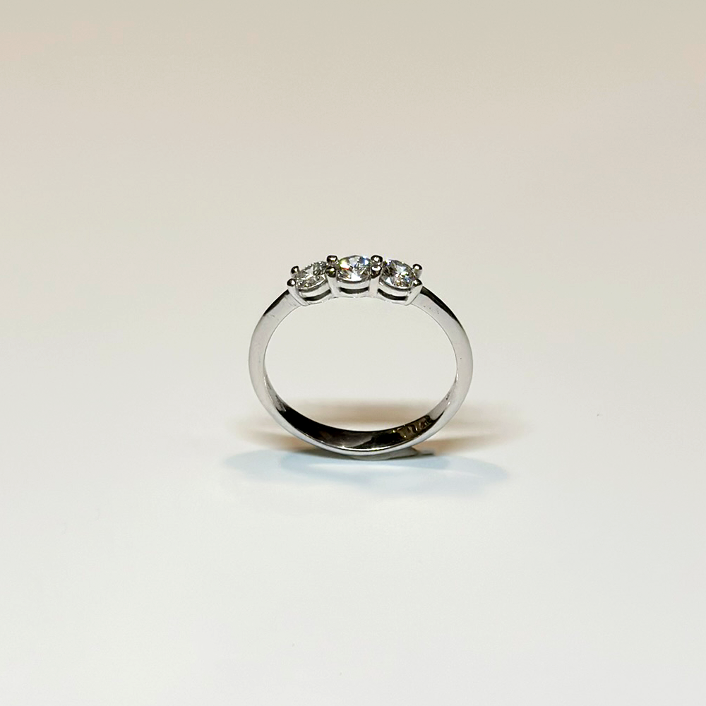 Anello Flavioro in oro bianco 18kt con 3 diamanti naturali taglio brillante totale ct 0.50 Colore G Purezza VS