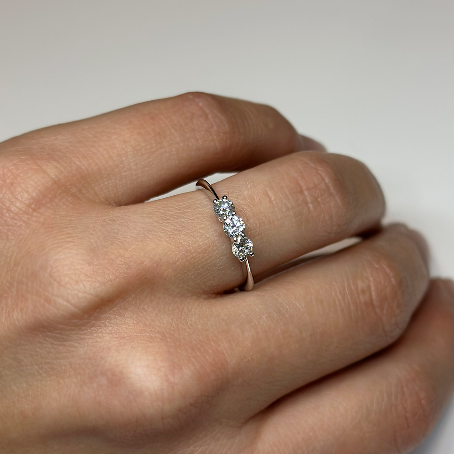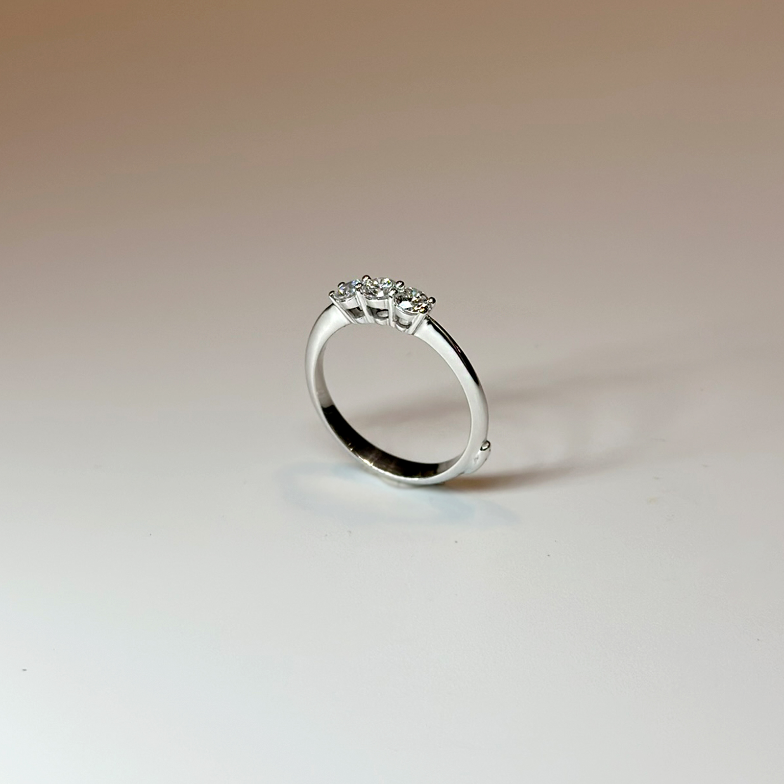 Anello Flavioro modello trilogy in oro bianco 18kt con diamanti taglio brillante totale ct 0.44 Colore G Purezza VS