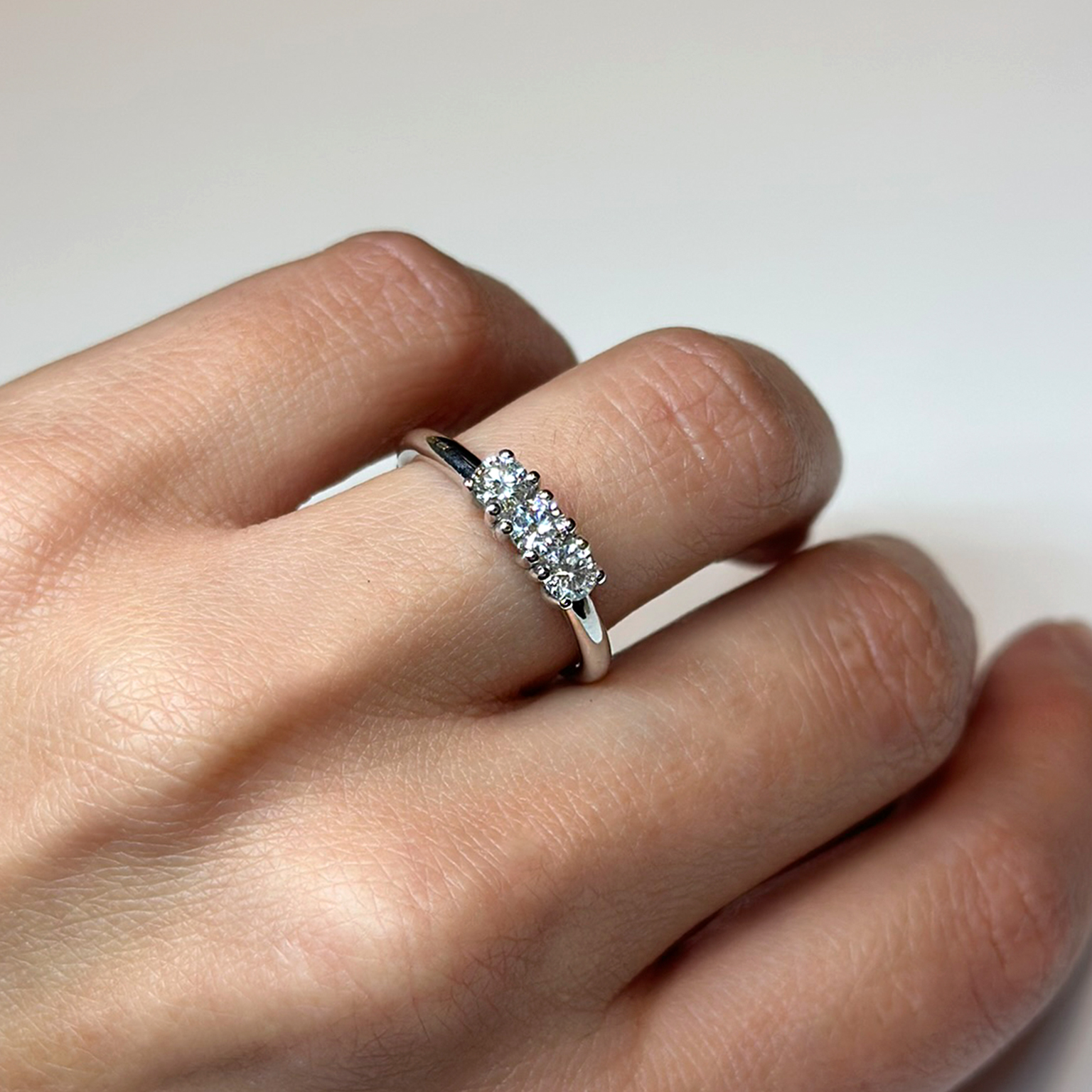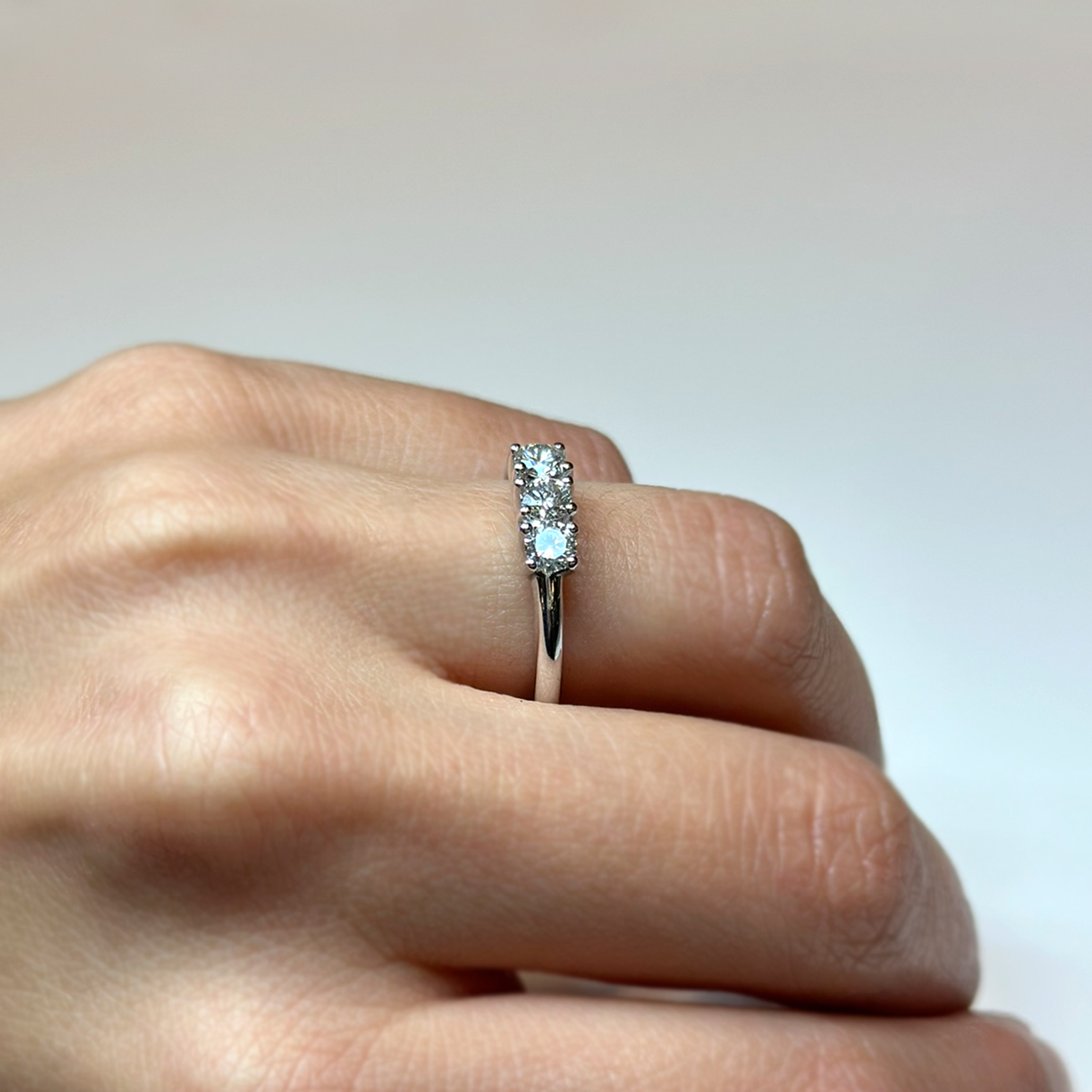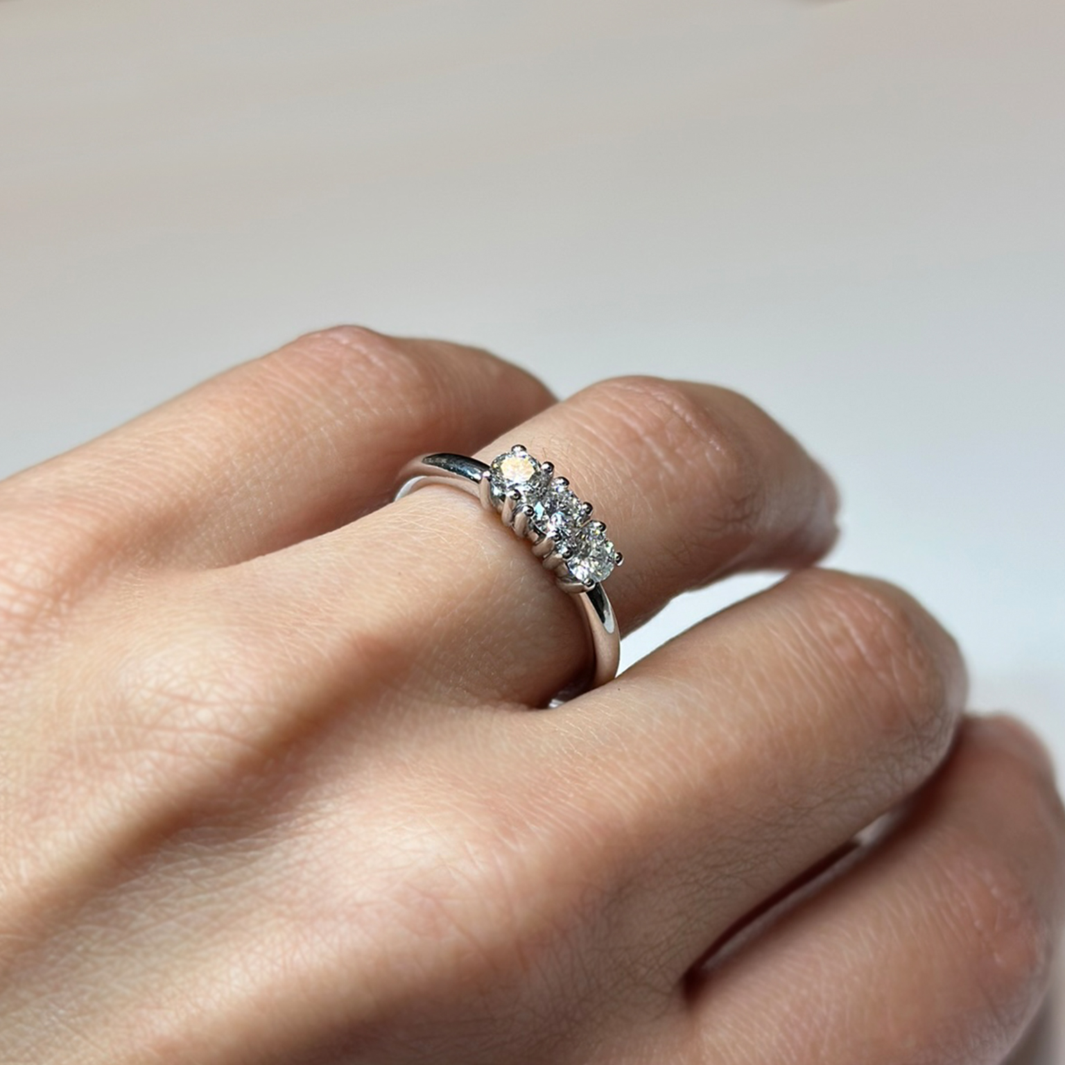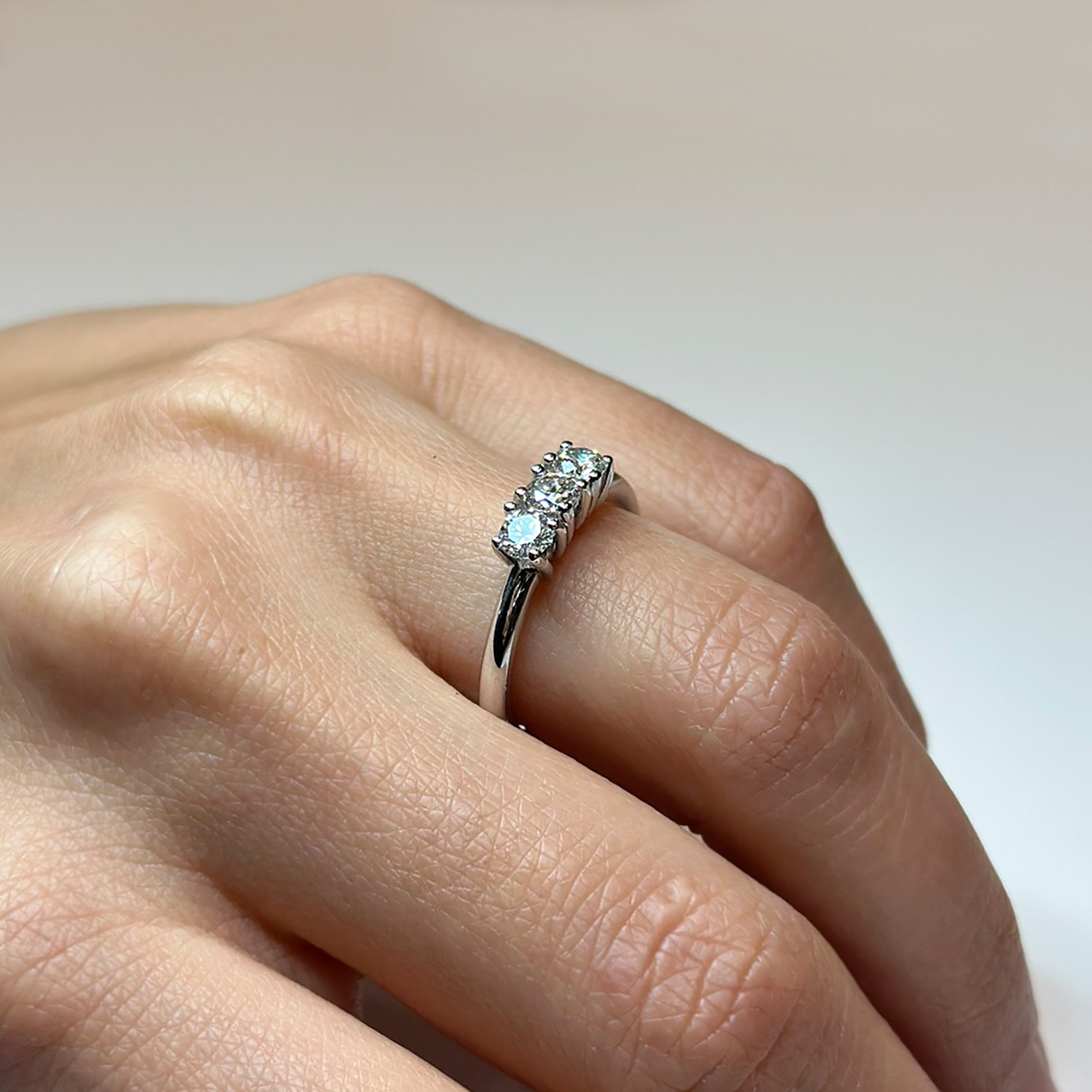 Anello Flavioro in oro bianco 18kt con tre diamanti naturali taglio brillante totale ct 0.60 Colore: G Purezza: VS