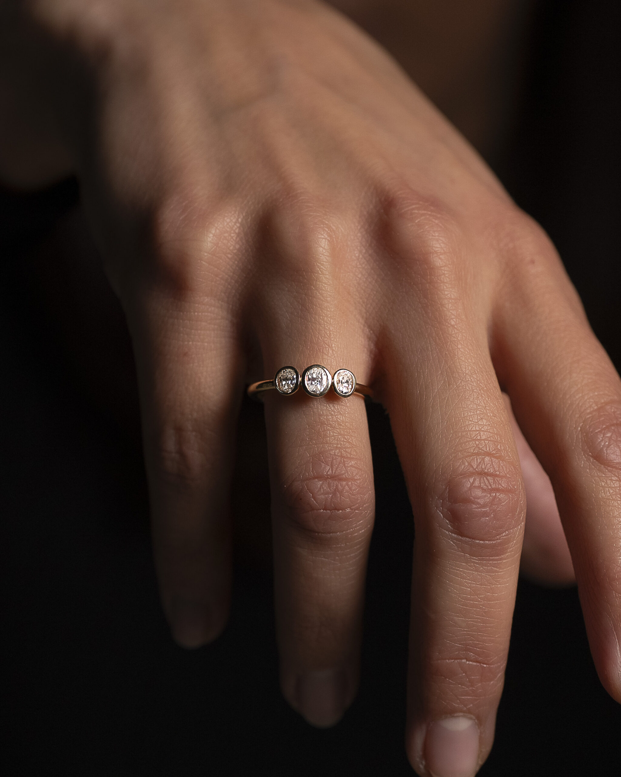 FLAVIORO ANELLO TRILOGY ORO 18KT DIAMANTI OVALI CT 0.62