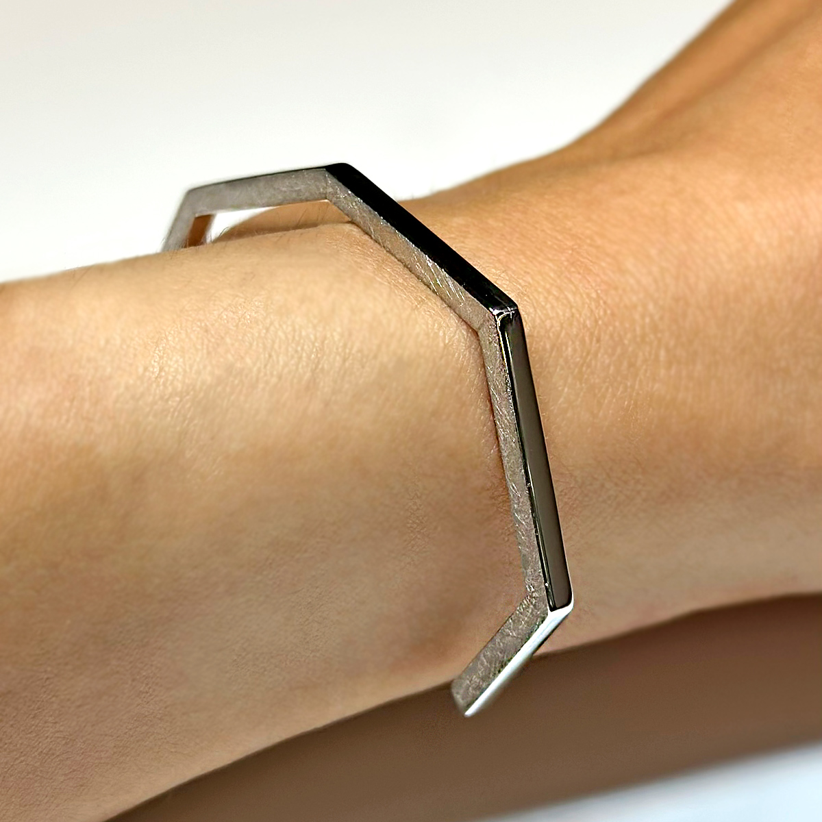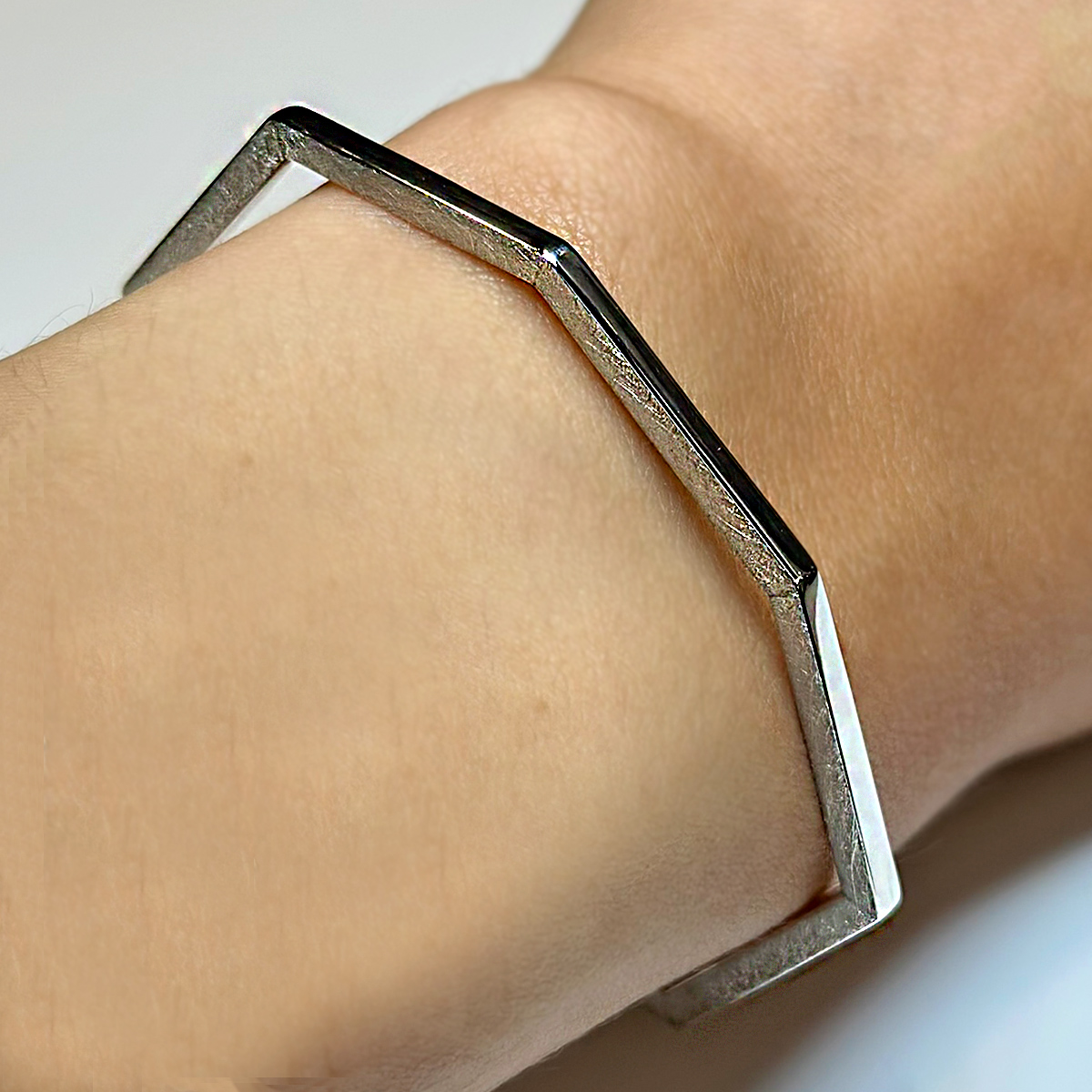 Bracciale in argento 925° rigido aperto a forma esagonale finitura lucida e satinata