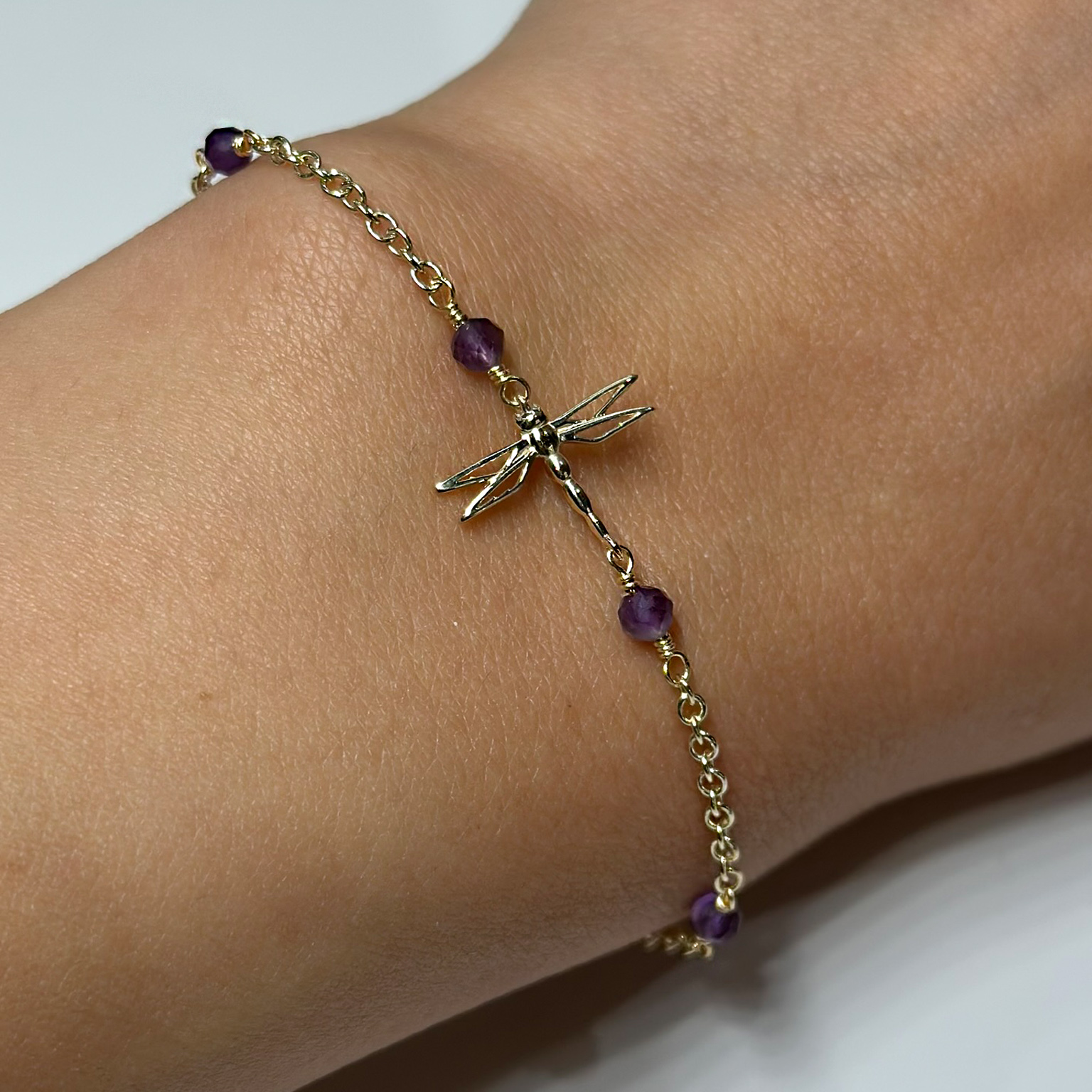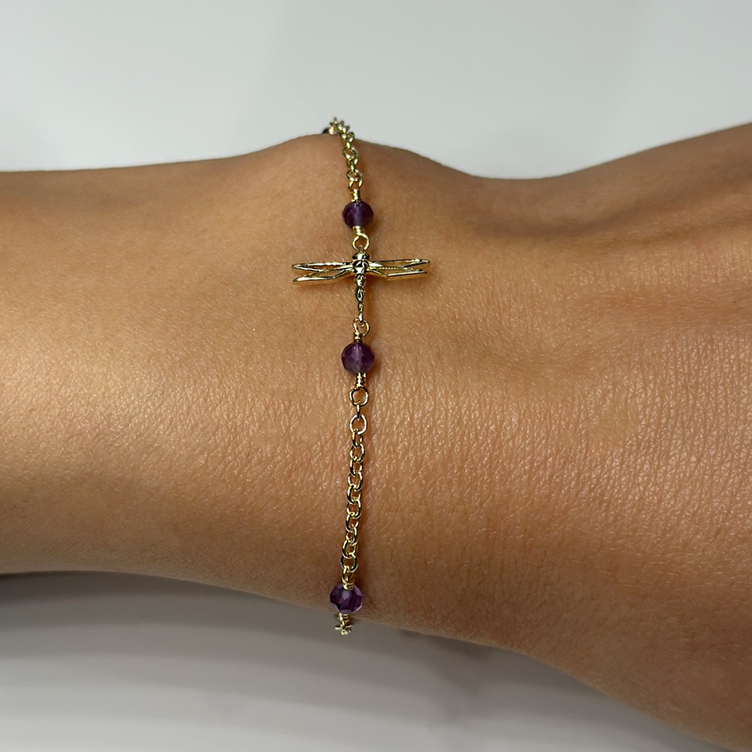 Flavioro Bracciale Libellula Oro 9kt e Ametiste