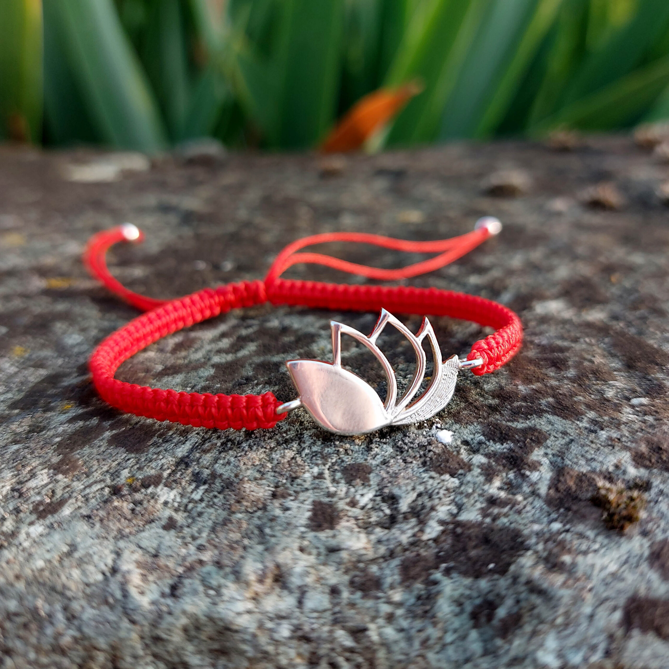 Bracciale Loto in argento 925° con cordino macramè rosso