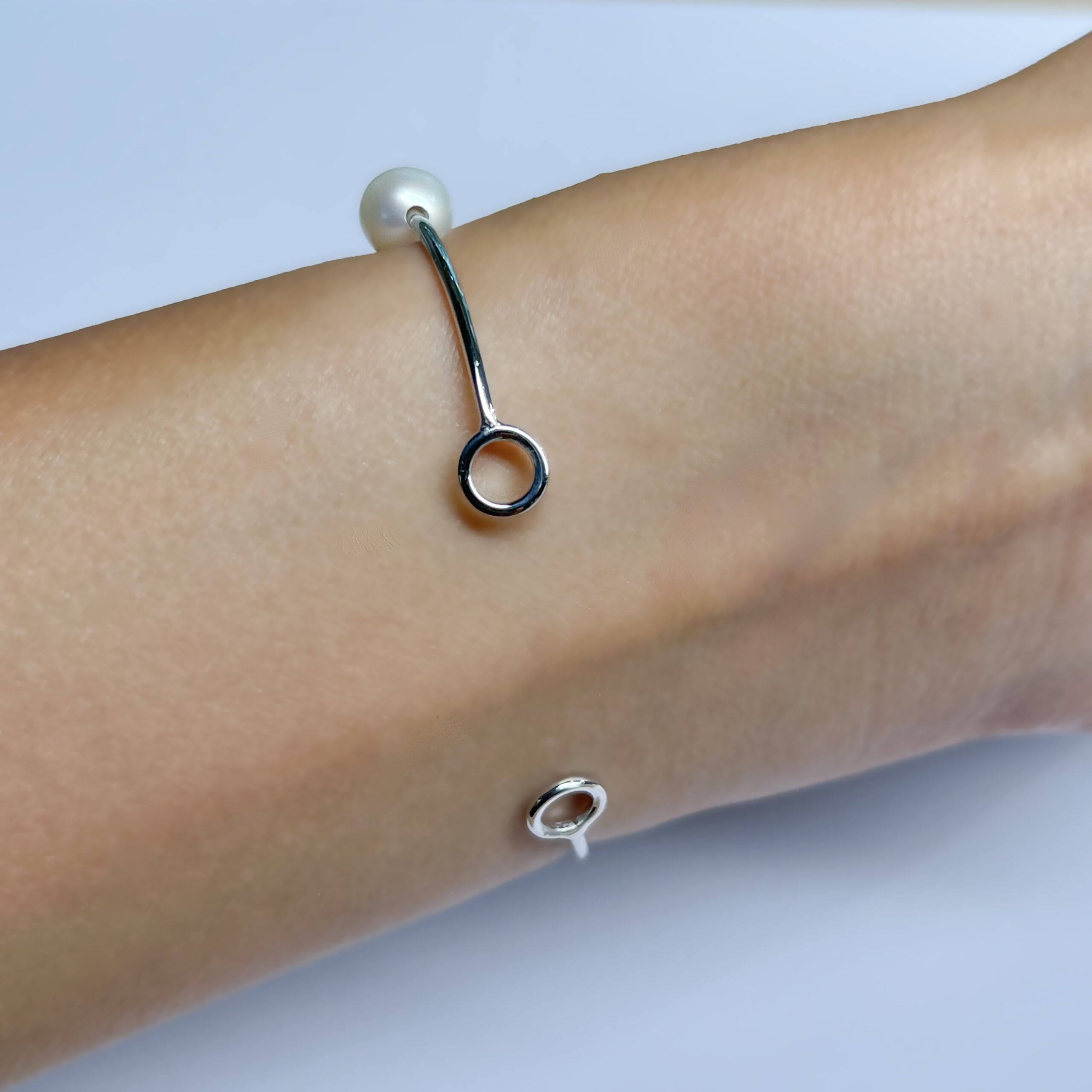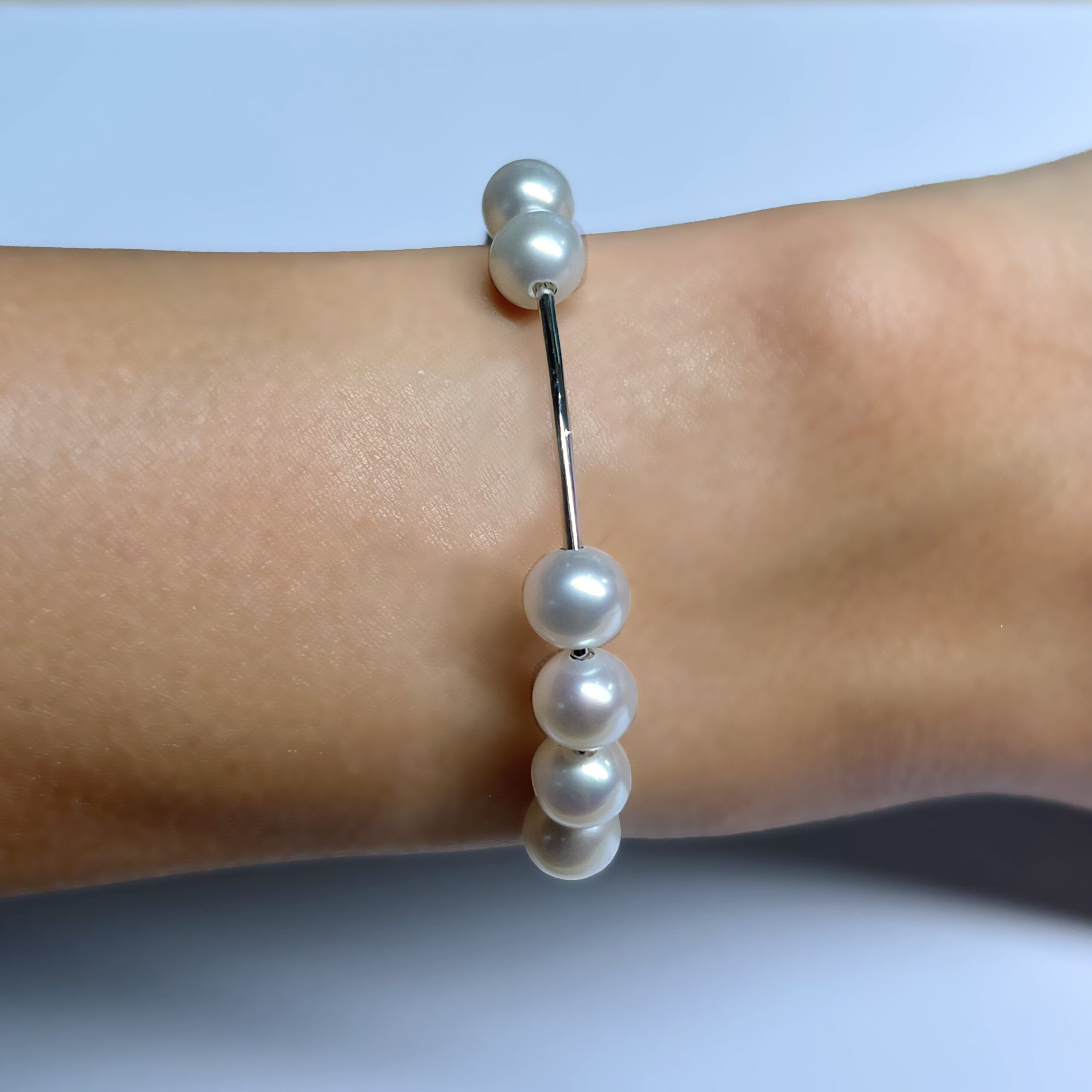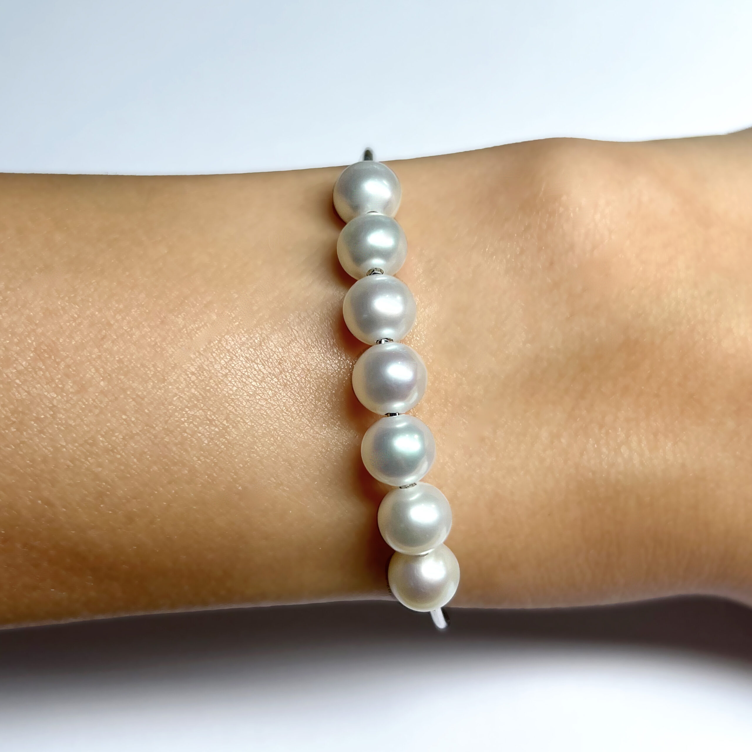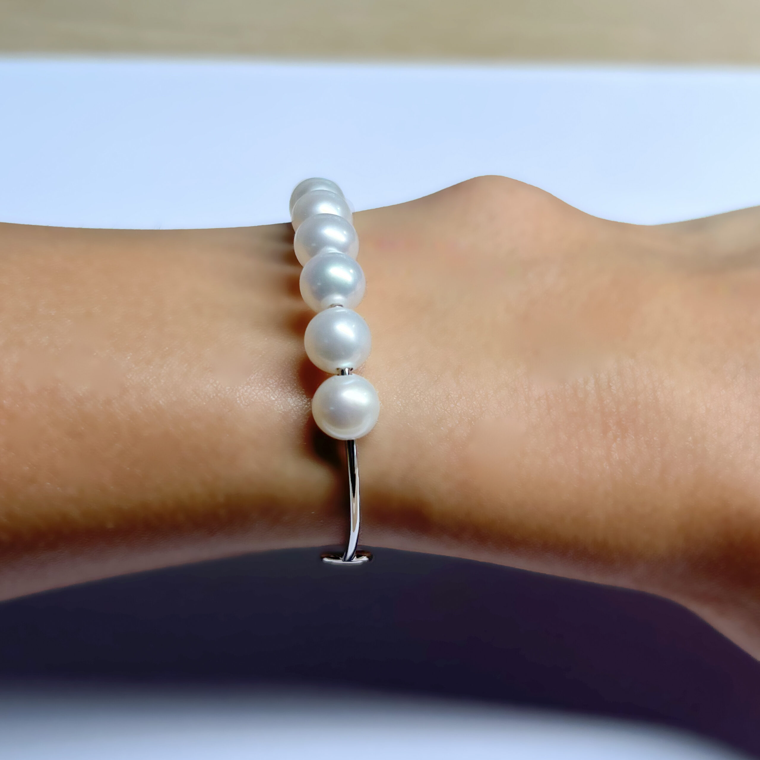 Bracciale rigido aperto in oro bianco 18kt con sette perle di acqua dolce diametro 7-7.5 mm