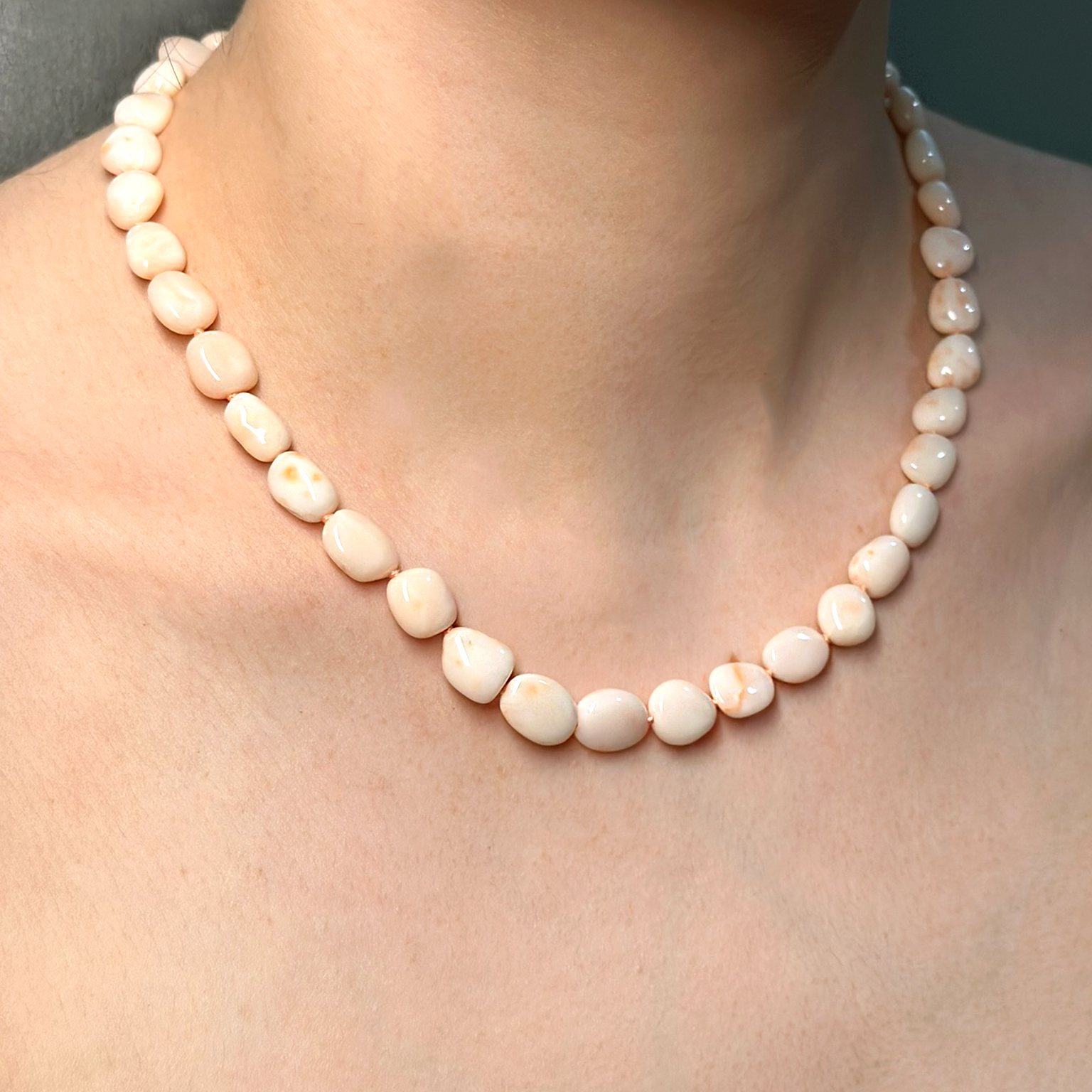 Collana di corallo rosa con chiusura a moschettone in oro rosa 18kt