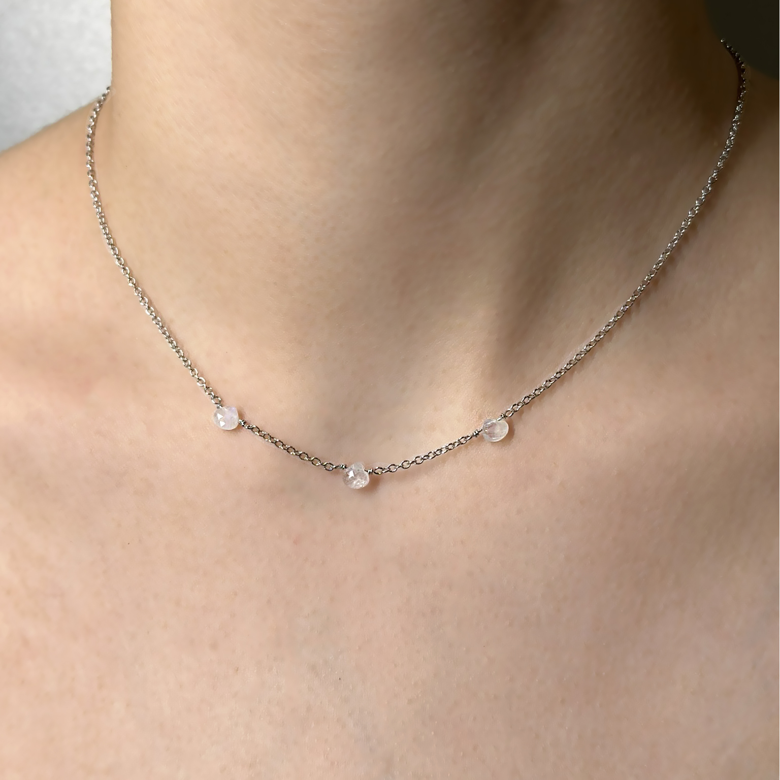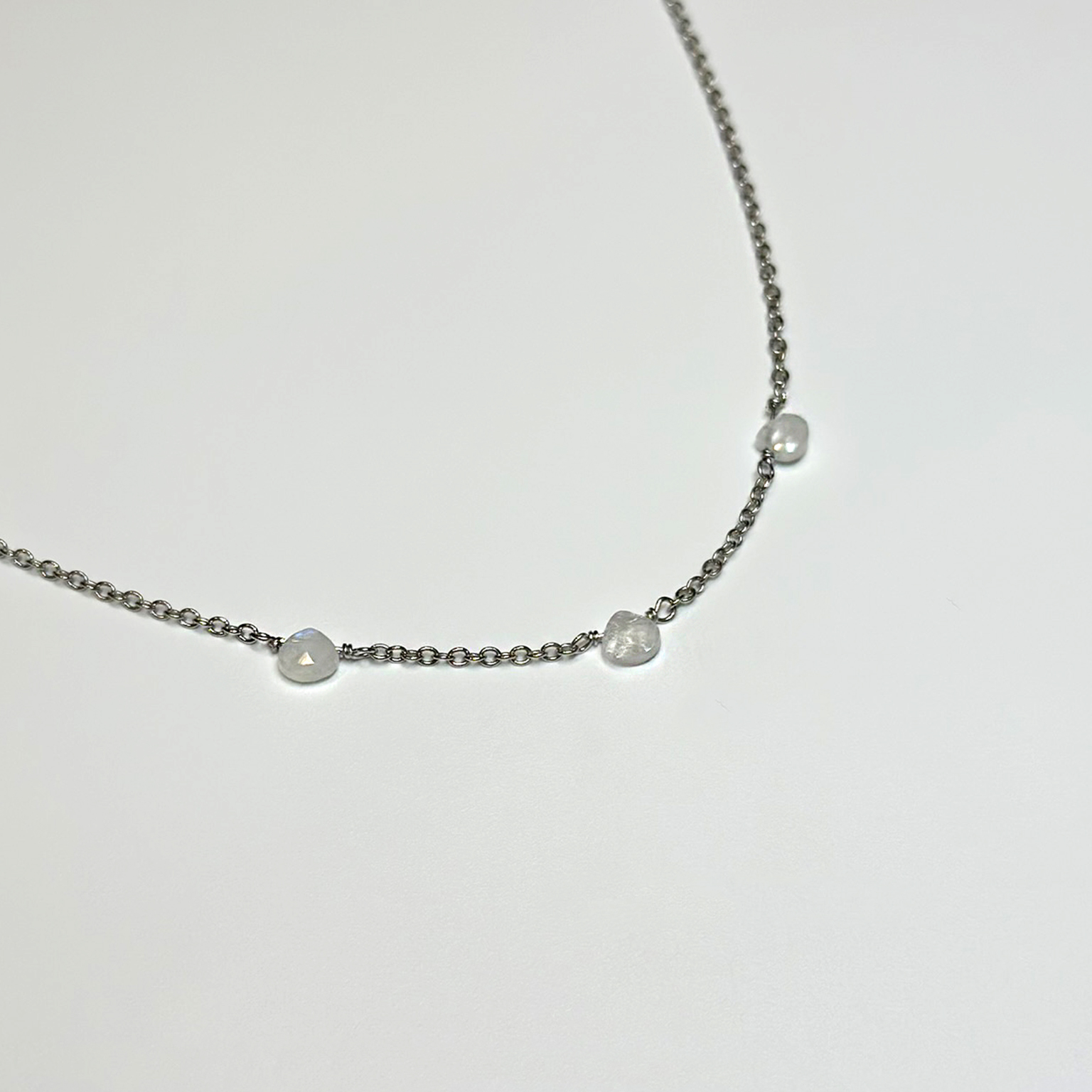 Collana oro bianco 9kt con 3 Labradoriti
