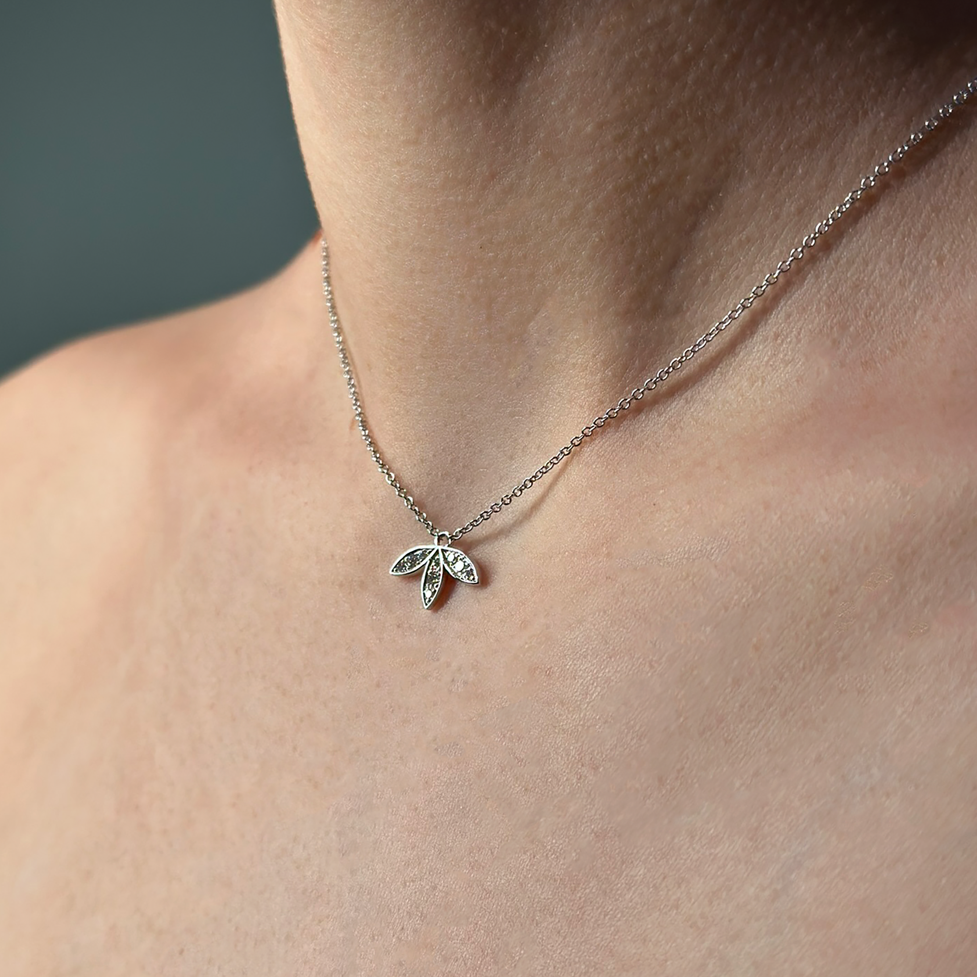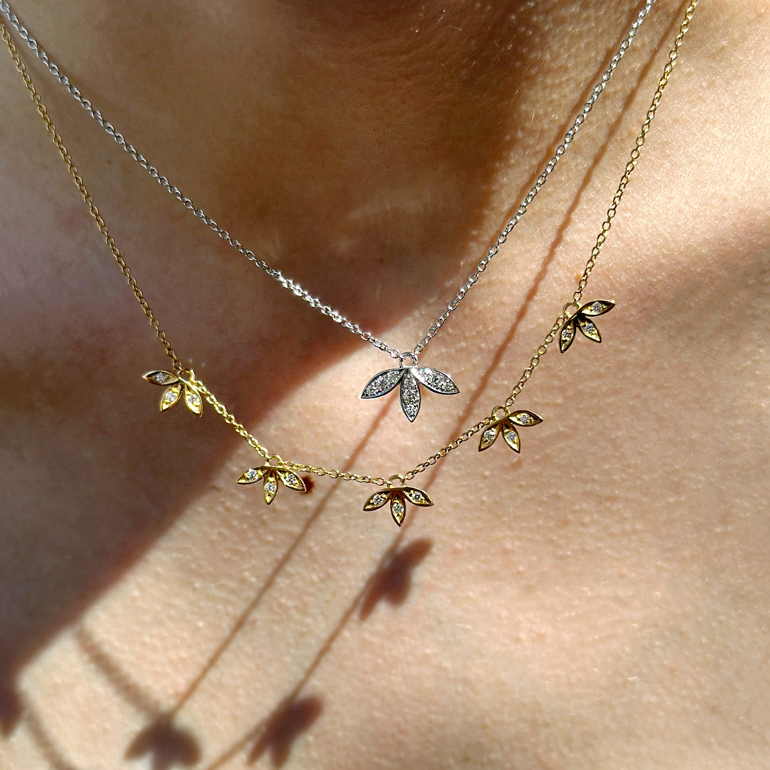 Flavioro Collana Foglia Oro 18kt Diamanti ct 0.16