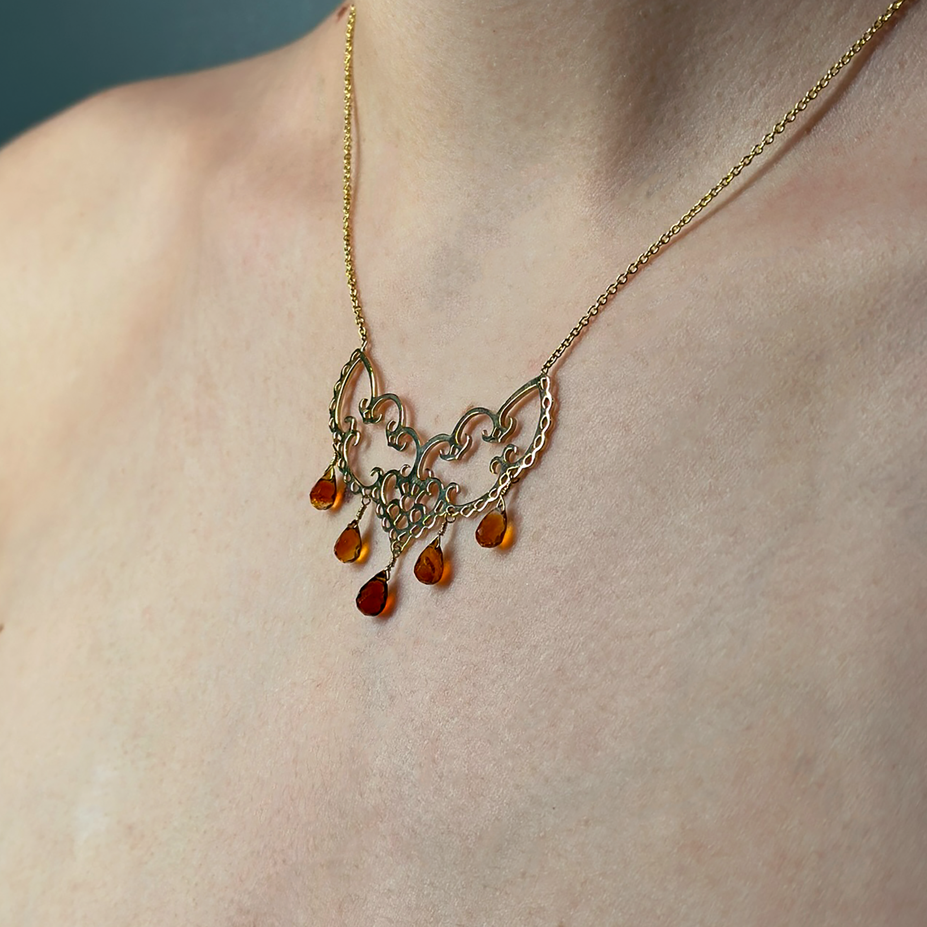 Collana in oro giallo18kt con cinque quarzi citrini