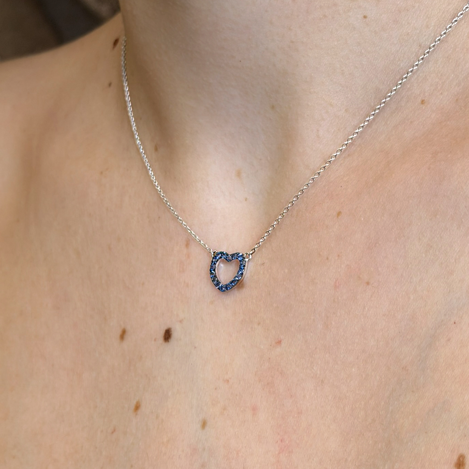 Collana Flavioro in oro bianco 18kt con cuore di zaffiri totale ct 0.33 con griffes brunite.