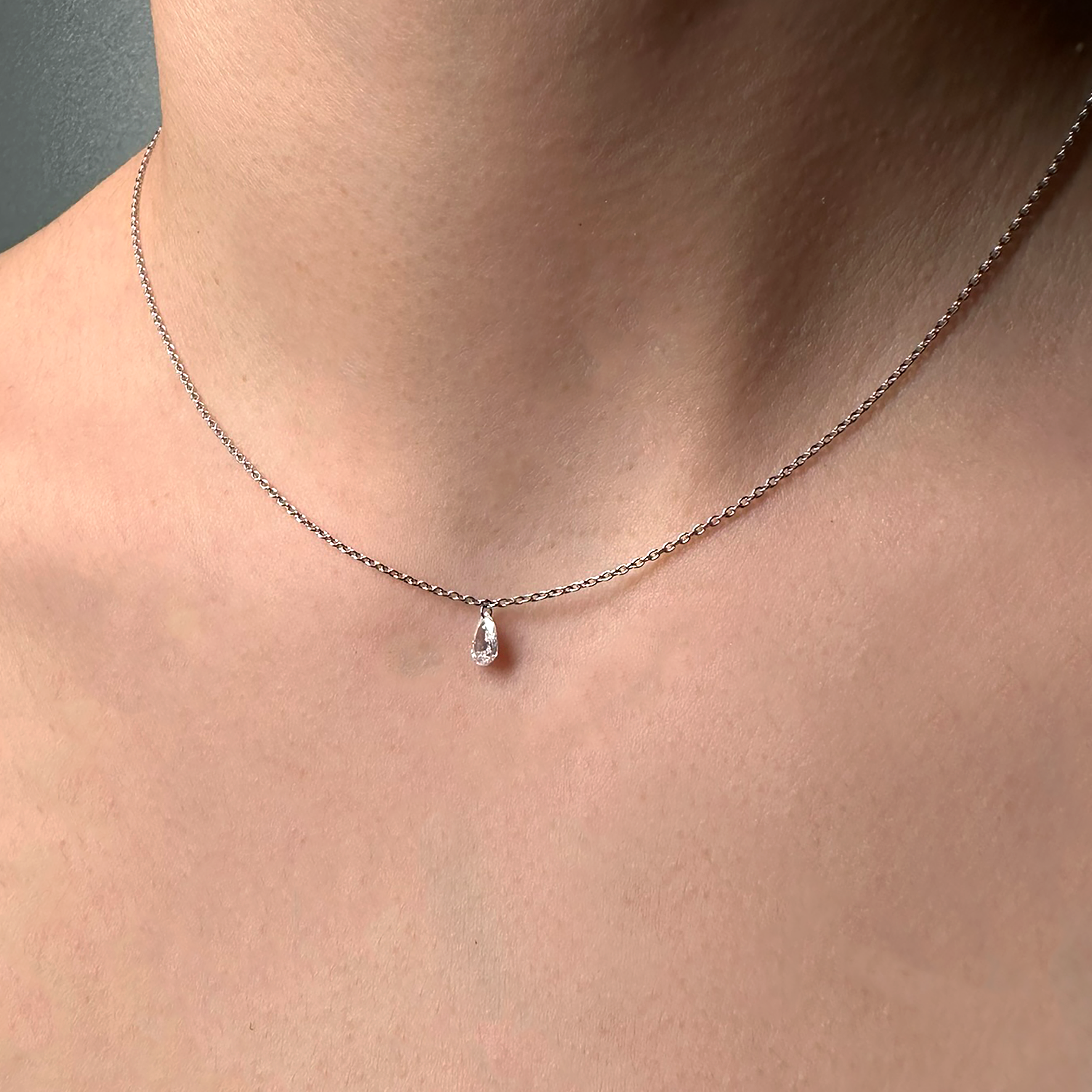 Collana punto luce in oro bianco 18kt con diamante forato ct 0.25