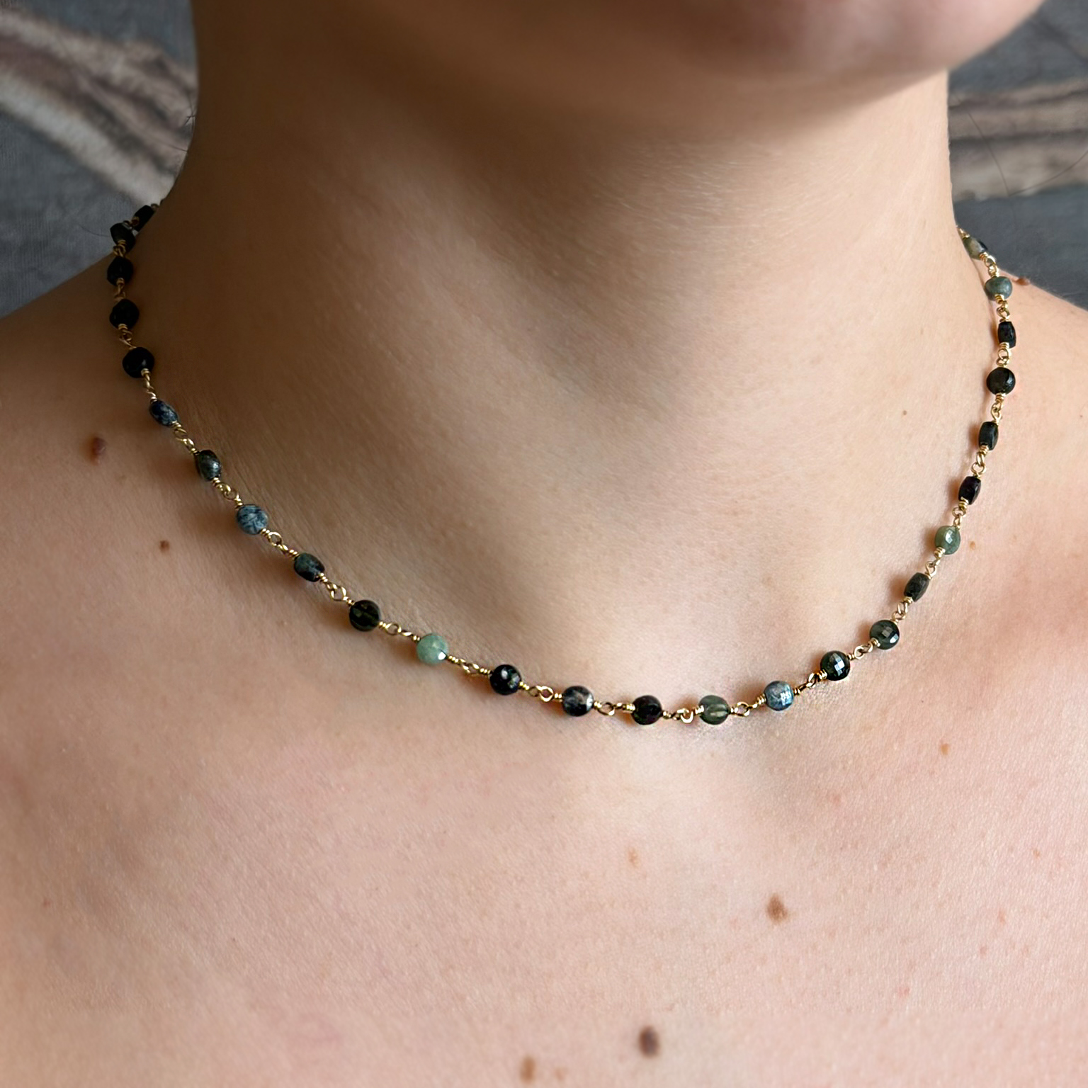 Collana Flavioro in oro giallo 9kt con tormaline verdi.