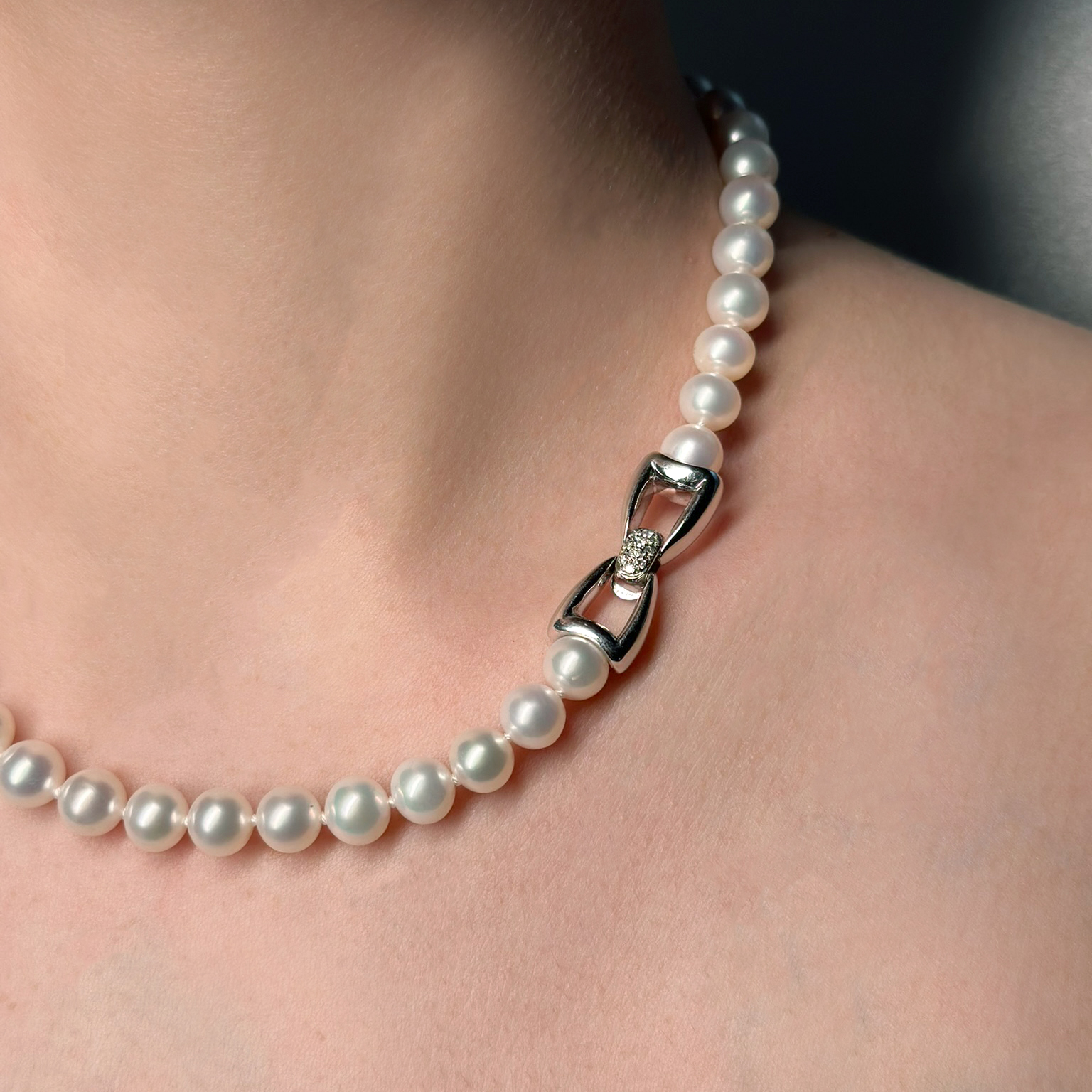Flavioro Collana Perle Acqua Dolce 8-8.5 mm Oro 18kt e Diamanti