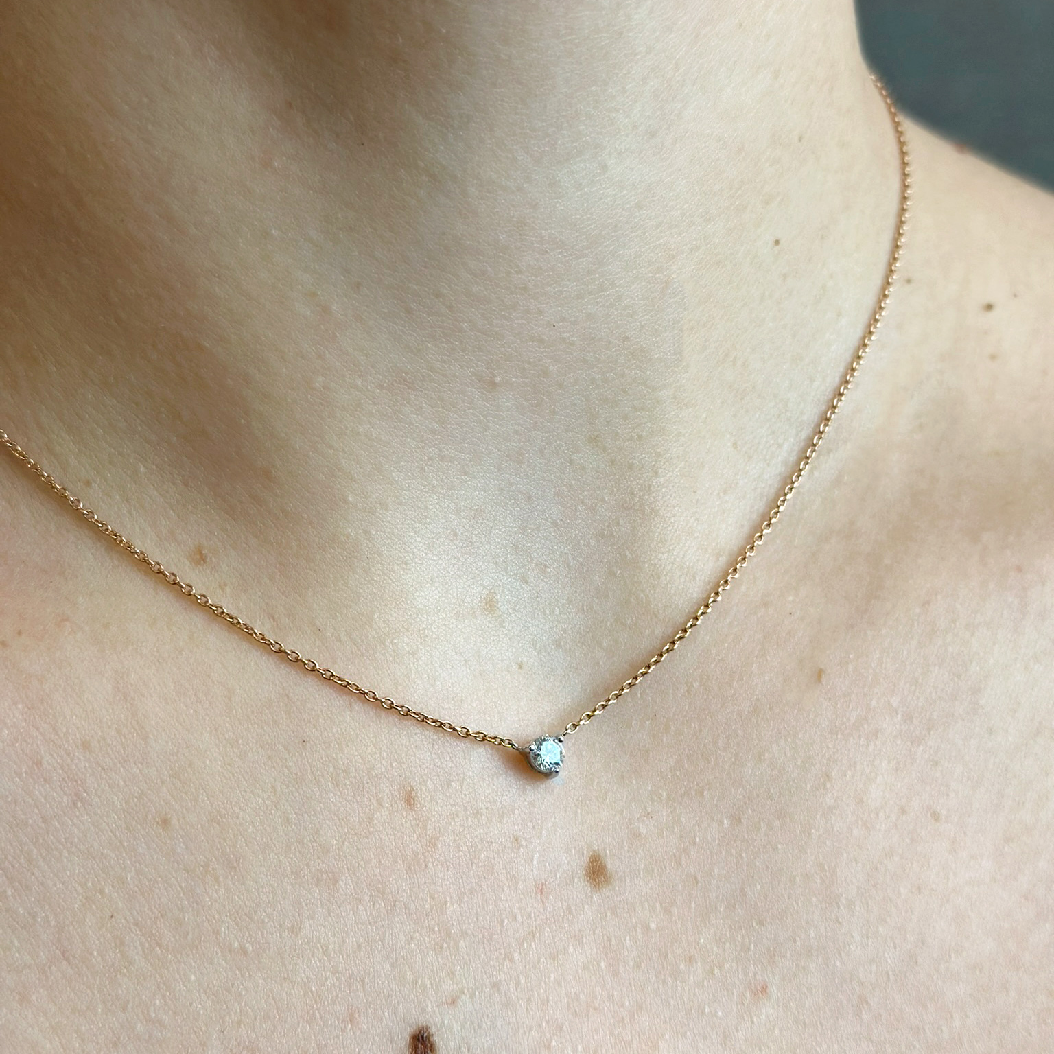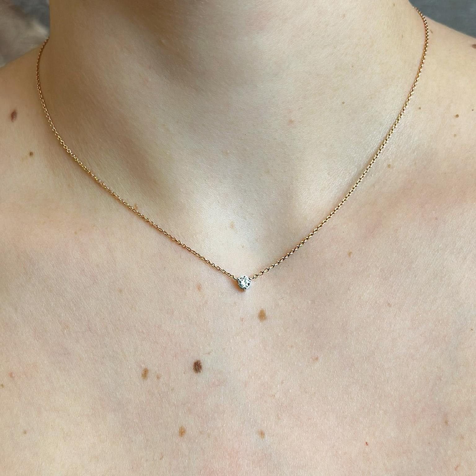 Collana punto luce modello tre griffes in oro rosa 18kt con diamante taglio brillante ct 0.20