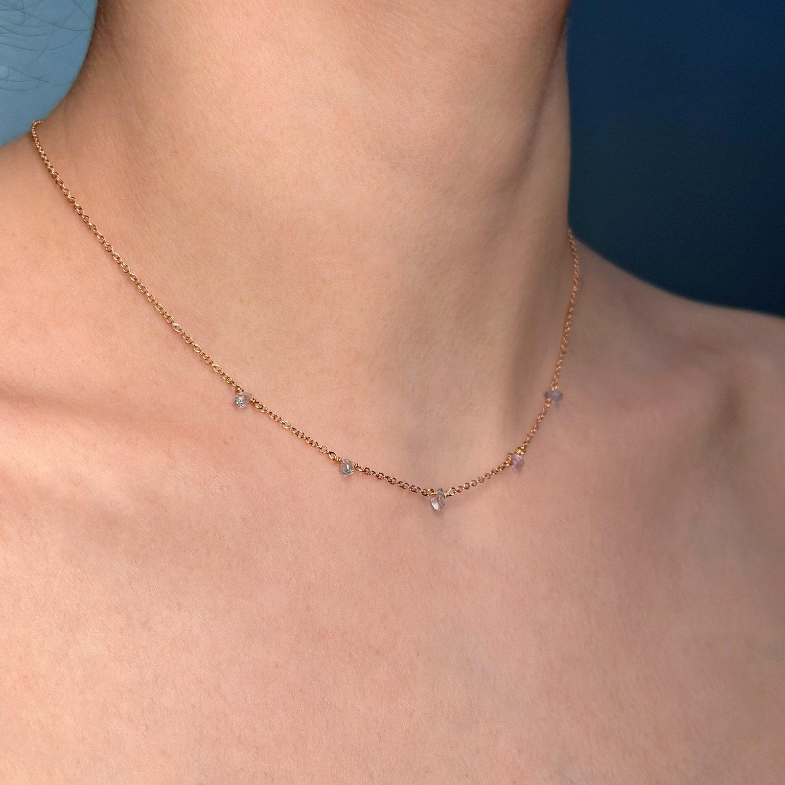 Collana Flavioro Dono² oro rosa 18kt con 5 zaffiri azzurri