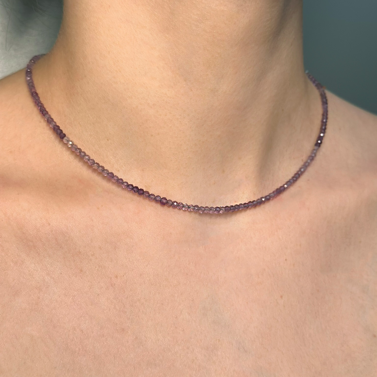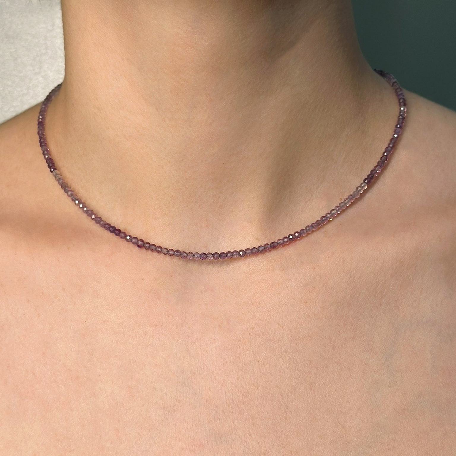 Collana Flavioro con ametiste infilate in un cavetto d’acciaio