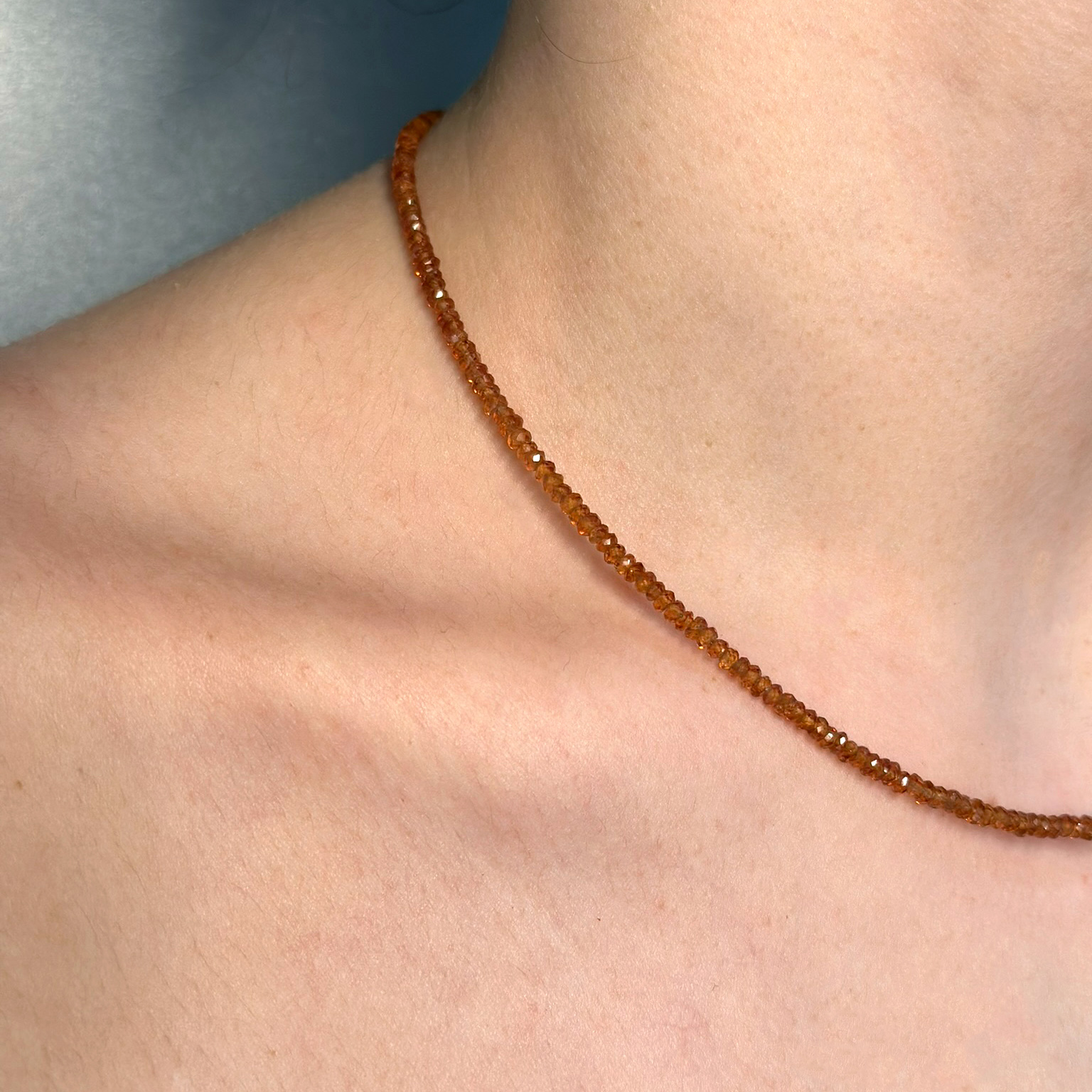 Collana Flavioro con granati infilate in un cavetto d’acciaio