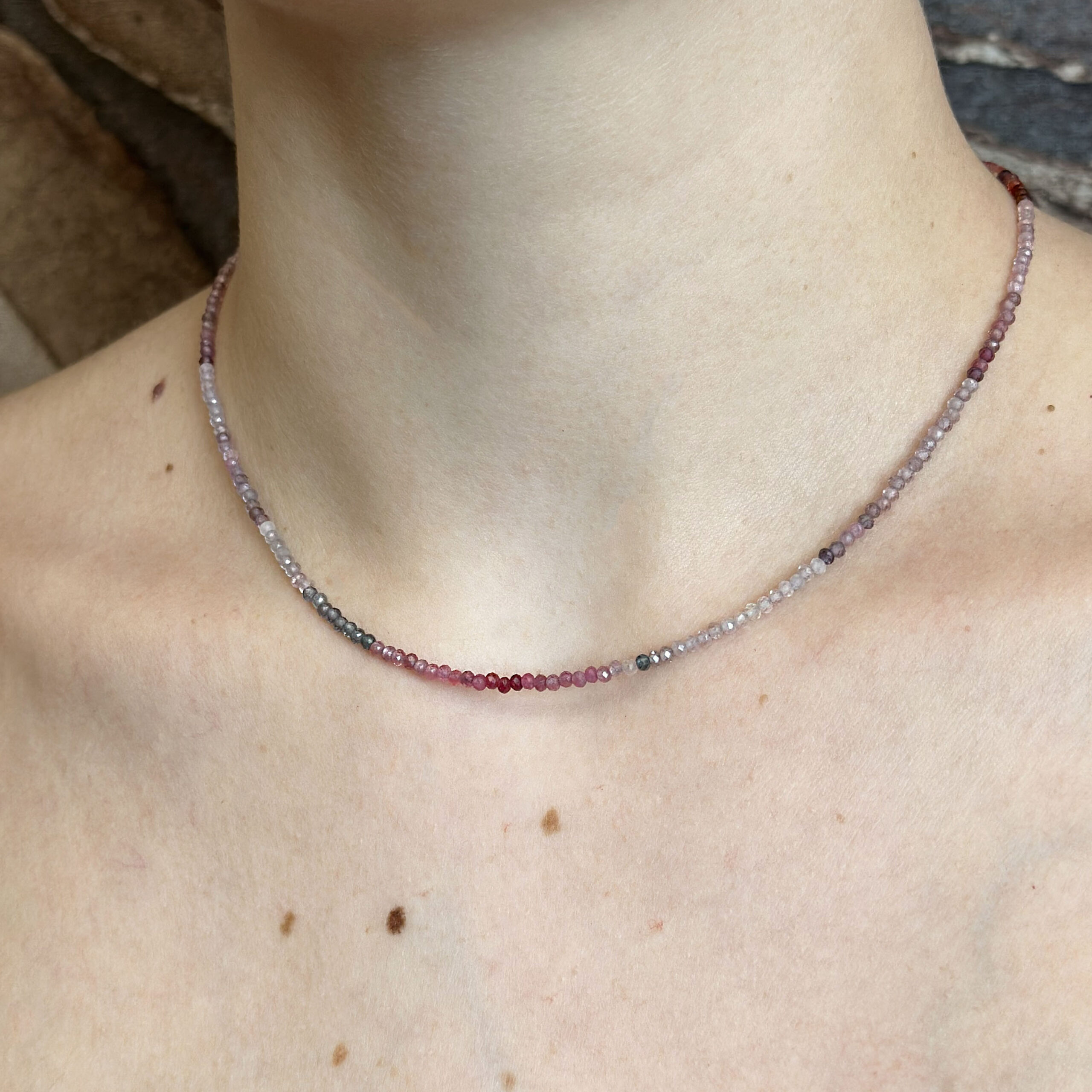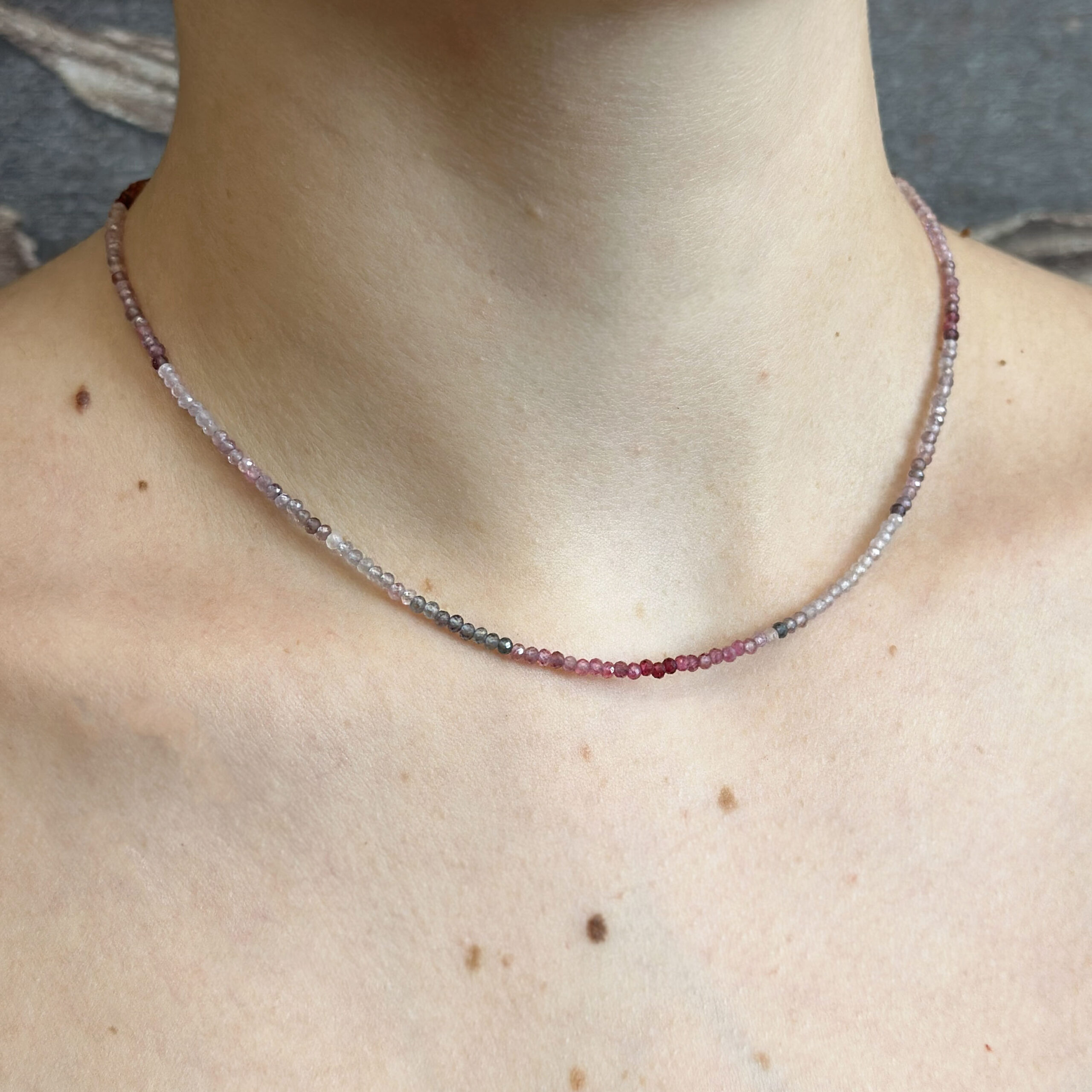 Collana Flavioro con tormaline infilate in un cavetto d’acciaio.