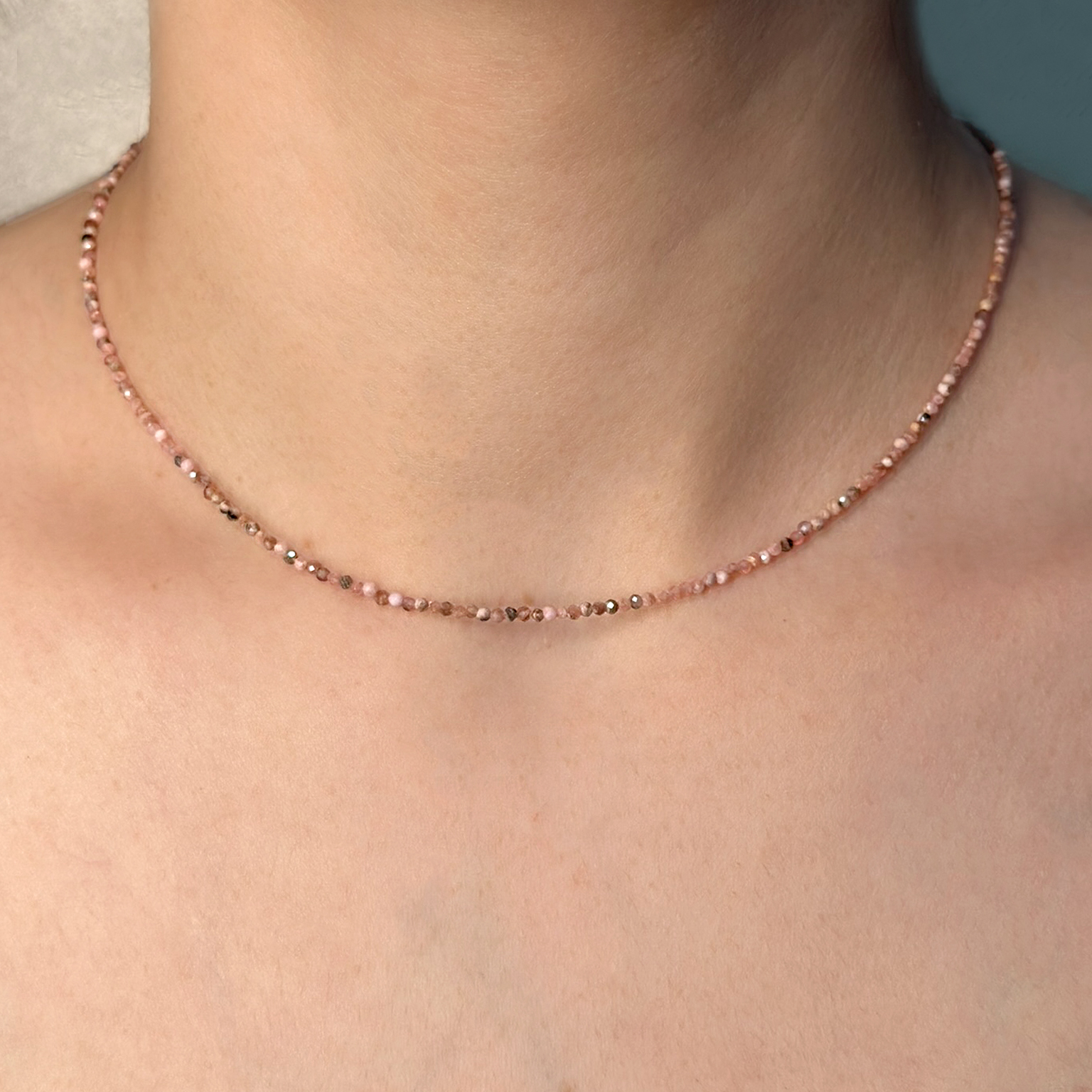 Collana Flavioro con pietra di luna infilata in un cavetto d’acciaio