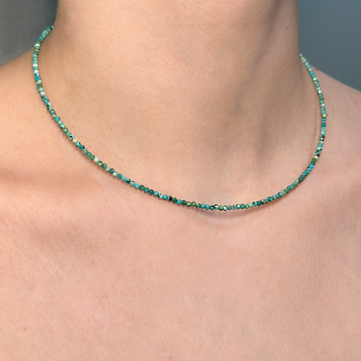Collana Flavioro con turchesi infilati in un cavetto d’acciaio