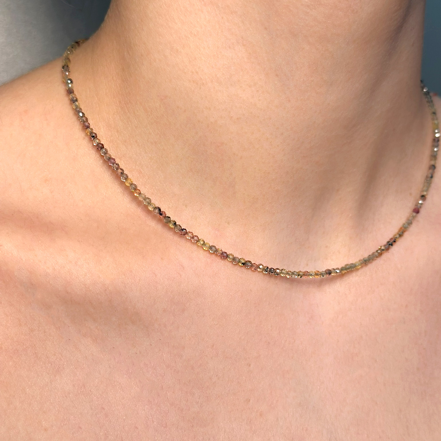 Collana Flavioro con zaffiri gialli infilati in un cavetto d’acciaio