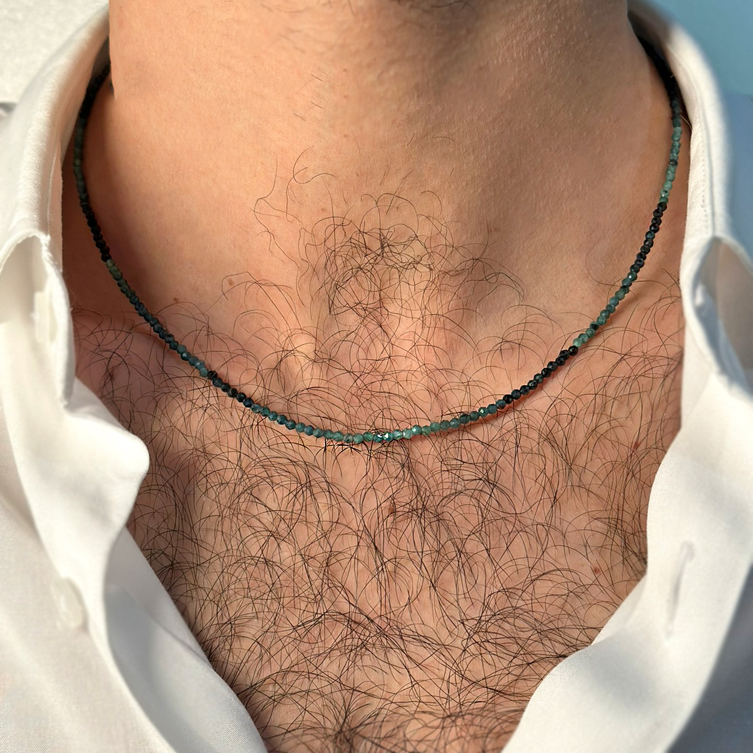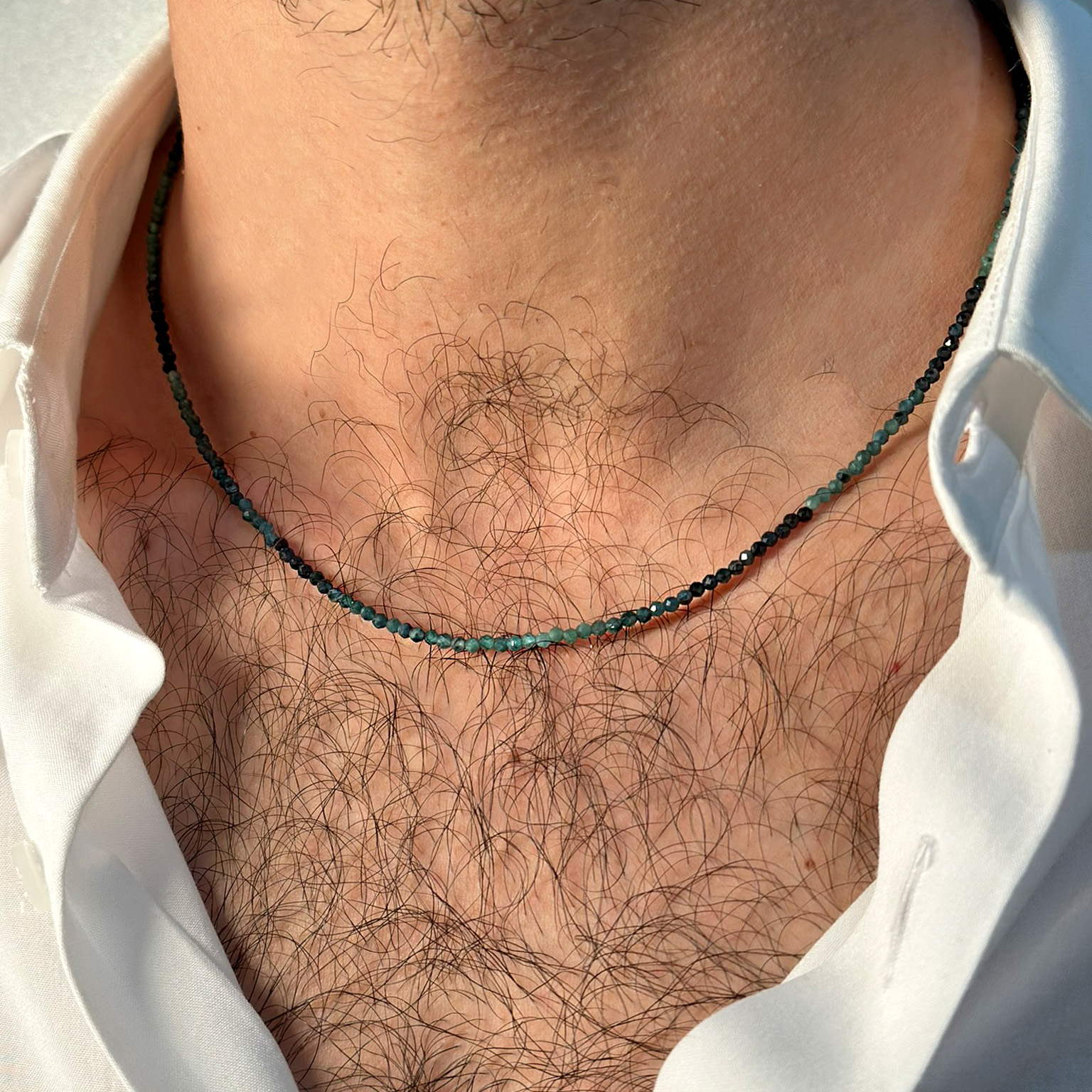 Collana Flavioro con tormaline infilata in un cavetto d’acciaio.