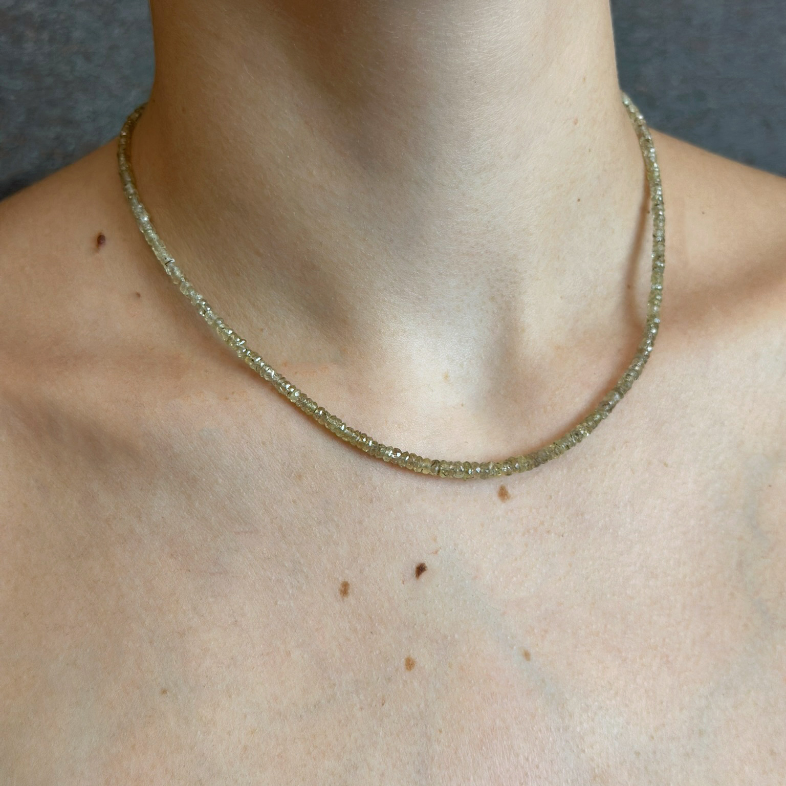 Collana Flavioro con zaffiri verdi di dimensione scalare infilati nel cavetto d’acciaio