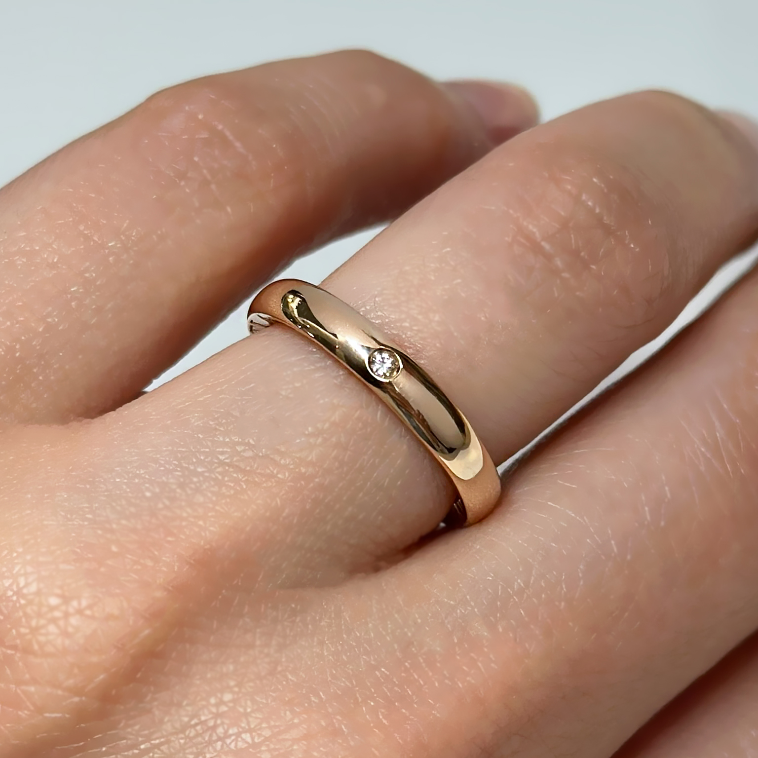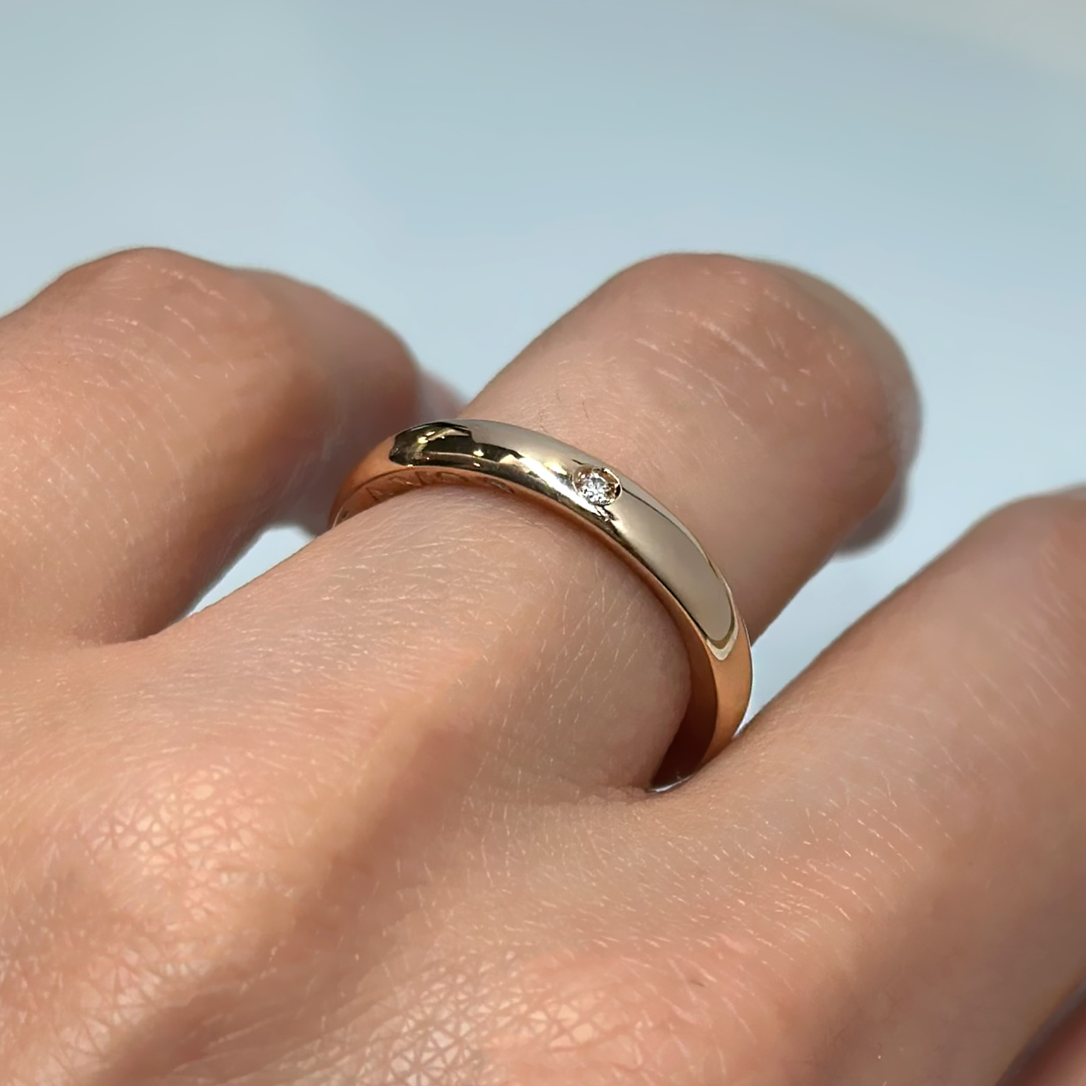 Fede Flavioro a “V” in oro 18kt con incisione a raggio e tre diamanti taglio brillante