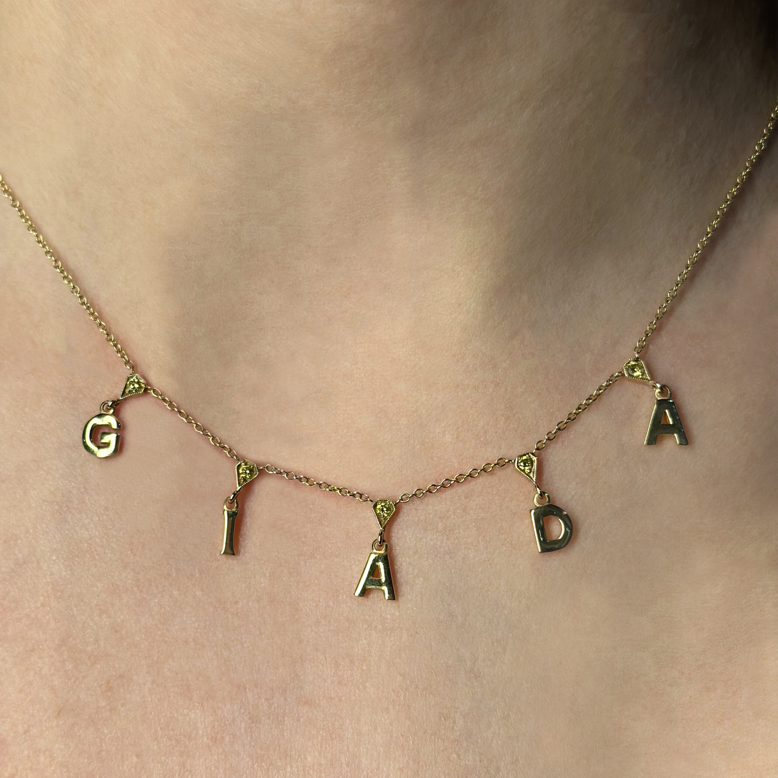 Girocollo con nome personalizzabile in oro giallo 18kt e diamanti gialli ct 0.17